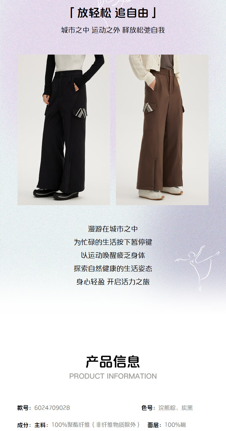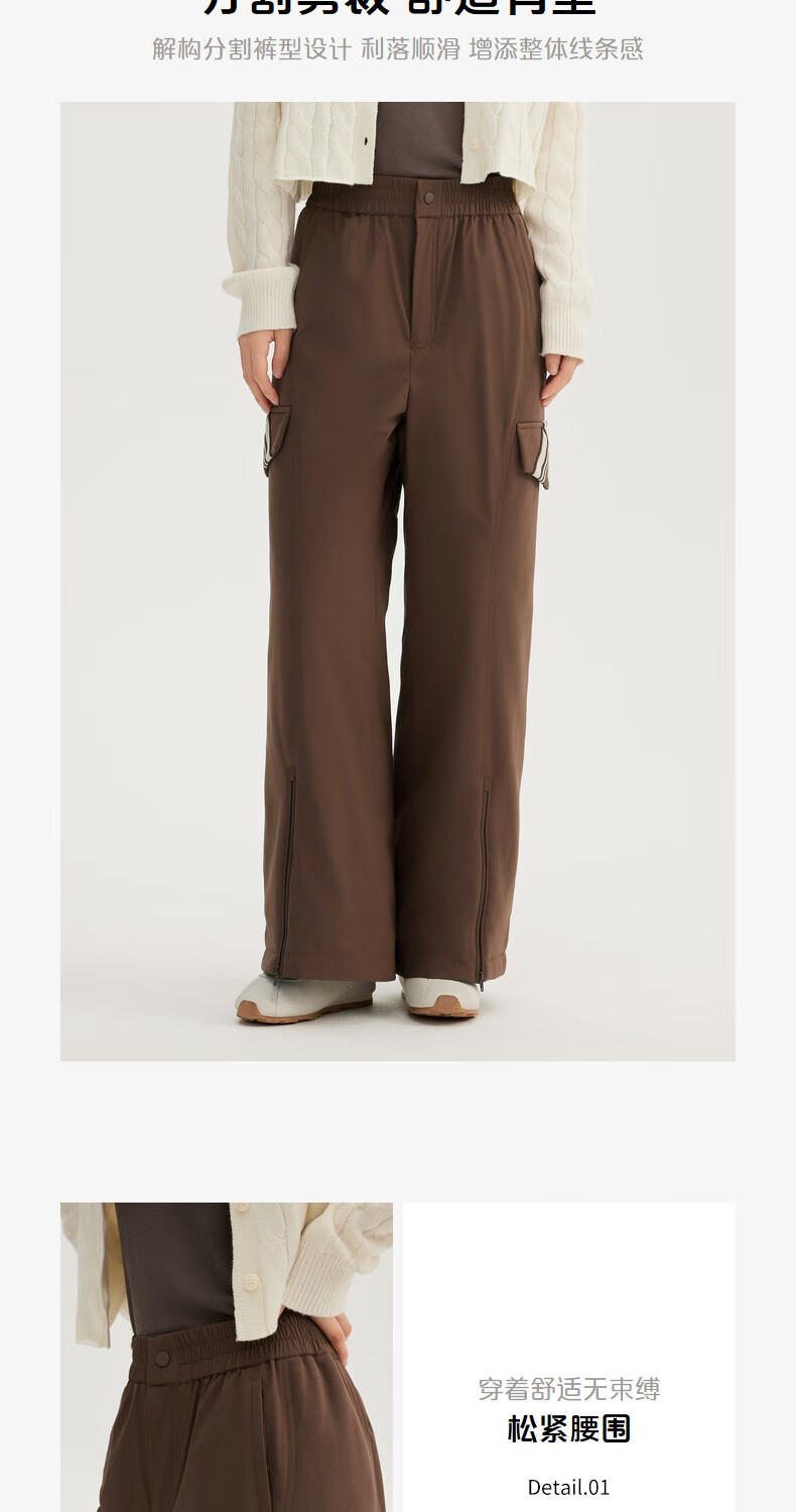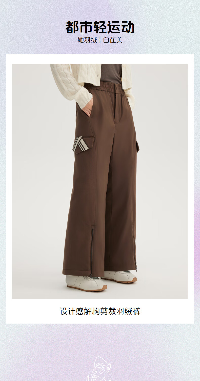 Ai Lai fashionable down pants autumn and winter simple slightly flared warm straight casual versatile commuting trousers raccoon brown M