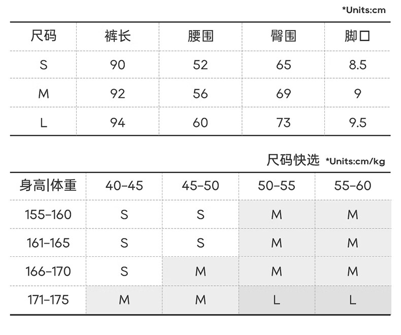 China (cm) 160-165/84-86 165-170 / 88-90 167-172 / 92-96 168-173 / 98-102 170-176 / 106-110