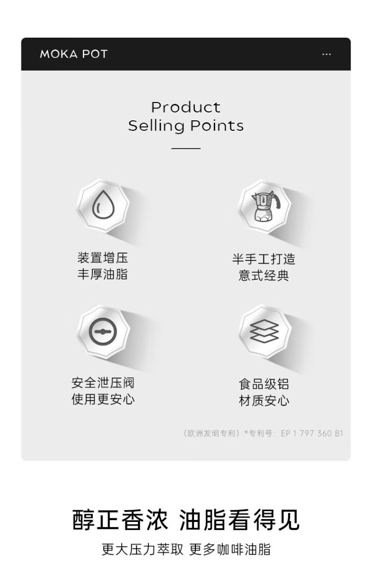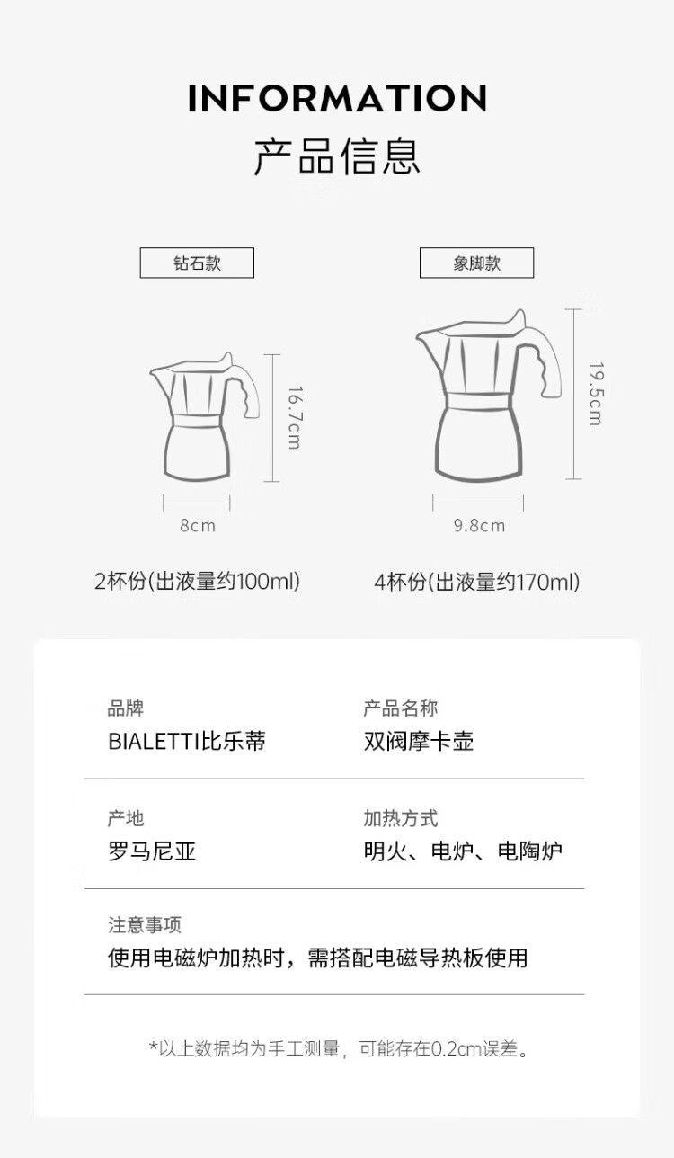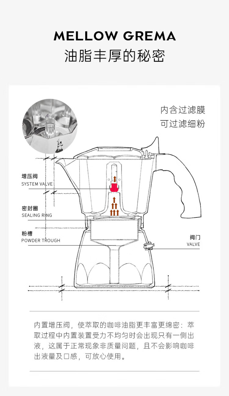 Bialetti Italian imported hand-pour double-valve coffee pot high-pressure espresso household Italian drip filter 2 cups
