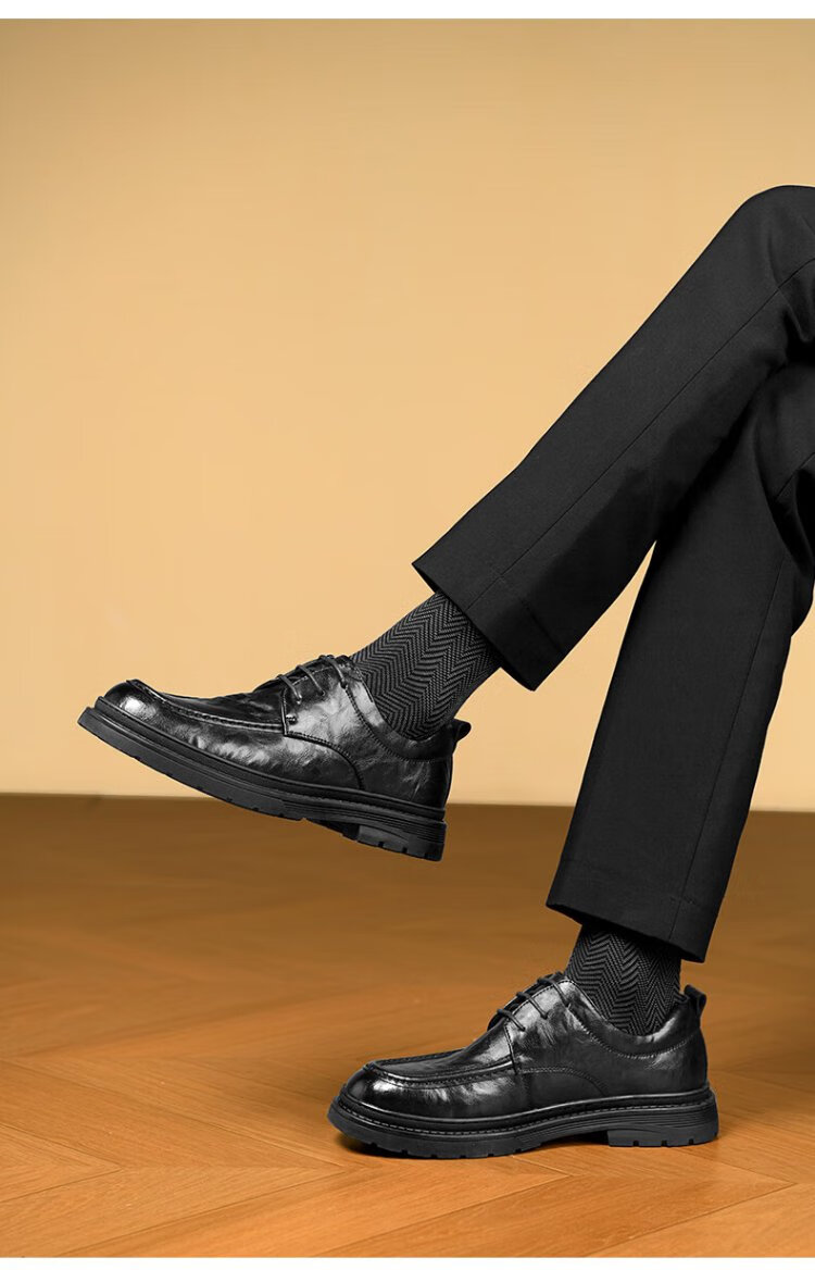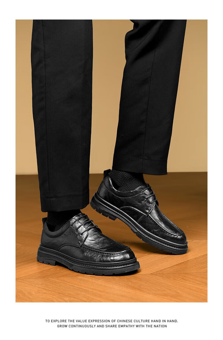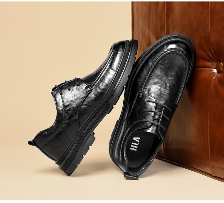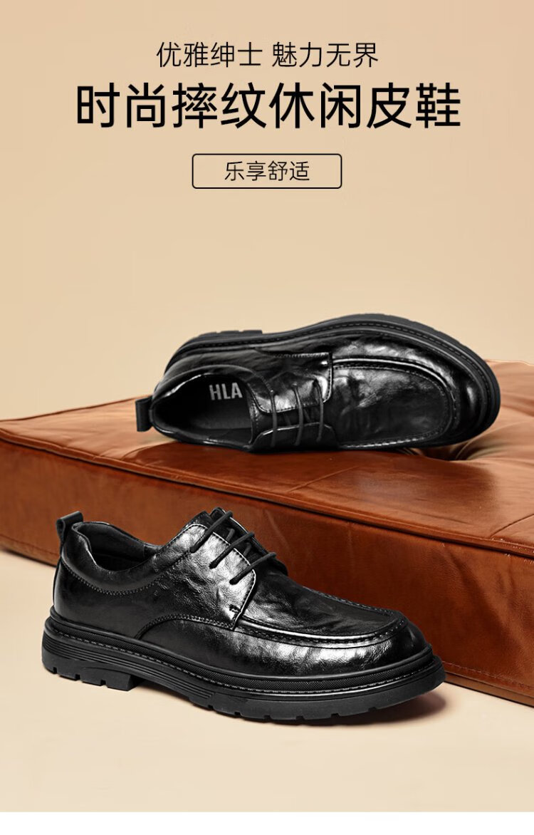 Hailan House HLA Leather Shoes Men's Versatile Casual Leather Shoes Business Wear-Resistant Derby Shoes HAAPXM1EAV007 Black 40