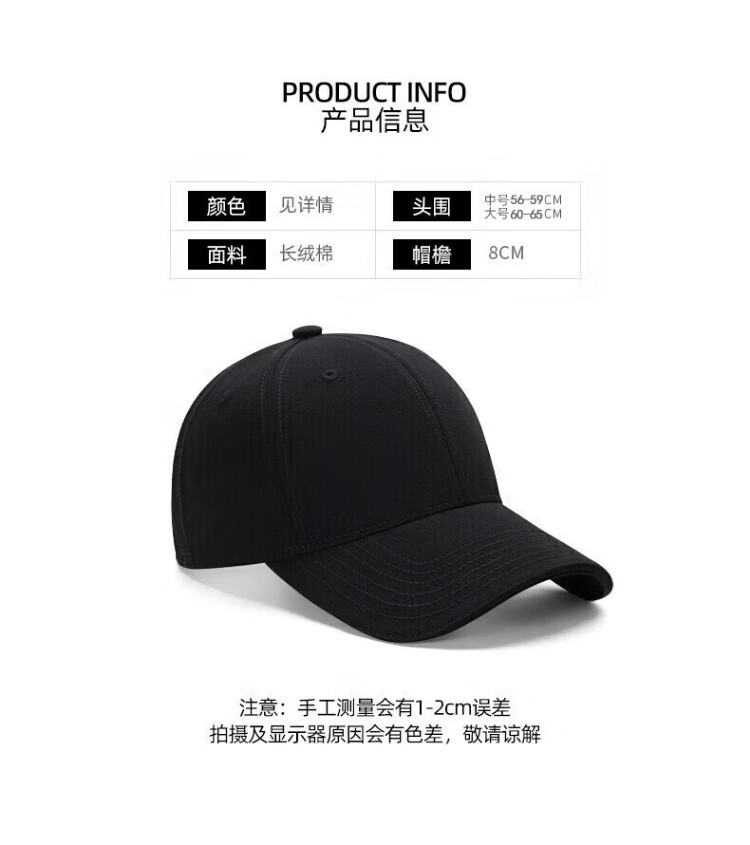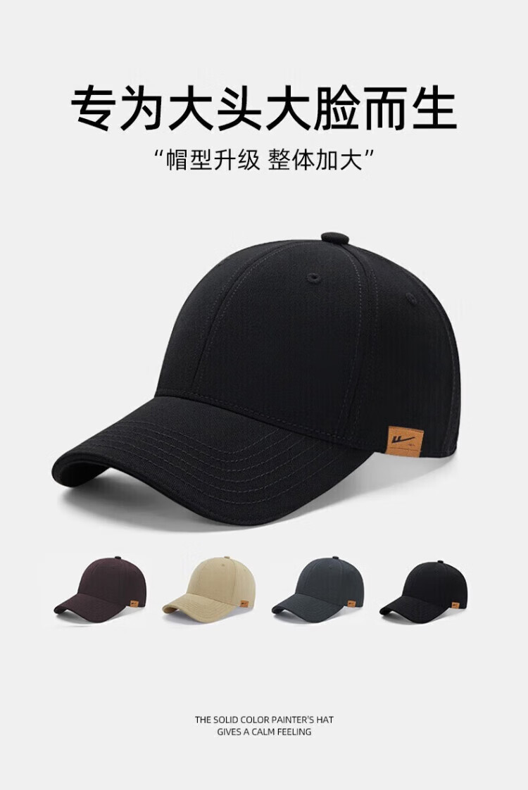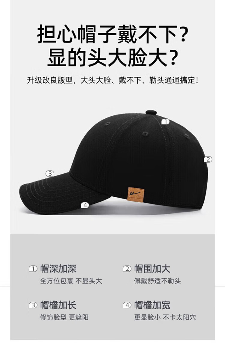 Pull back large size baseball hat men's four-season sun protection peaked cap women's simple large head casual hat breathable large head circumference sun hat