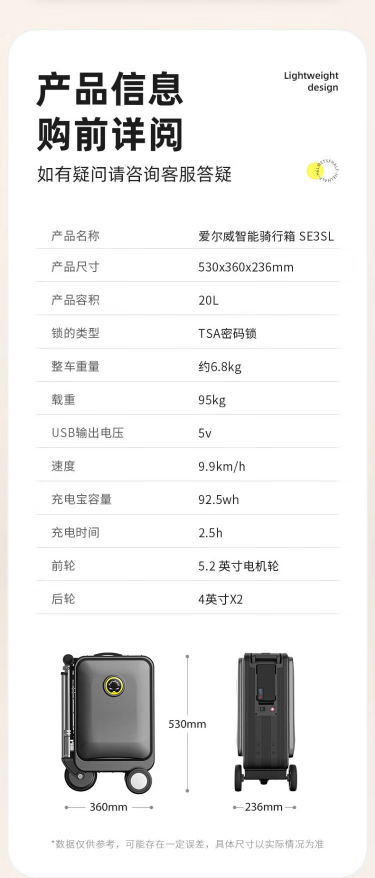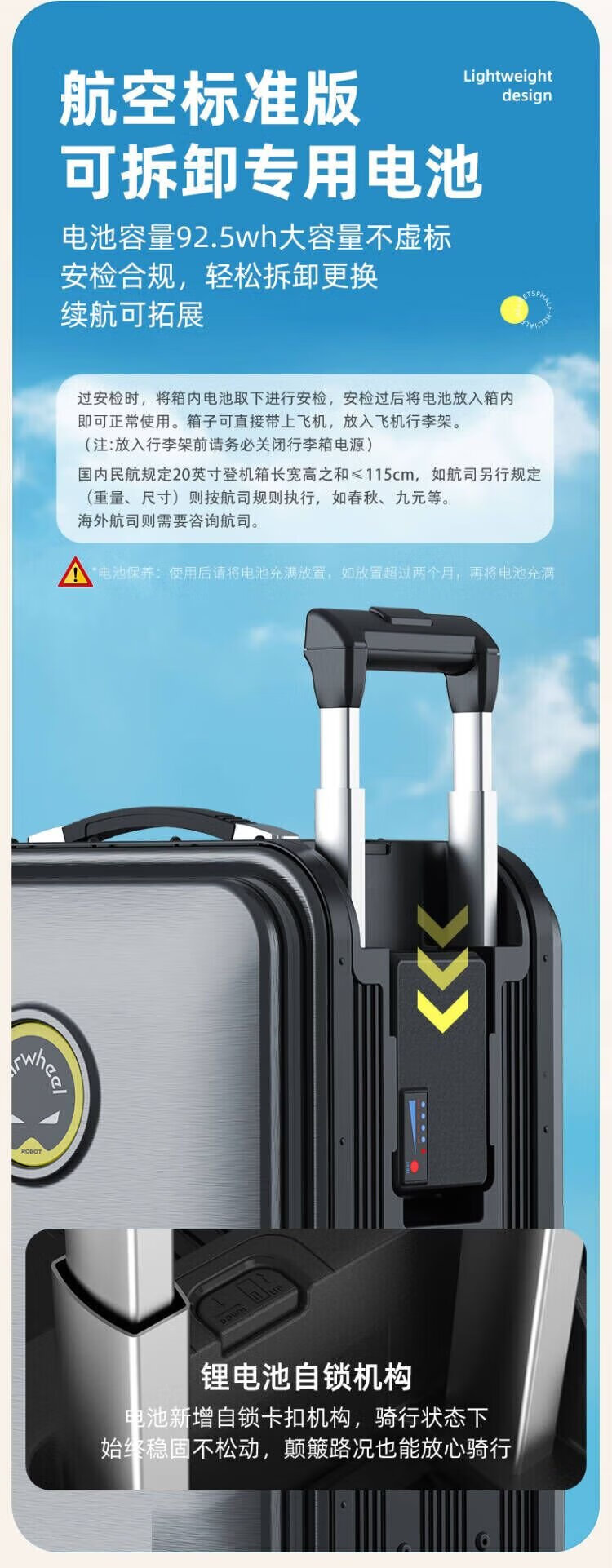 Airwheel Airwheel electric suitcase, rideable trolley case, sit and travel aluminum frame luggage 20-inch boarding case