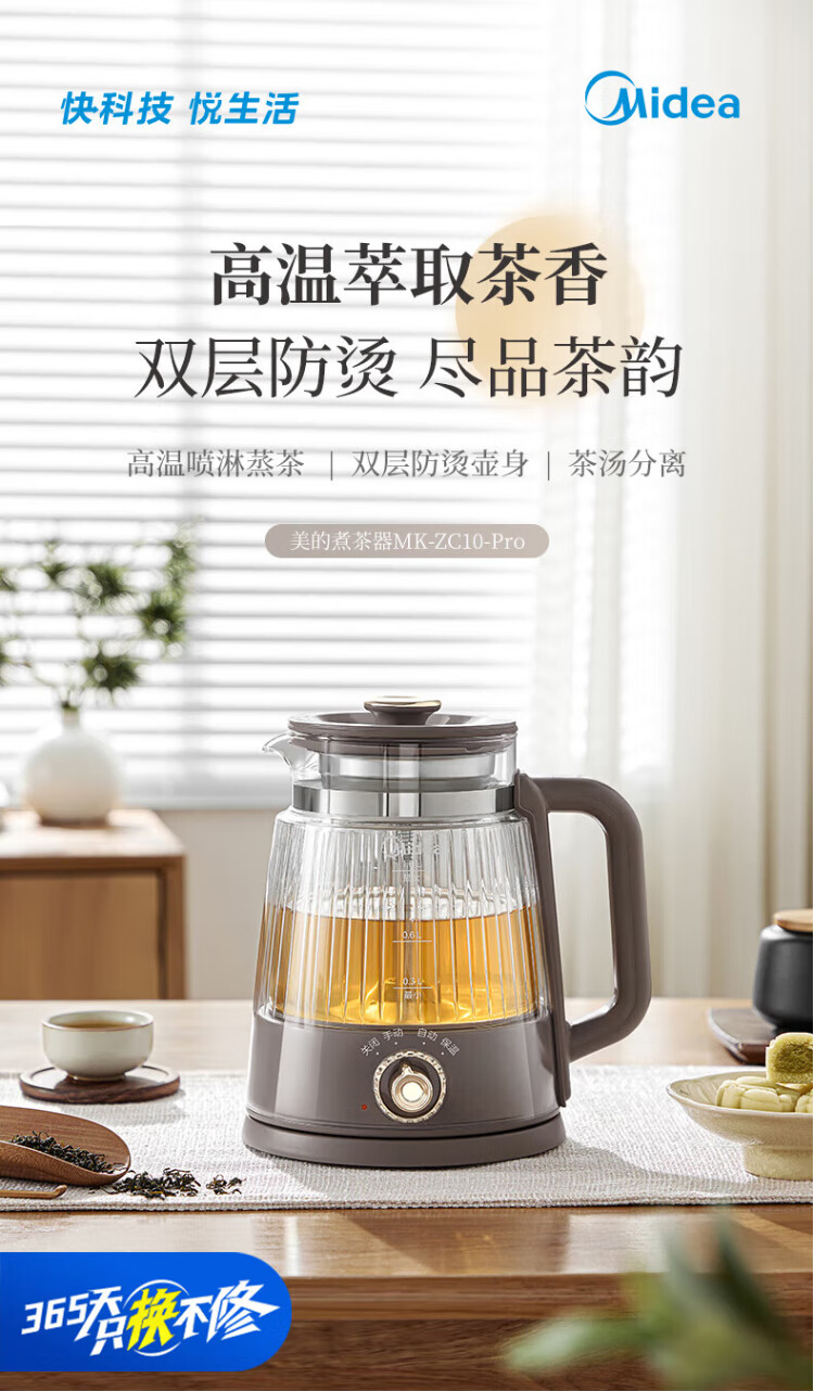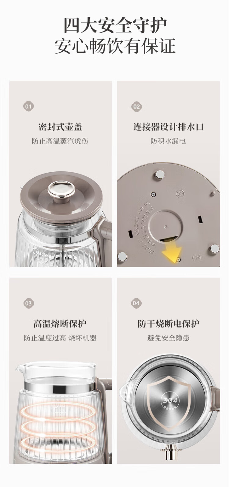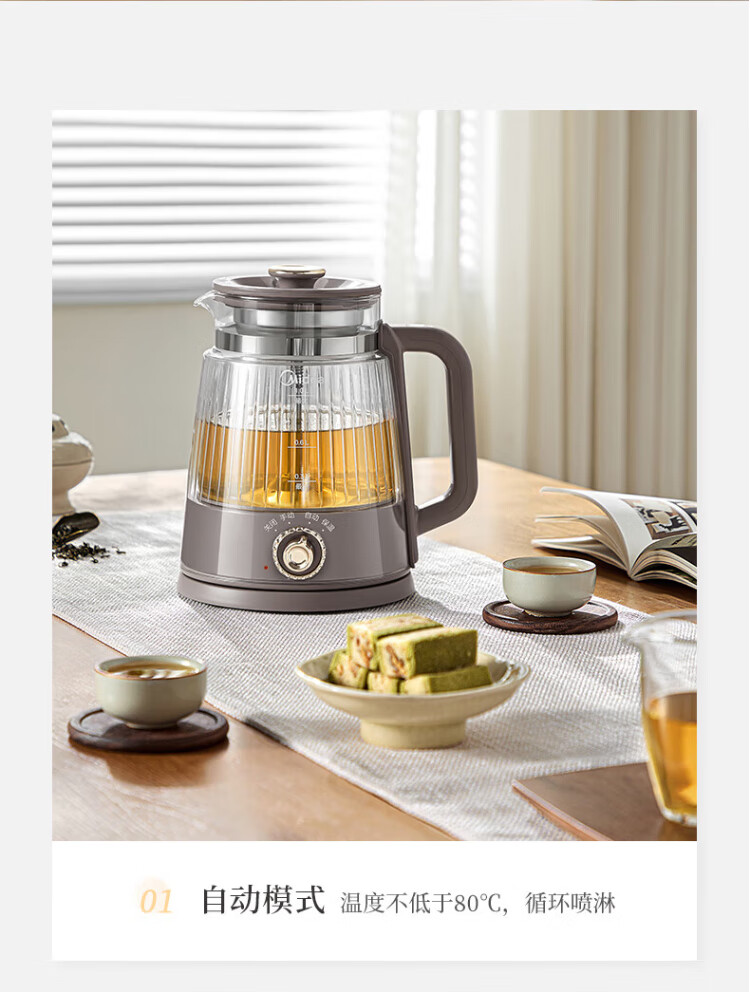 Midea Health Pot Tea Boiler Tea Kettle Electric Kettle Hot Water Kettle Kettle Thermostatic Kettle Electric Kettle Mini Glass Tea Kettle Black Tea ZC10-Pro