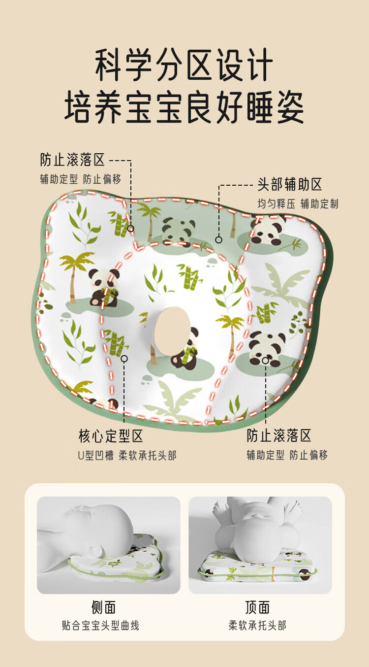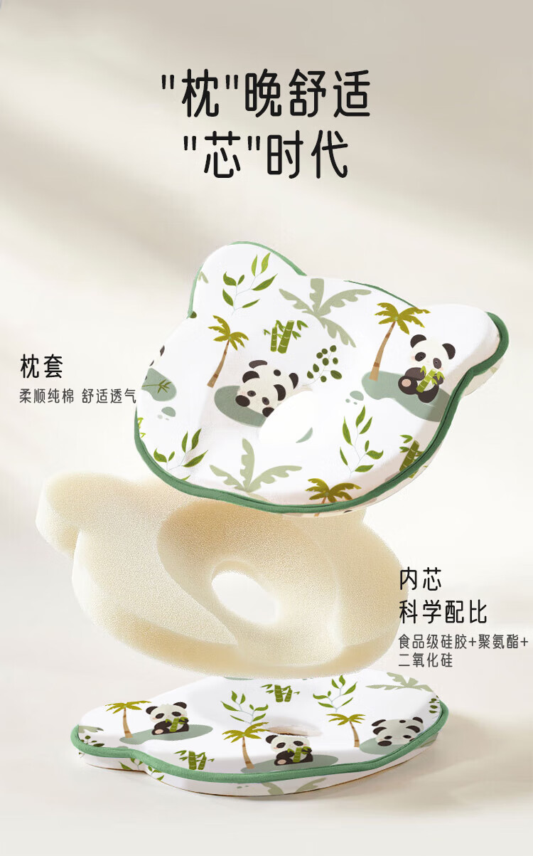 Aiboshi baby shaping pillow with silicone pillow core pillow 0-1 newborn pillow auxiliary eccentric baby pillow Panda XGZ01
