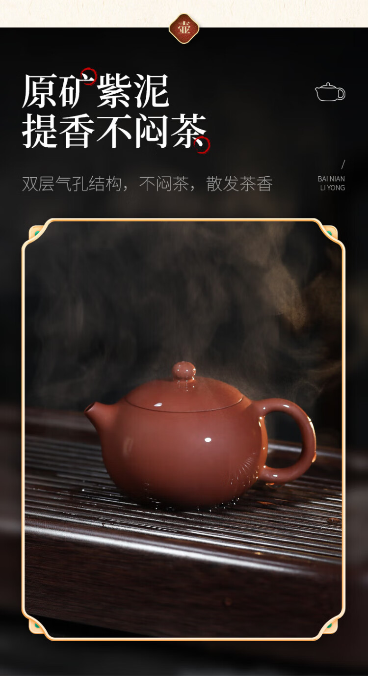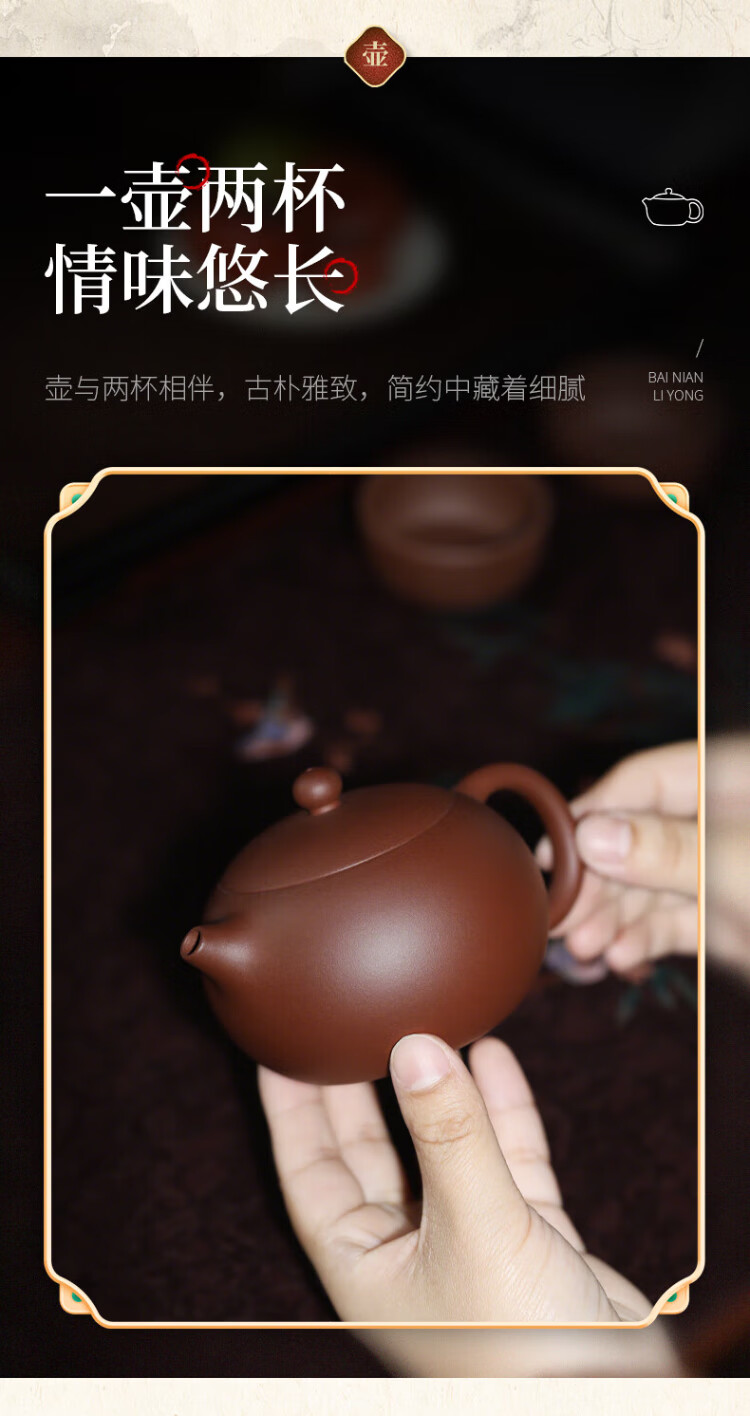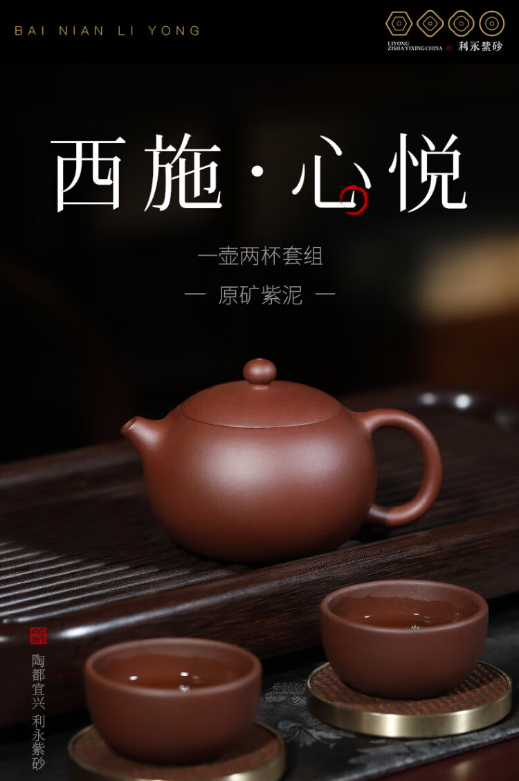 Centenary Liyong Yixing purple clay pot pure handmade original mineral purple clay Xishi pot Kung Fu tea set teapot one pot two cups set