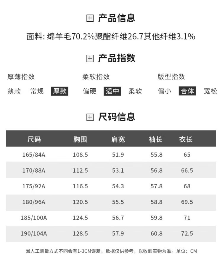 China (cm) 165 / 88-90 170 / 96-98 175 / 108-110 180 / 118-122 185 / 126-130