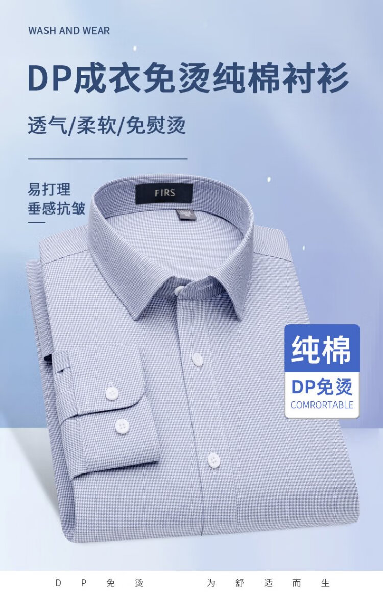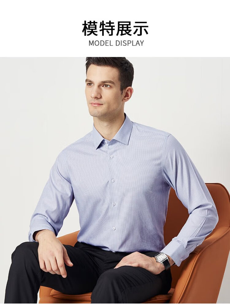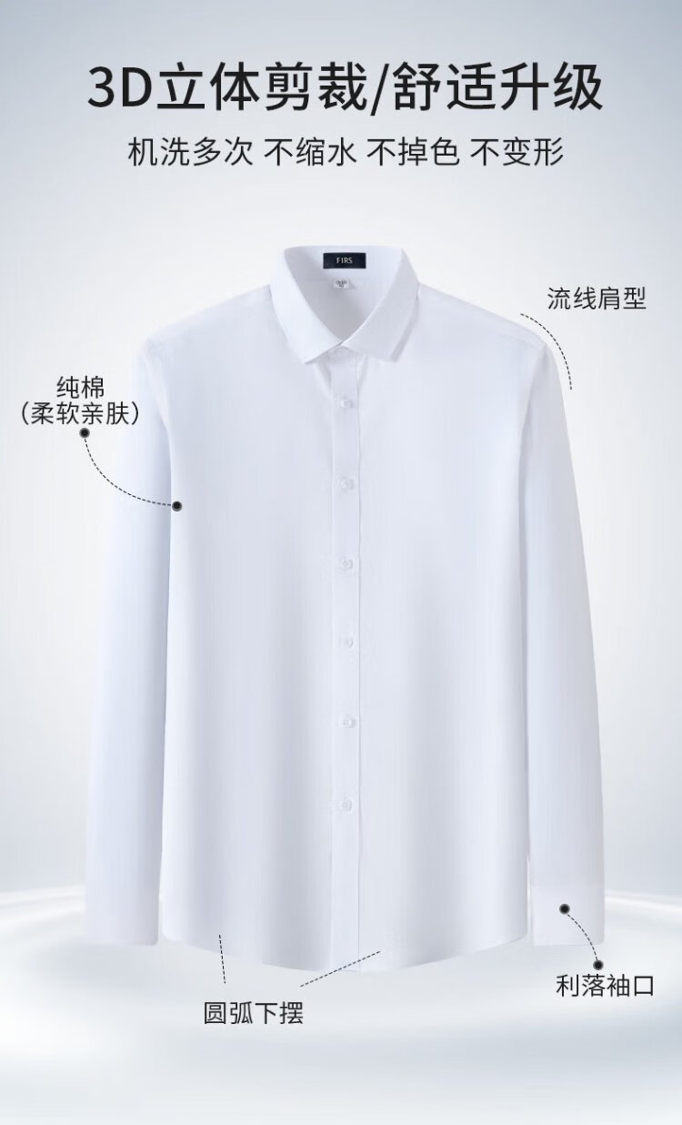 杉杉【DP免烫】衬衫男长袖纯棉休闲商务抗皱衬衣 白色 39