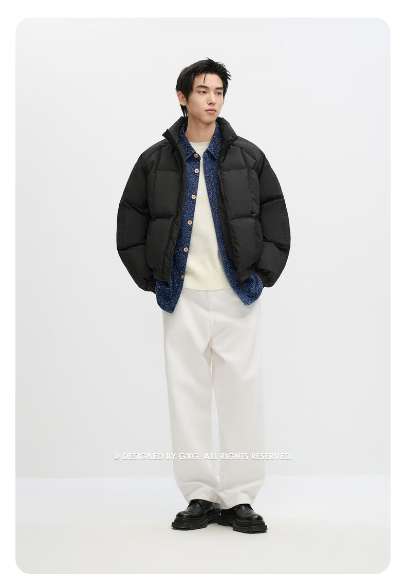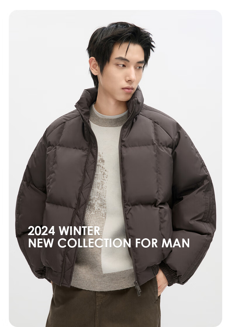 GXG men's warm short down jacket black winter 2024 new arrival coffee color 180/XL