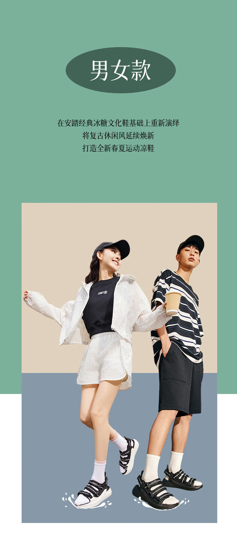 安踏冰糖凉鞋拖鞋男夏季透气厚底增高潮流舒适沙滩户外凉拖鞋