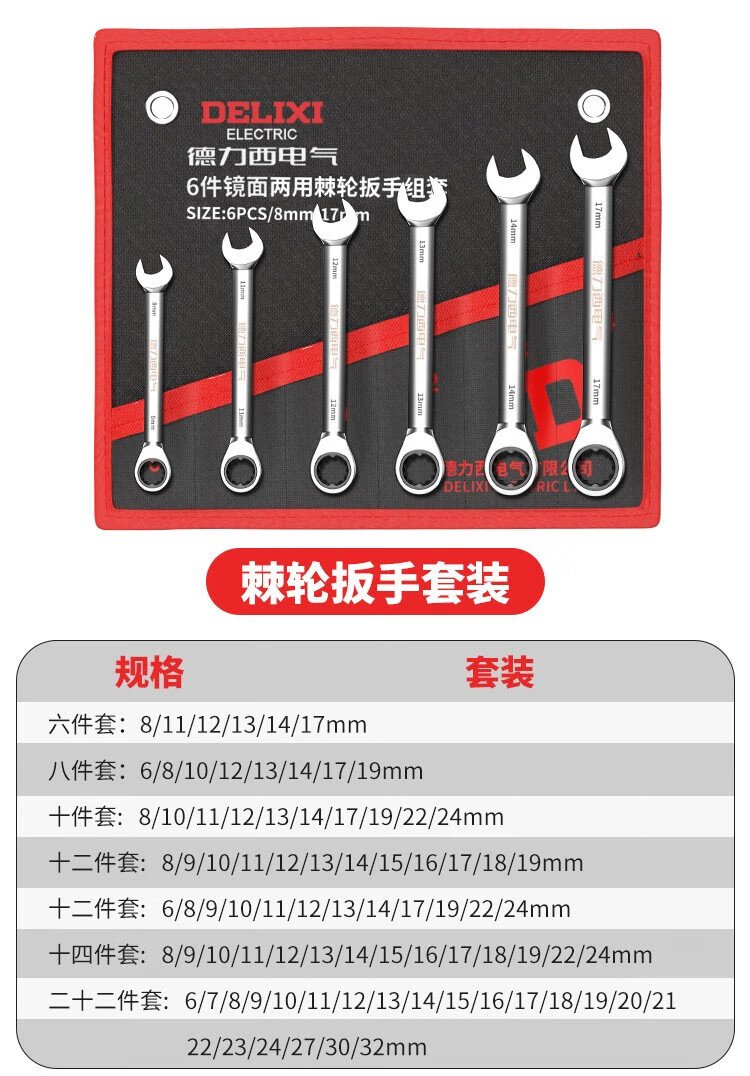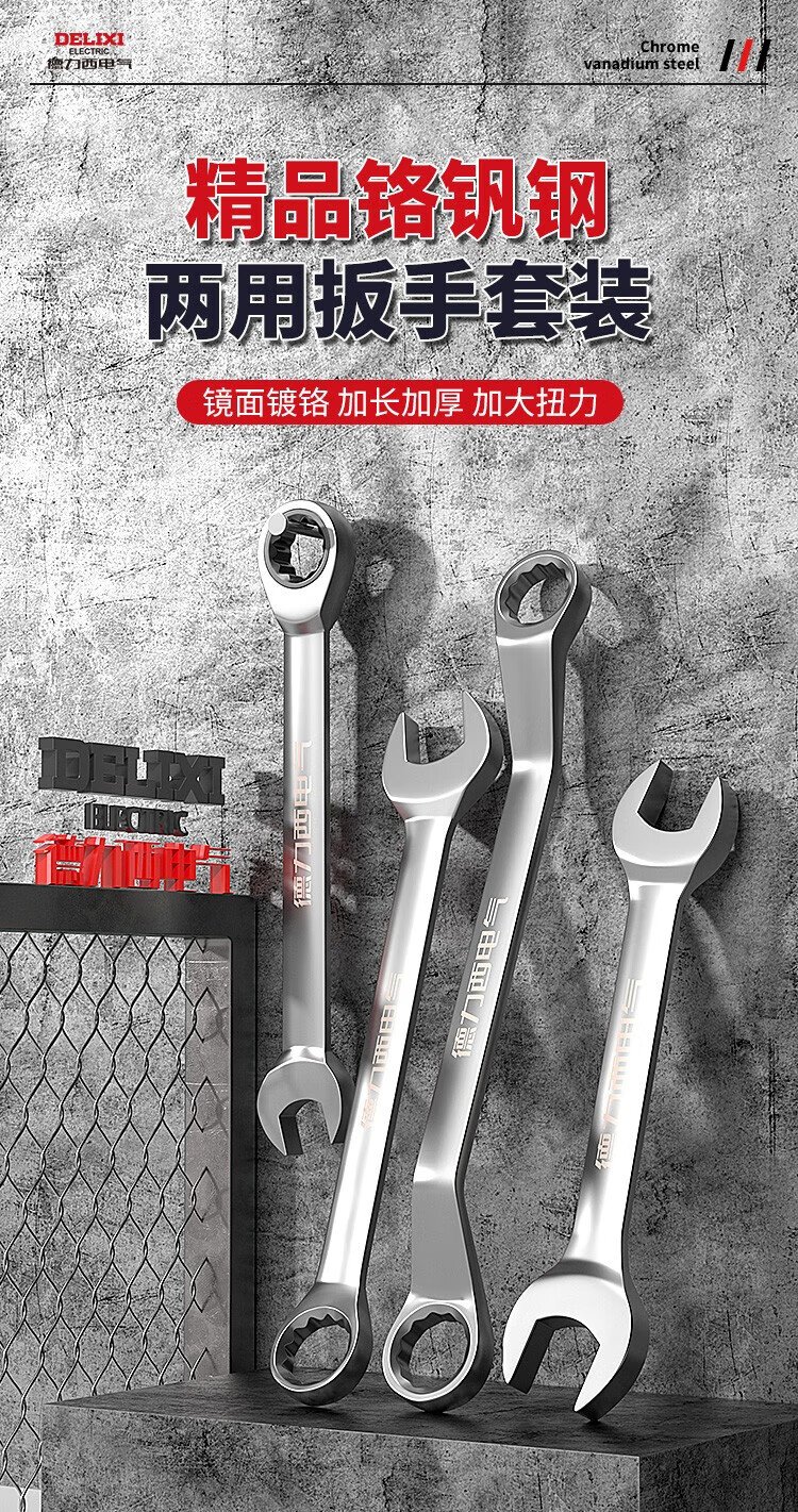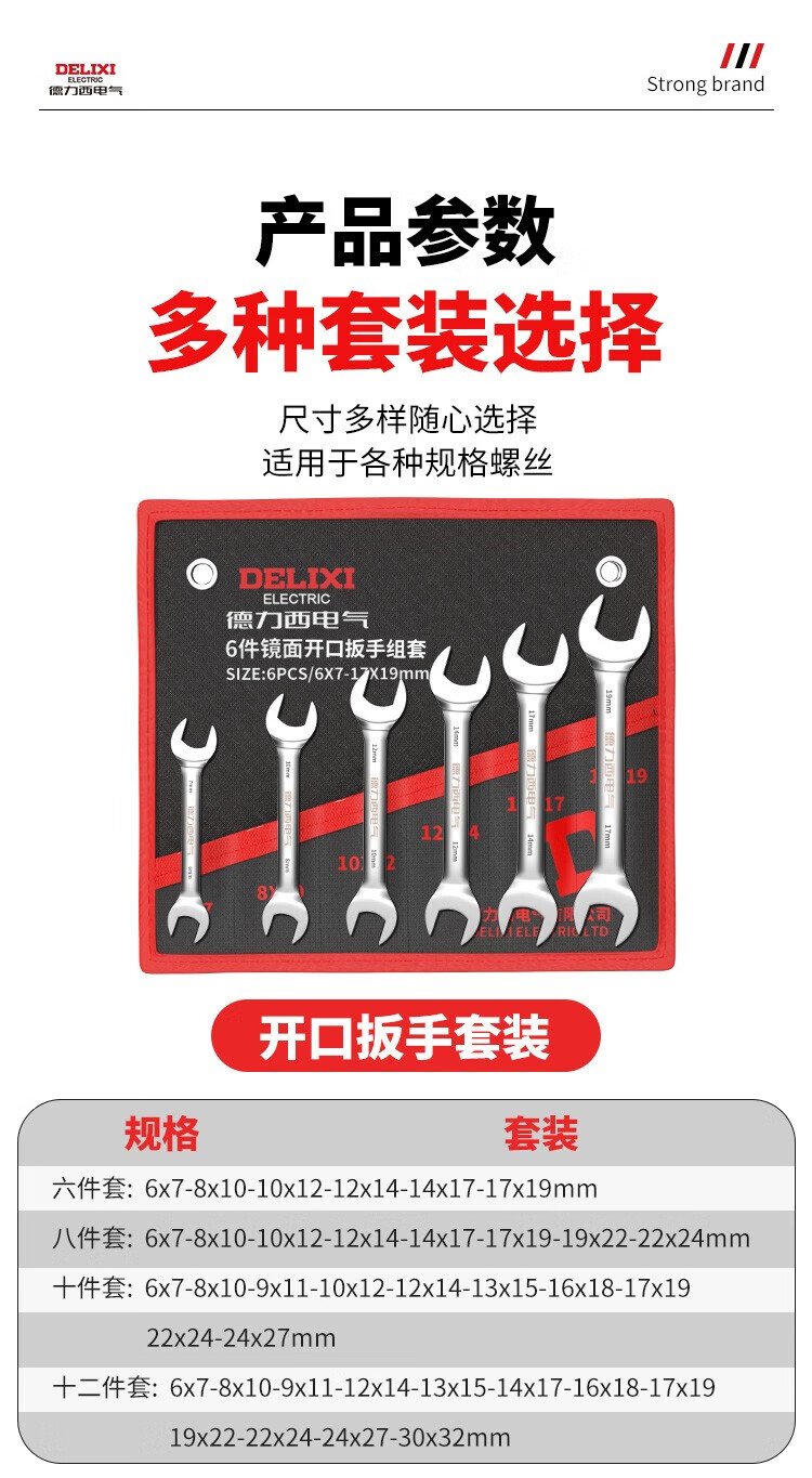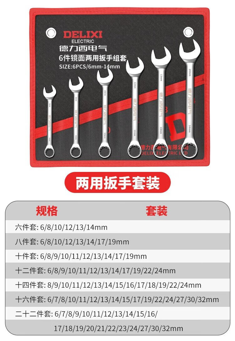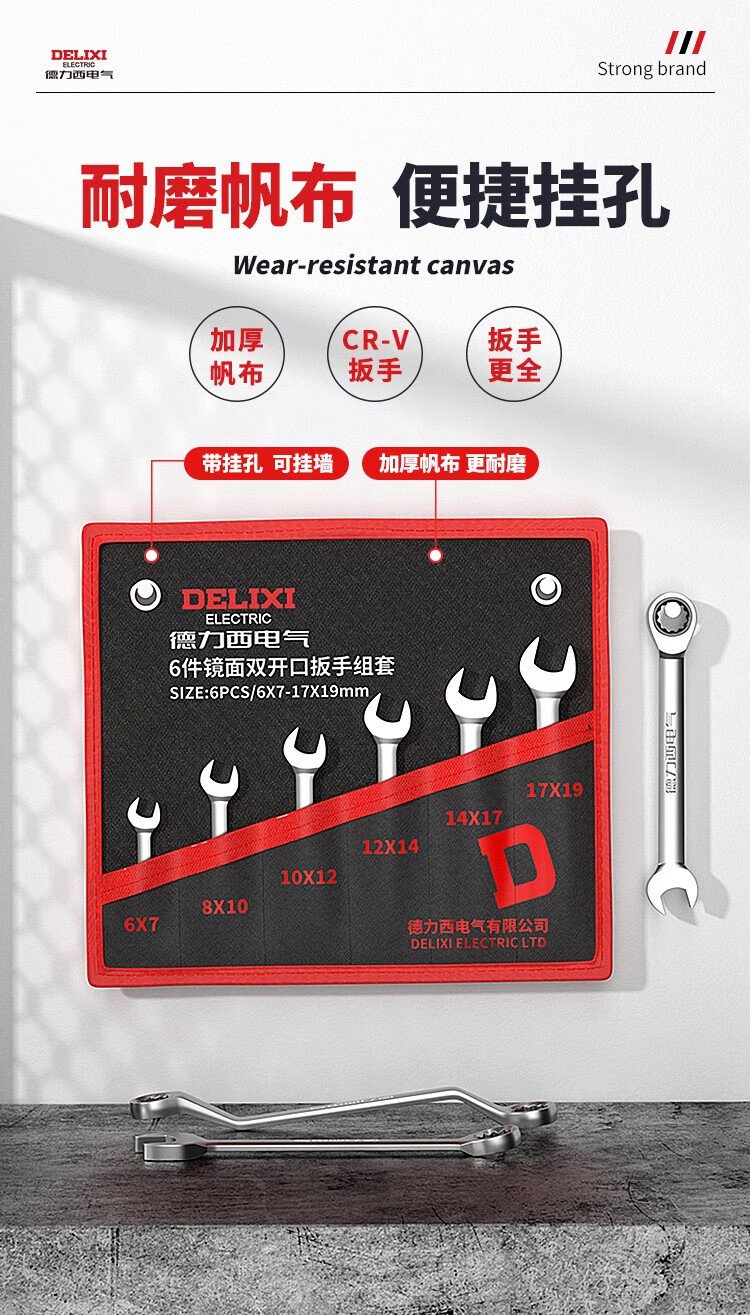 DELIXI ELECTRIC wrench set tool open-ended wrench home car repair and maintenance labor-saving open-ended wrench 6-piece set