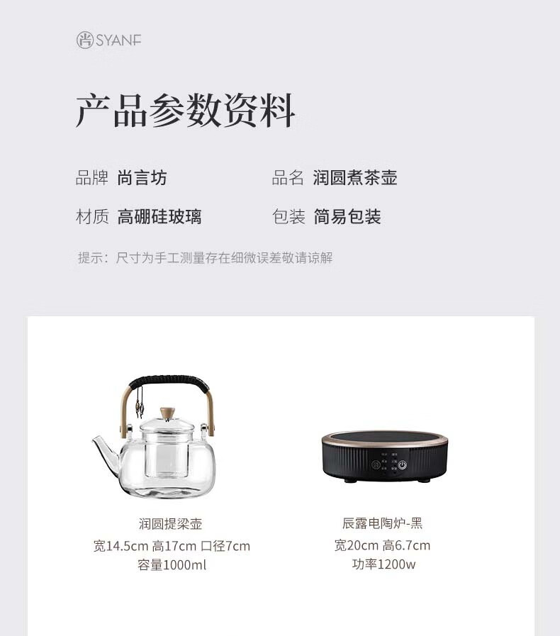 Shangyanfang electric ceramic stove tea boiler tea stove thickened high temperature resistant glass kettle tea kettle large capacity special for making tea