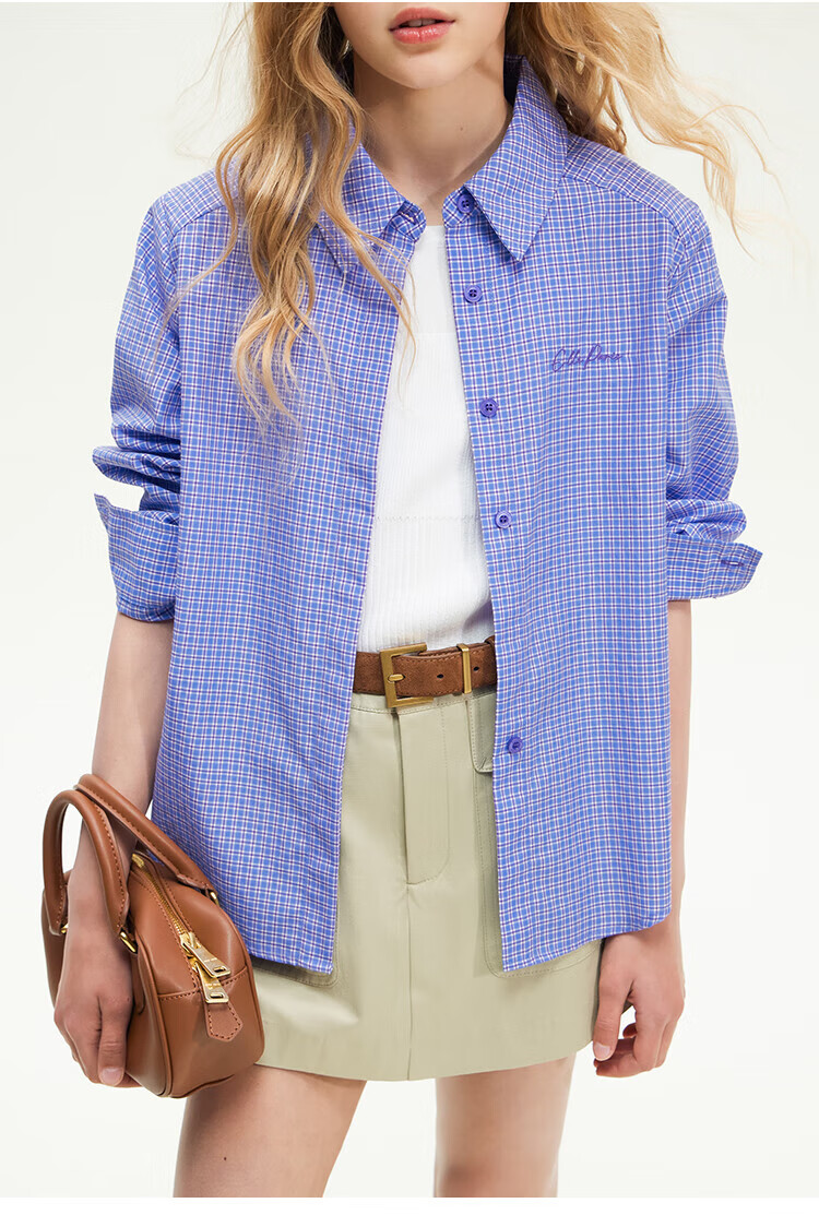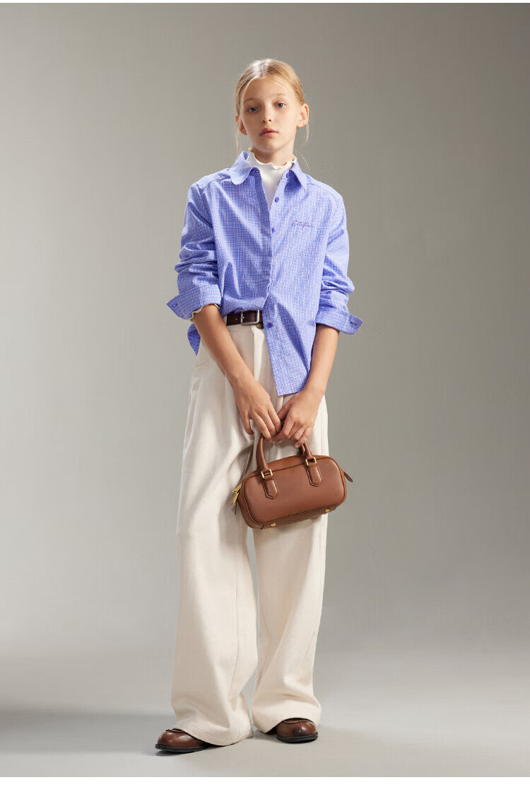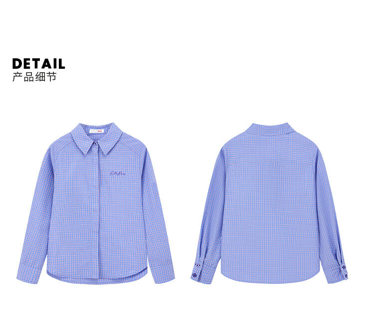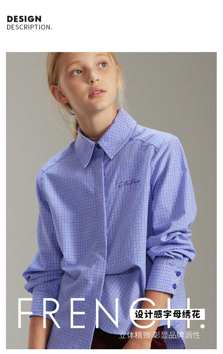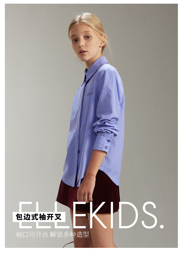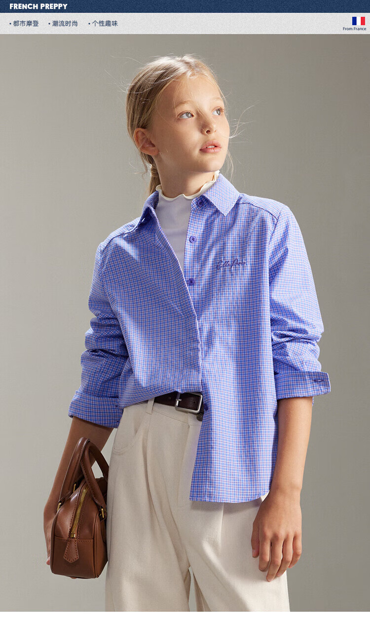 ELLE KIDS French girls spring new plaid embroidered soft and comfortable classic basic long-sleeved polo collar shirt