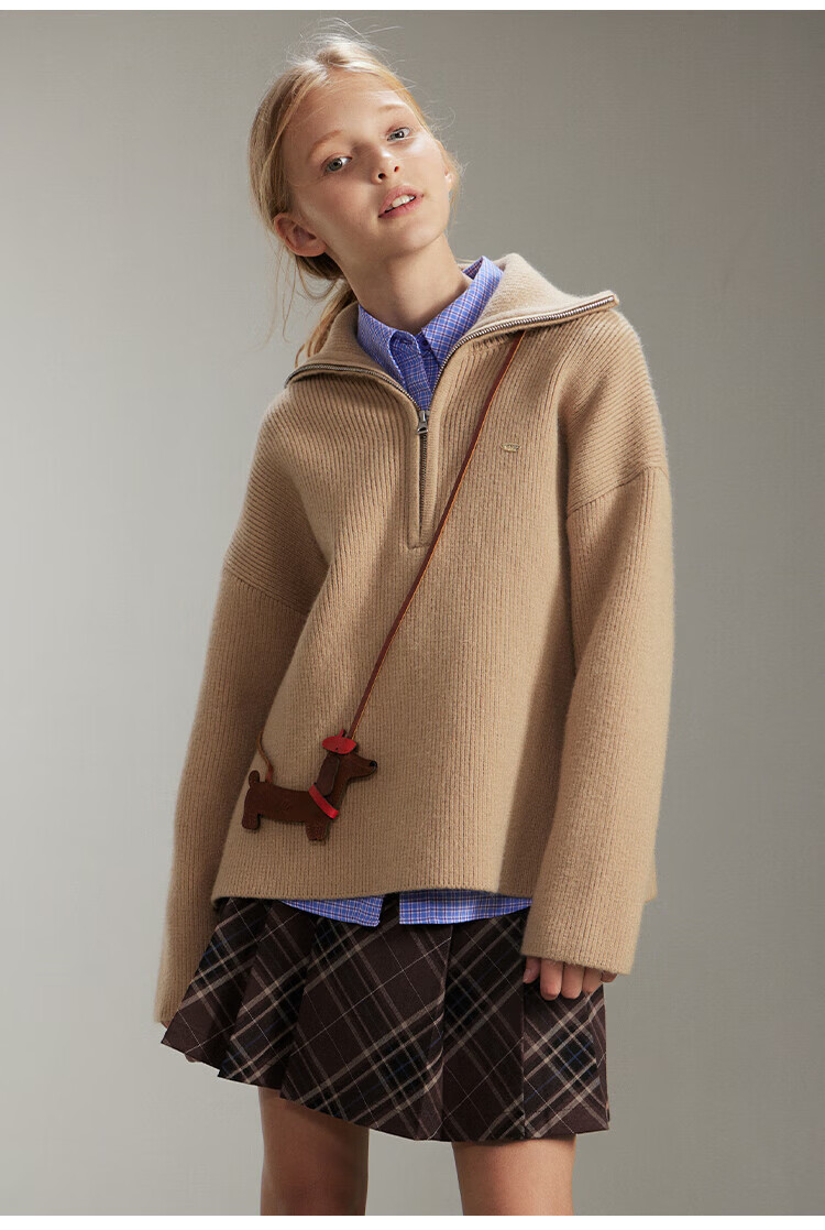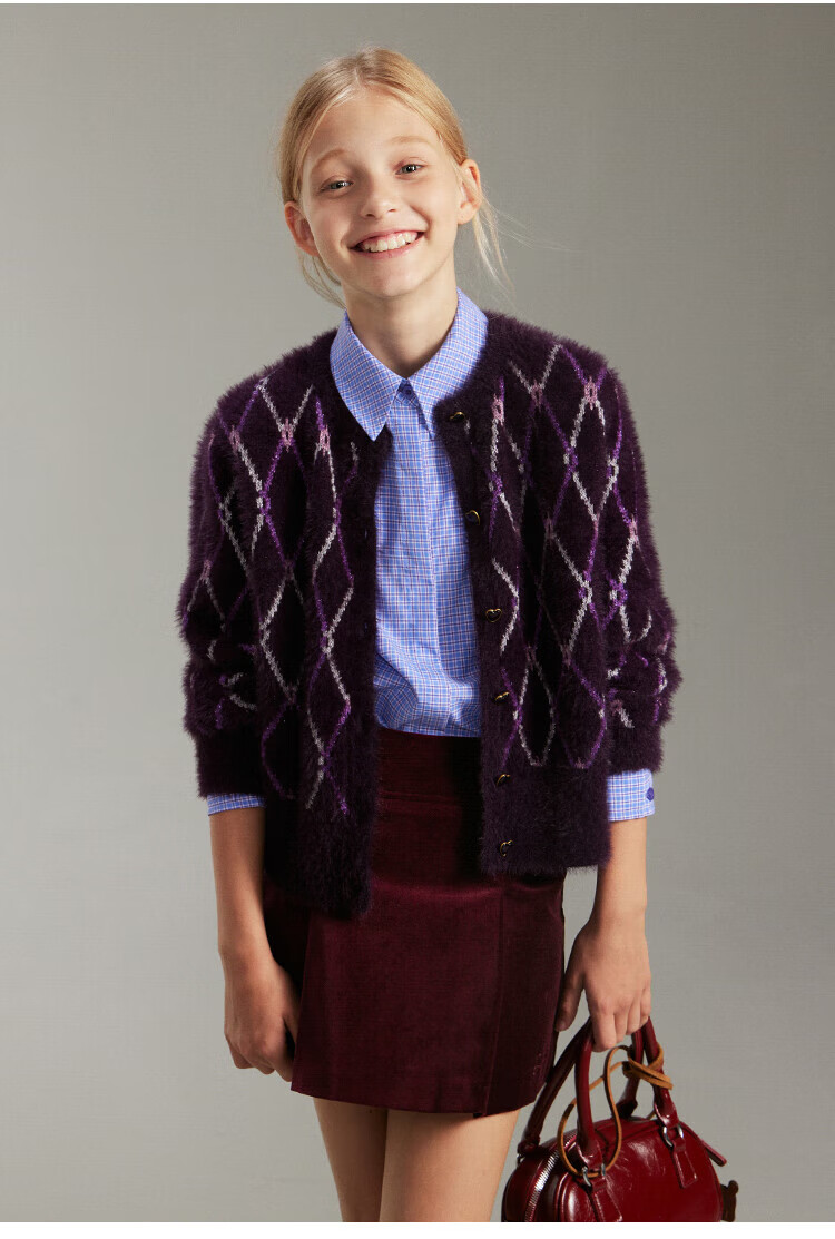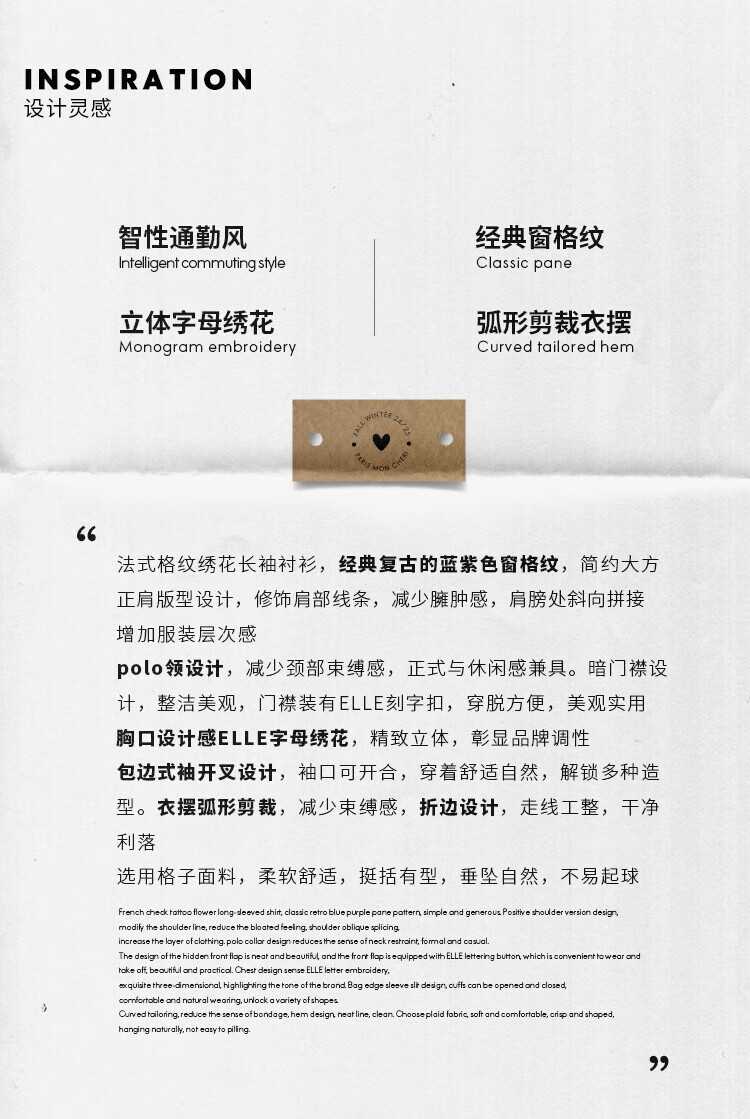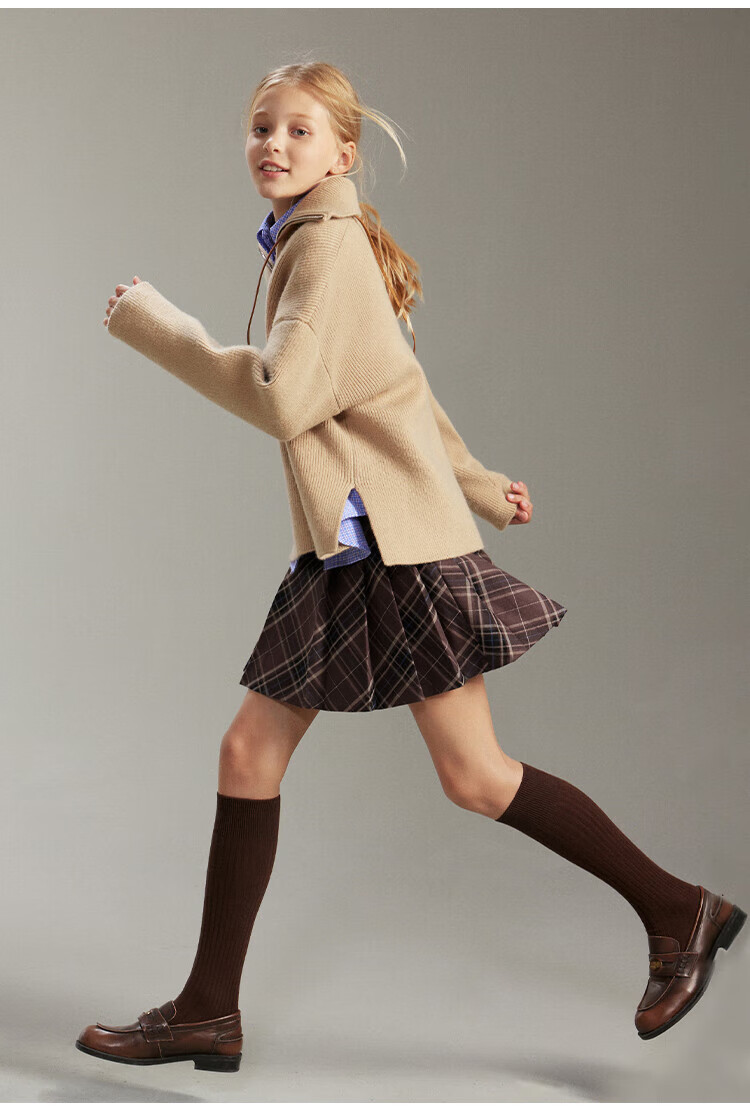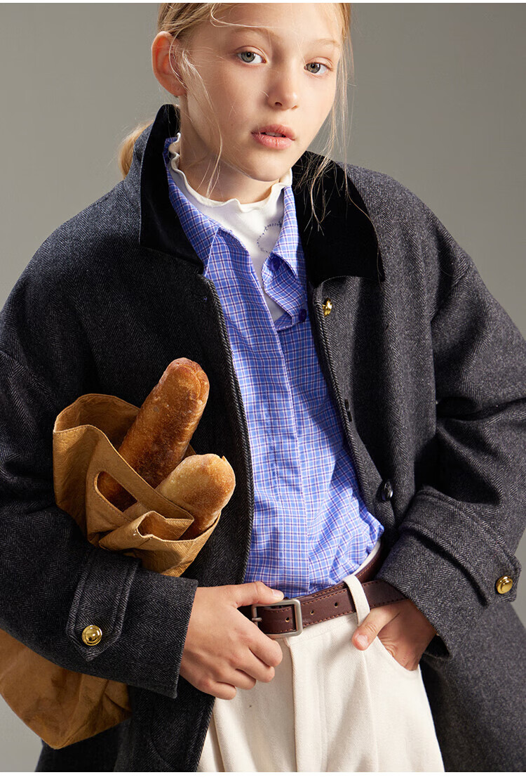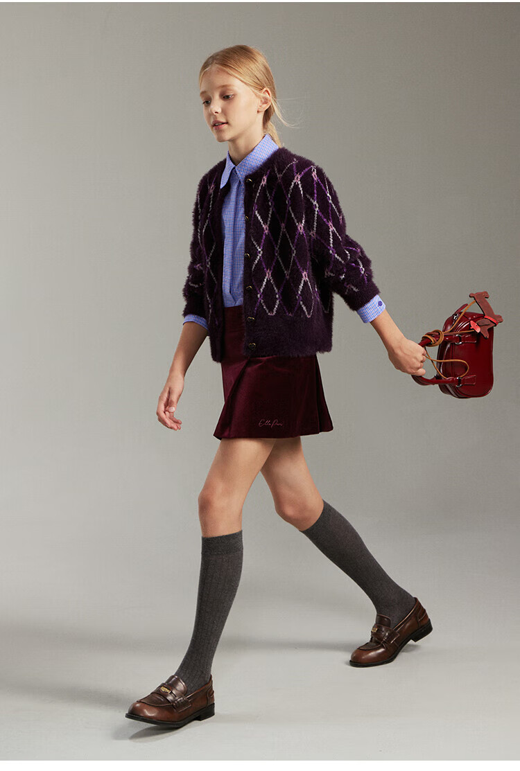 ELLE KIDS French girls spring new plaid embroidered soft and comfortable classic basic long-sleeved polo collar shirt