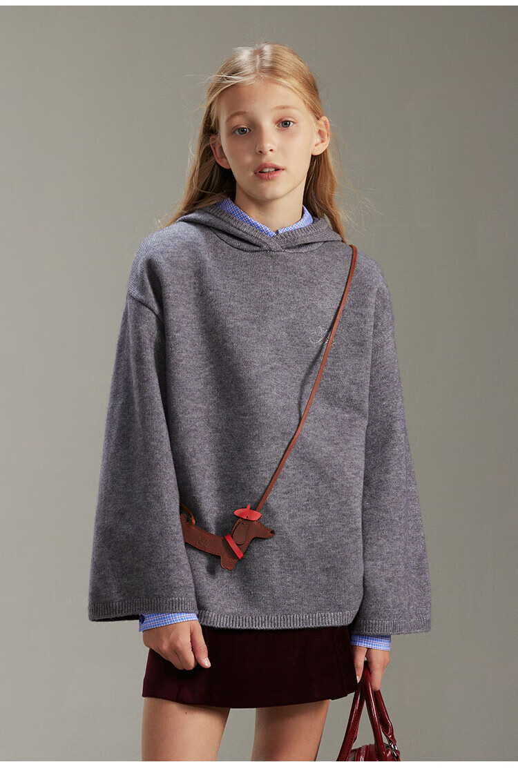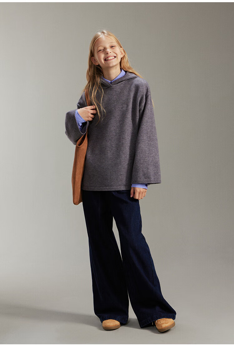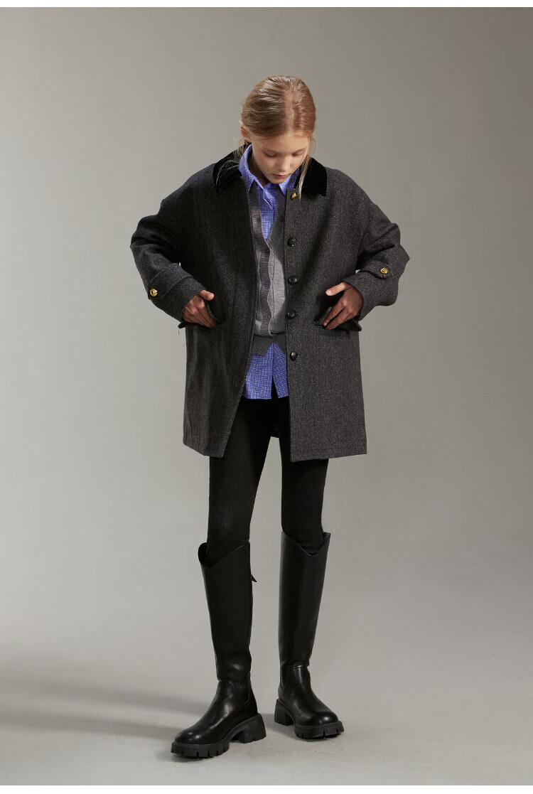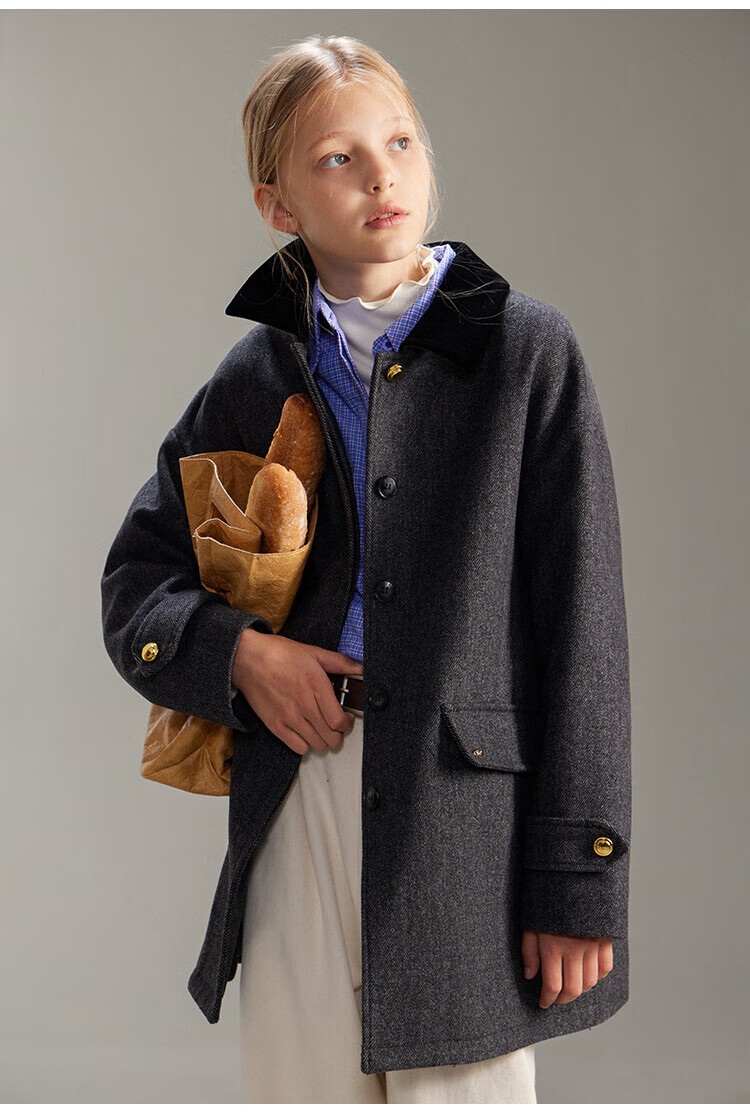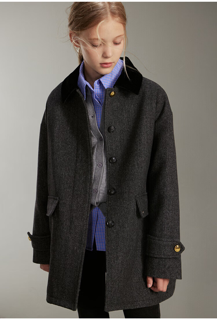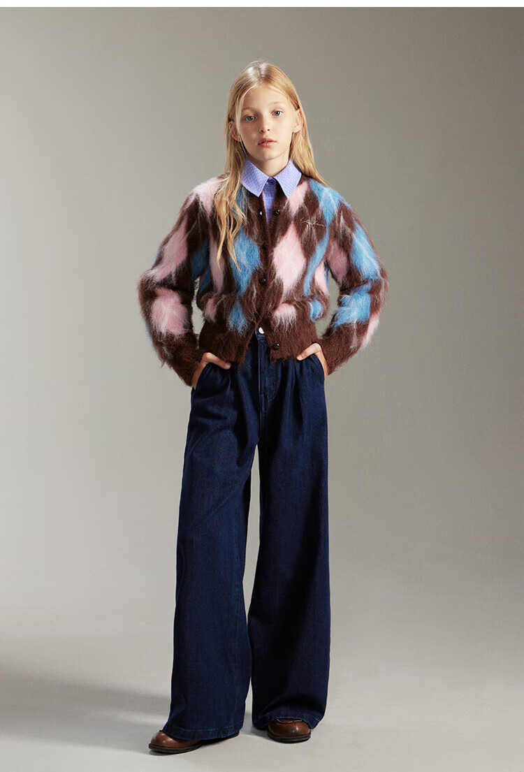 ELLE KIDS French girls spring new plaid embroidered soft and comfortable classic basic long-sleeved polo collar shirt