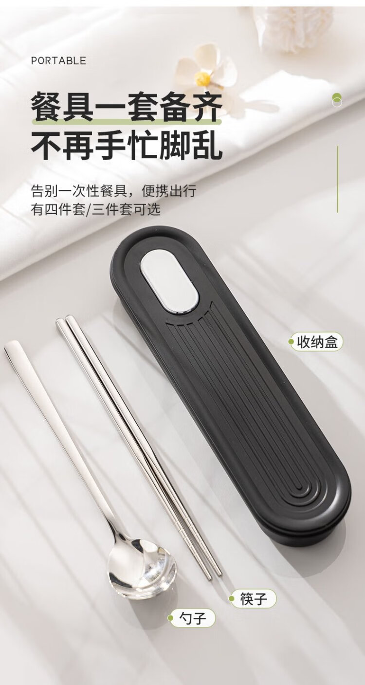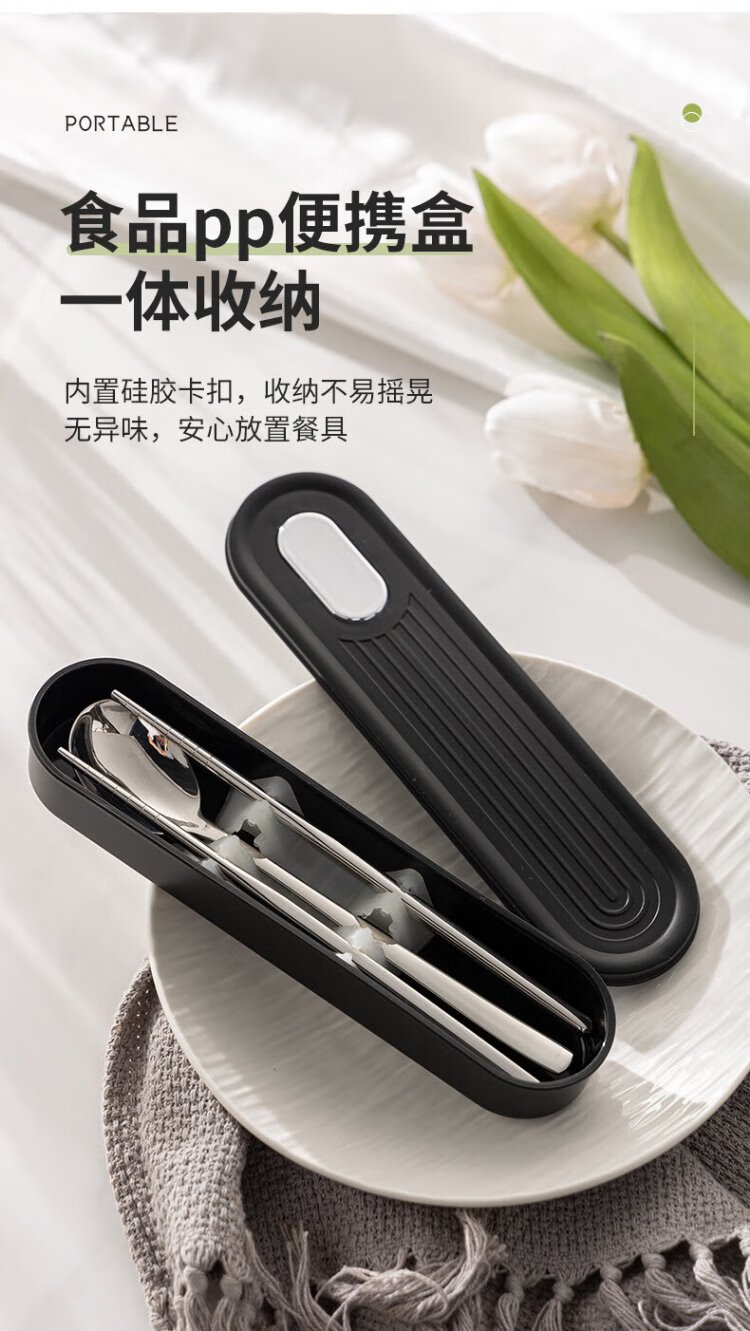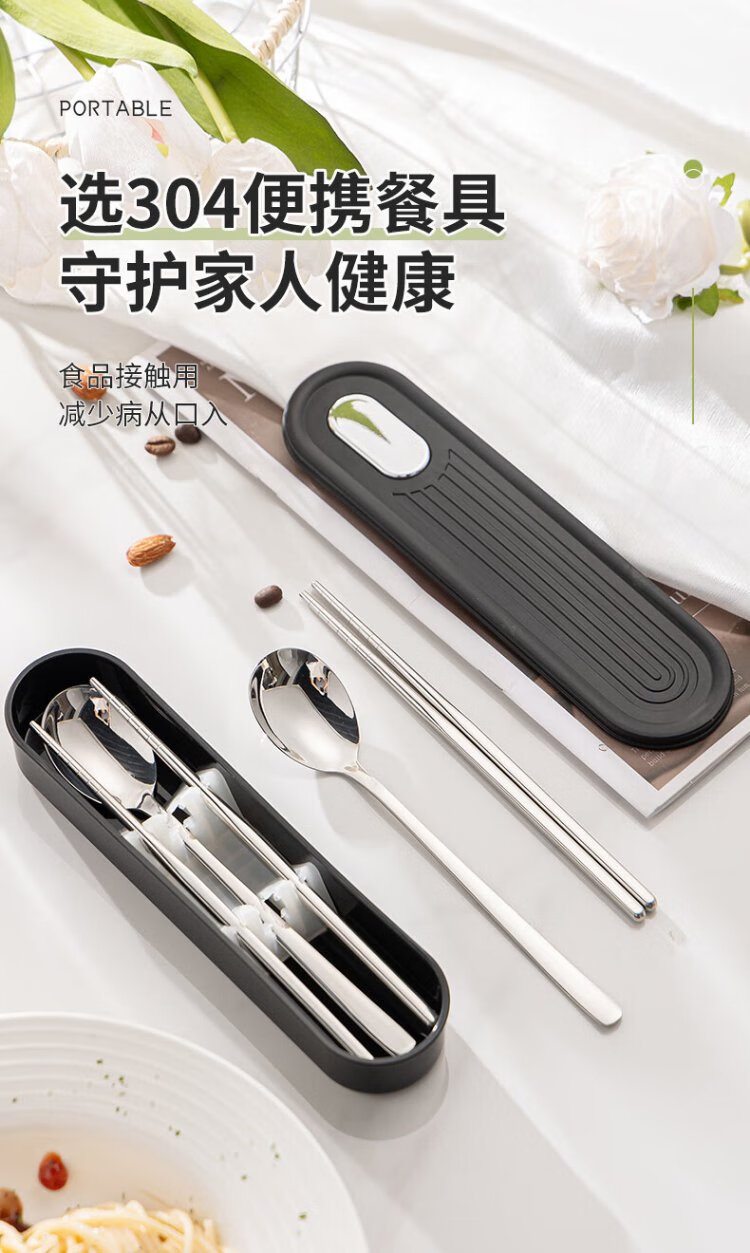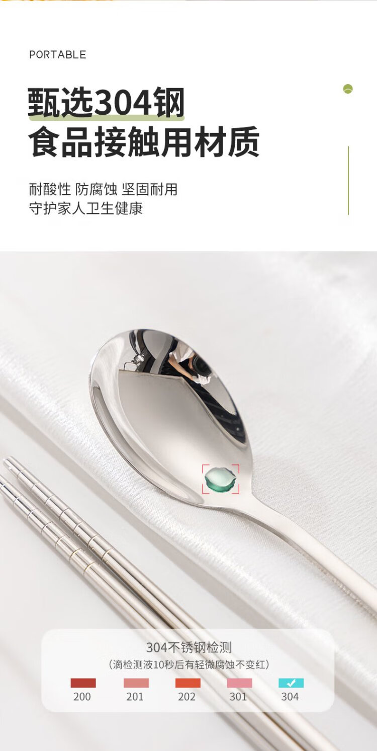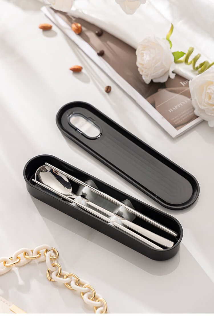 Guangyi 304 stainless steel chopsticks and spoon set, tableware set for one person, portable storage box, three-piece set GY7357