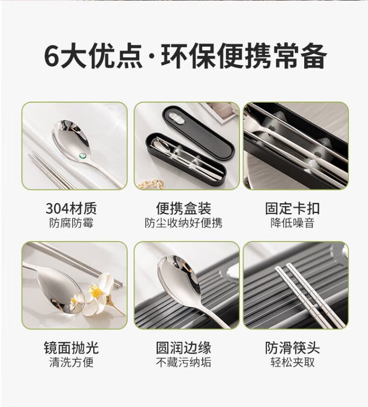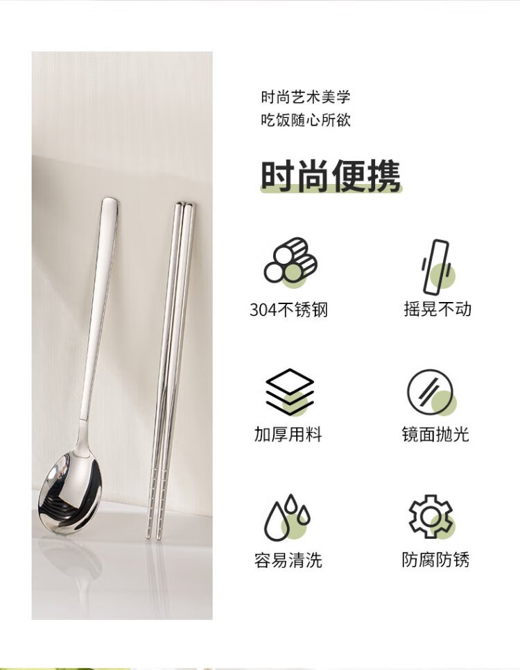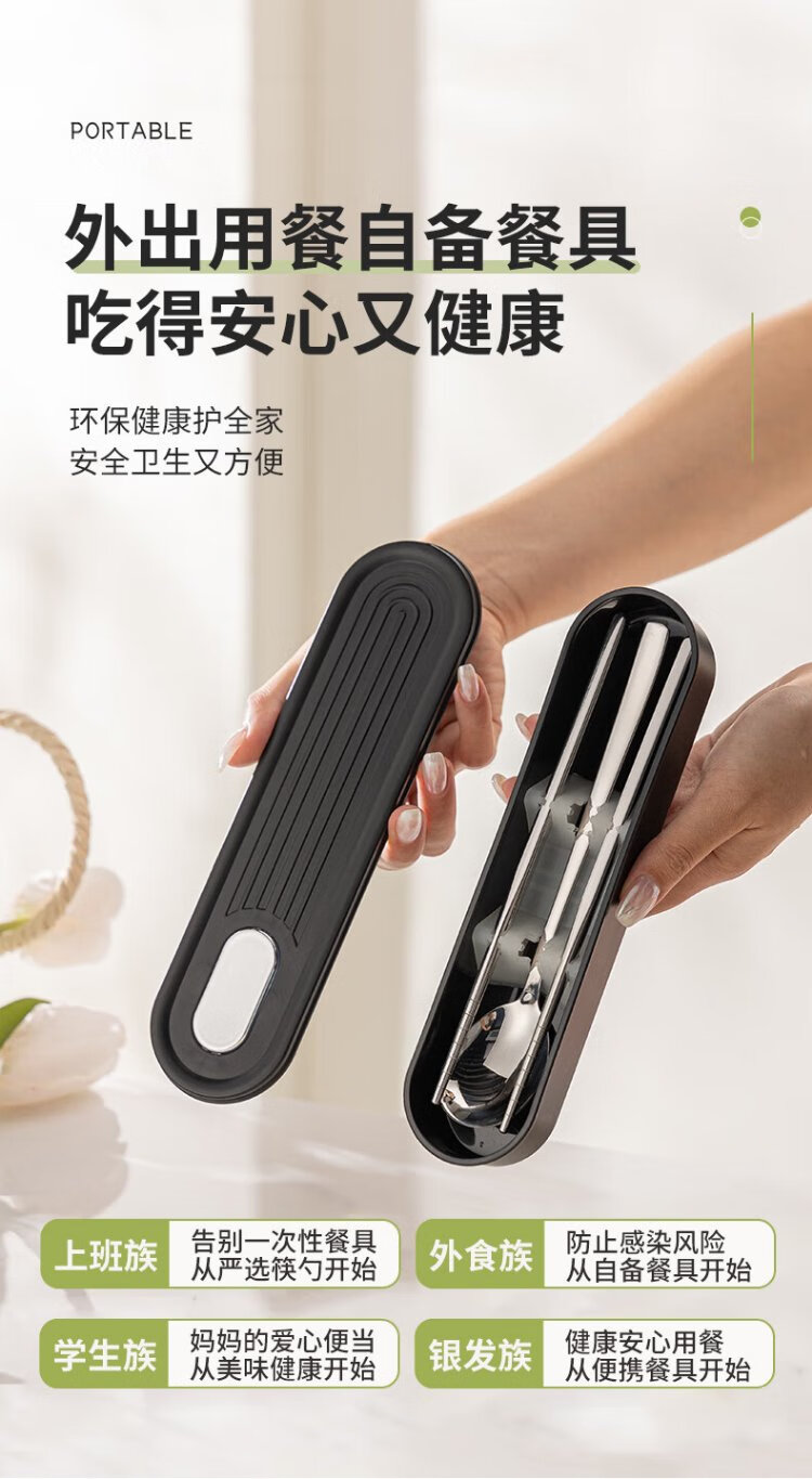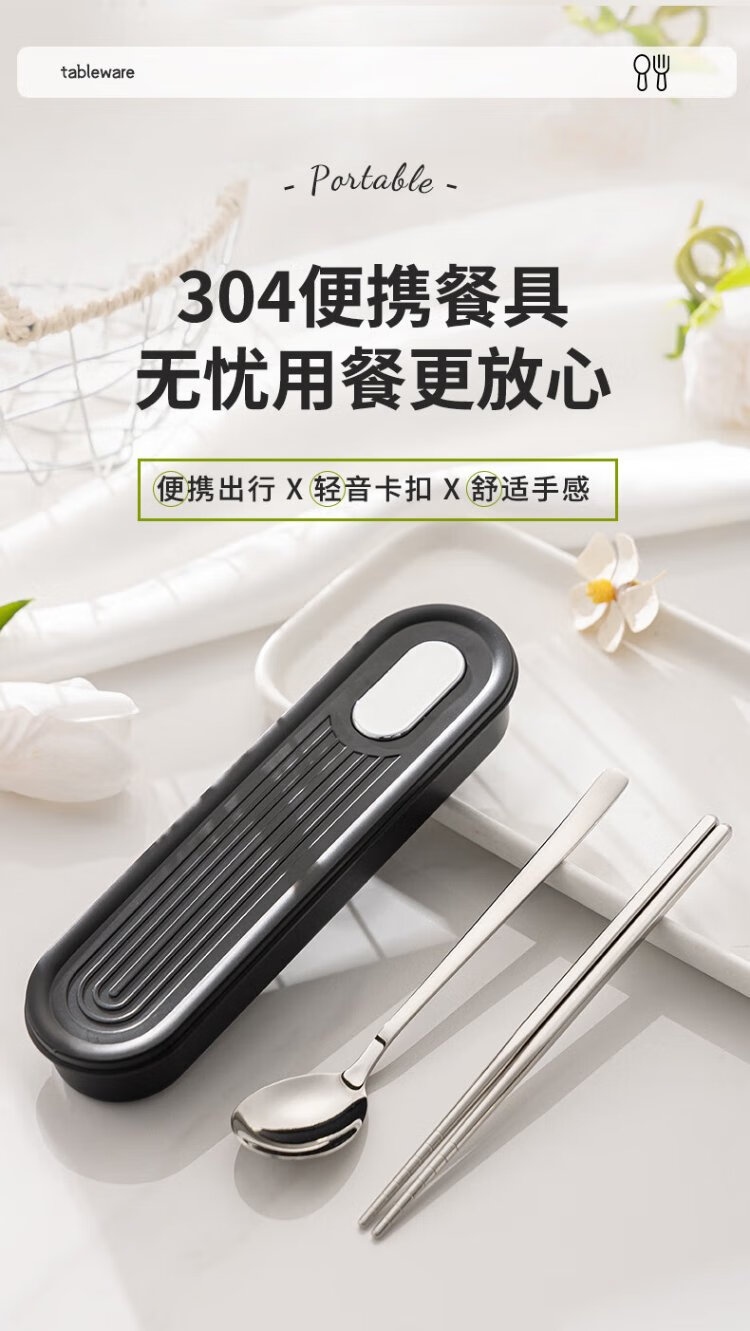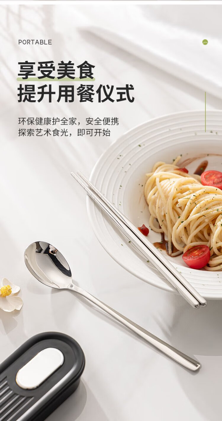 Guangyi 304 stainless steel chopsticks and spoon set, tableware set for one person, portable storage box, three-piece set GY7357