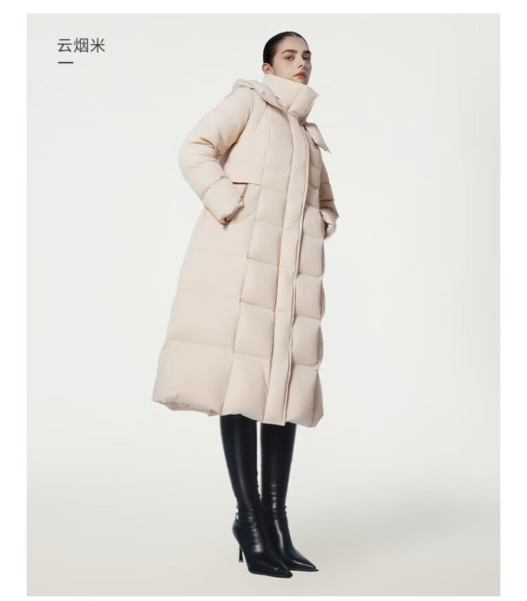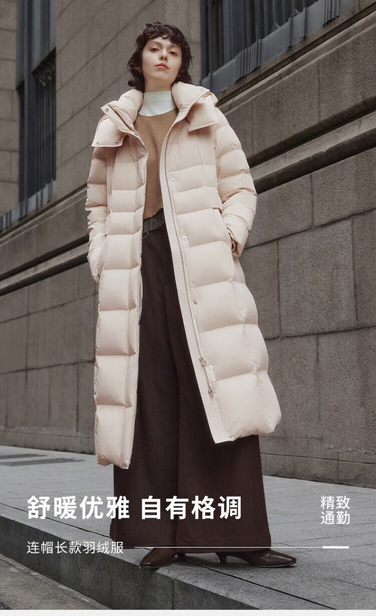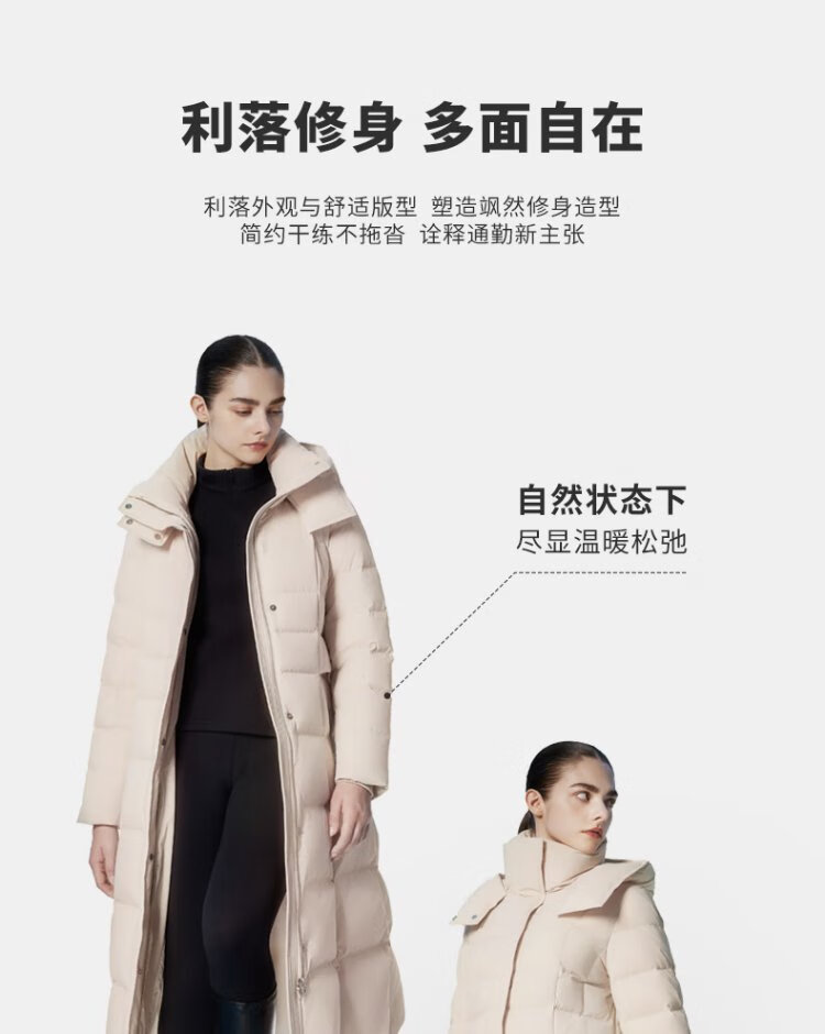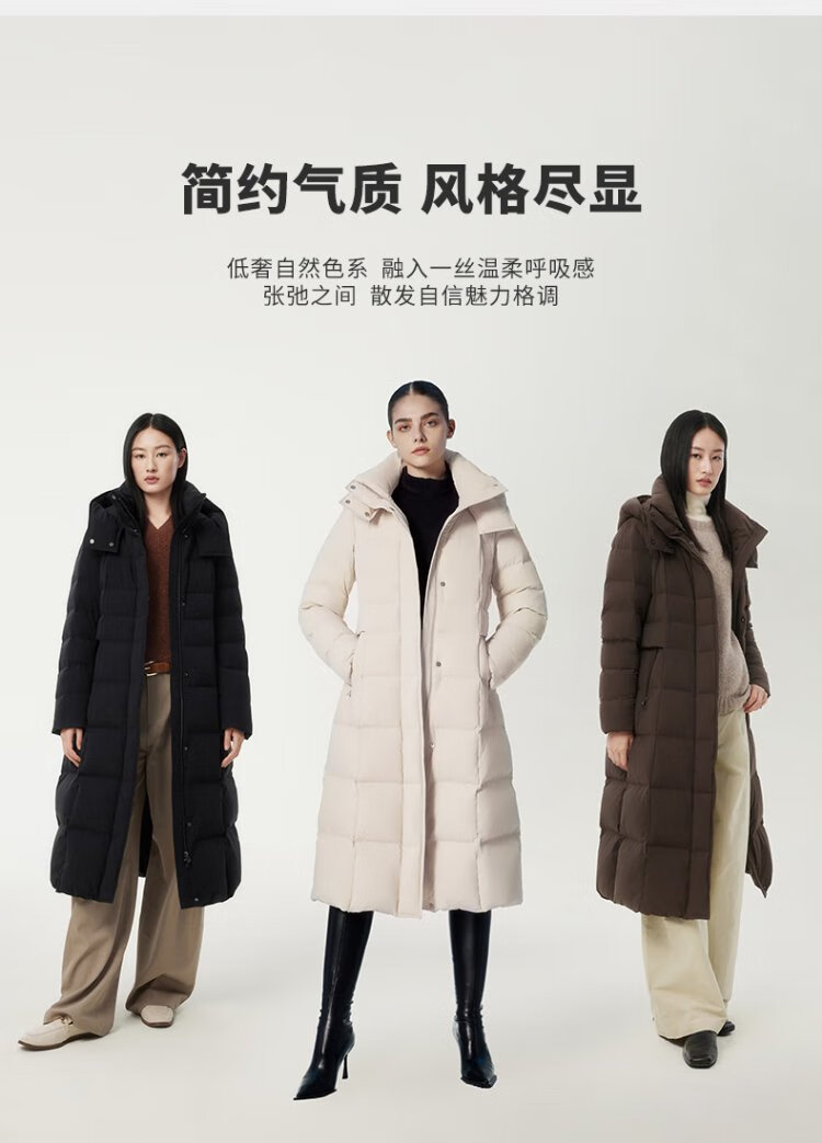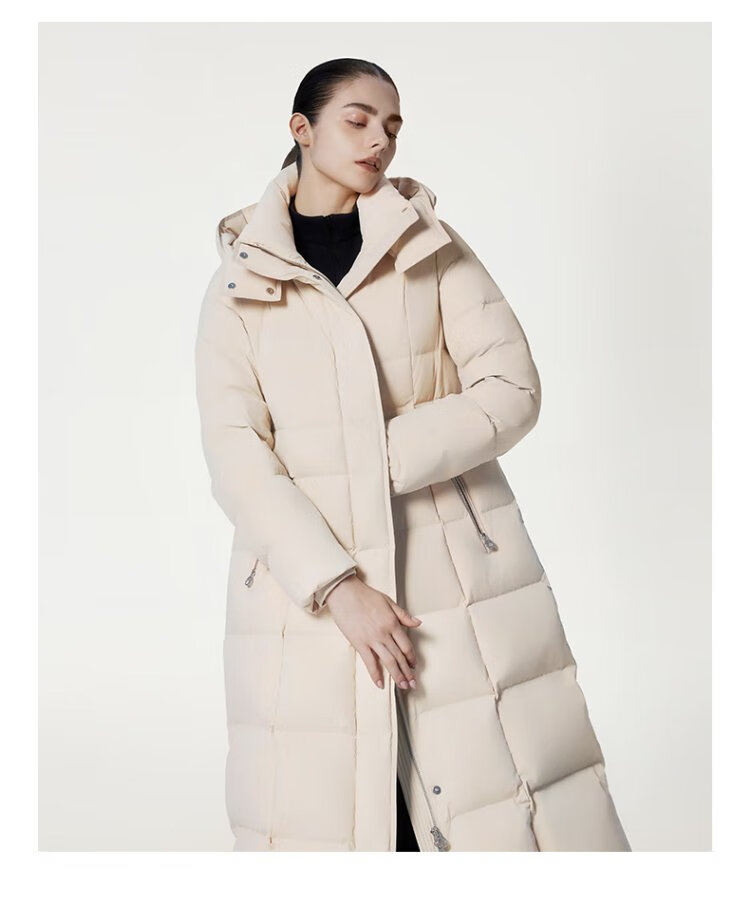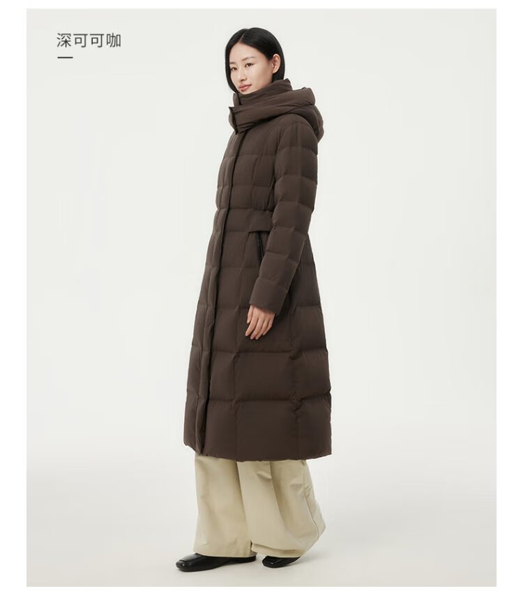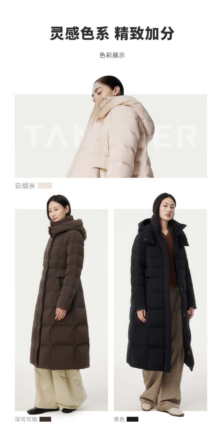 Tambor Down Jacket Women's Long Over-the-Knee Waist Hooded Autumn and Winter Business Warm Jacket 530872Z Black 180