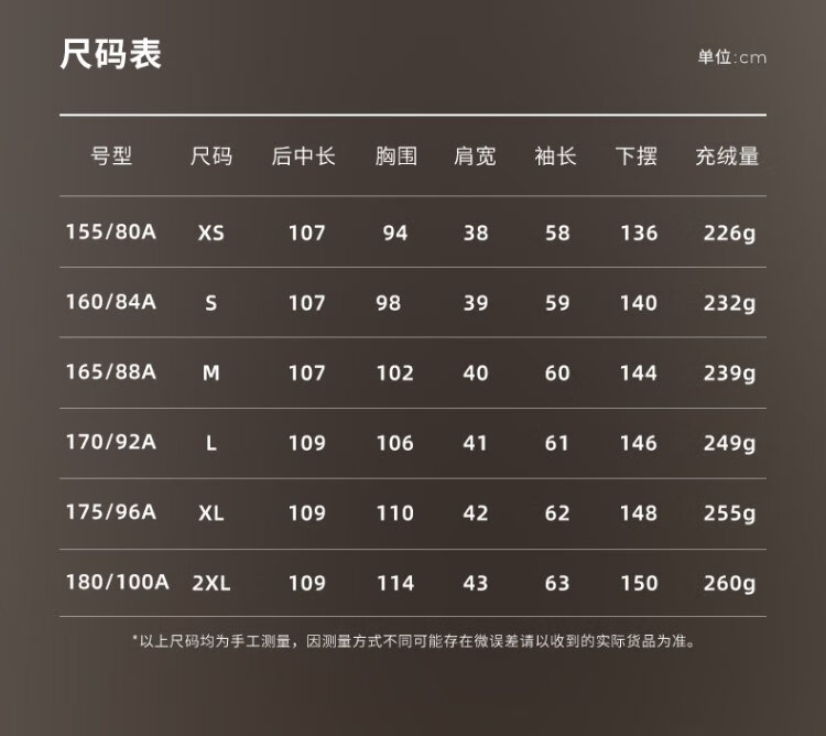 China (cm) 160-165/84-86 165-170 / 88-90 167-172 / 92-96 168-173 / 98-102 170-176 / 106-110