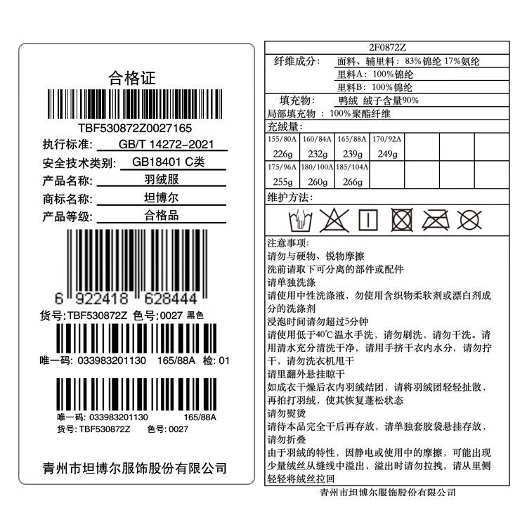 China (cm) 165 / 88-90 170 / 96-98 175 / 108-110 180 / 118-122 185 / 126-130
