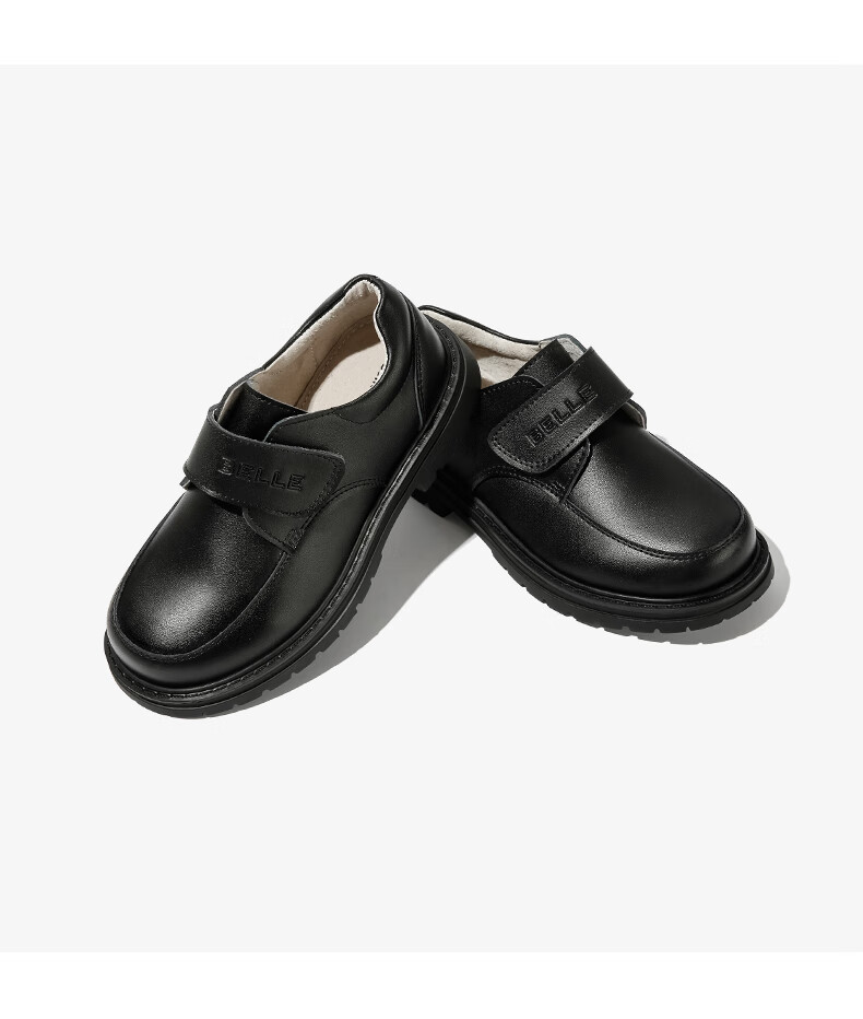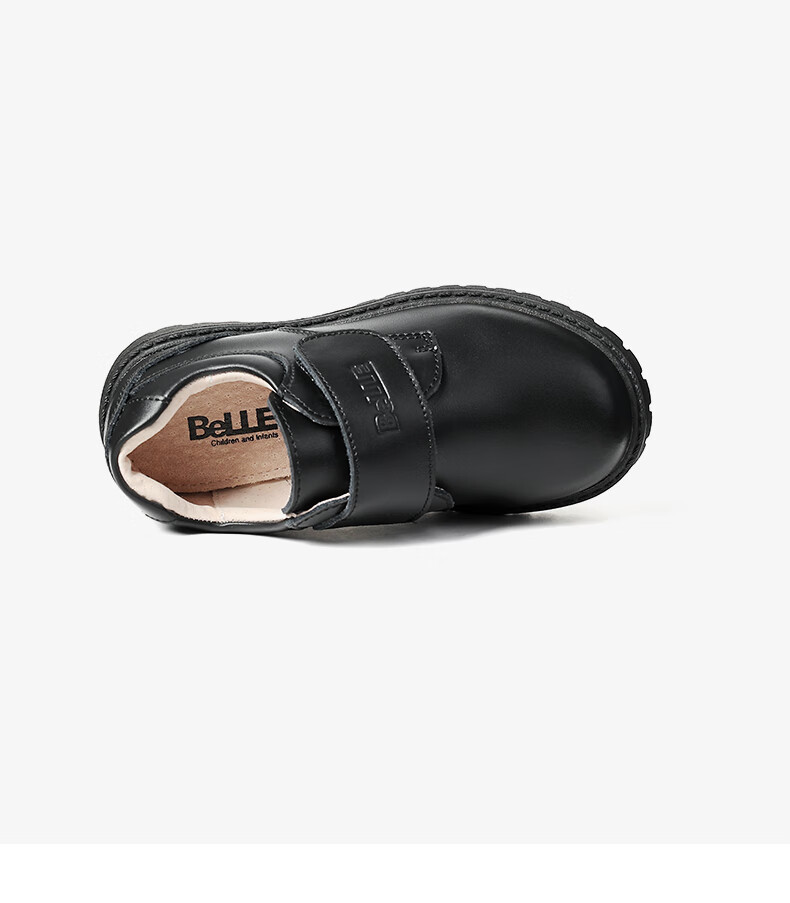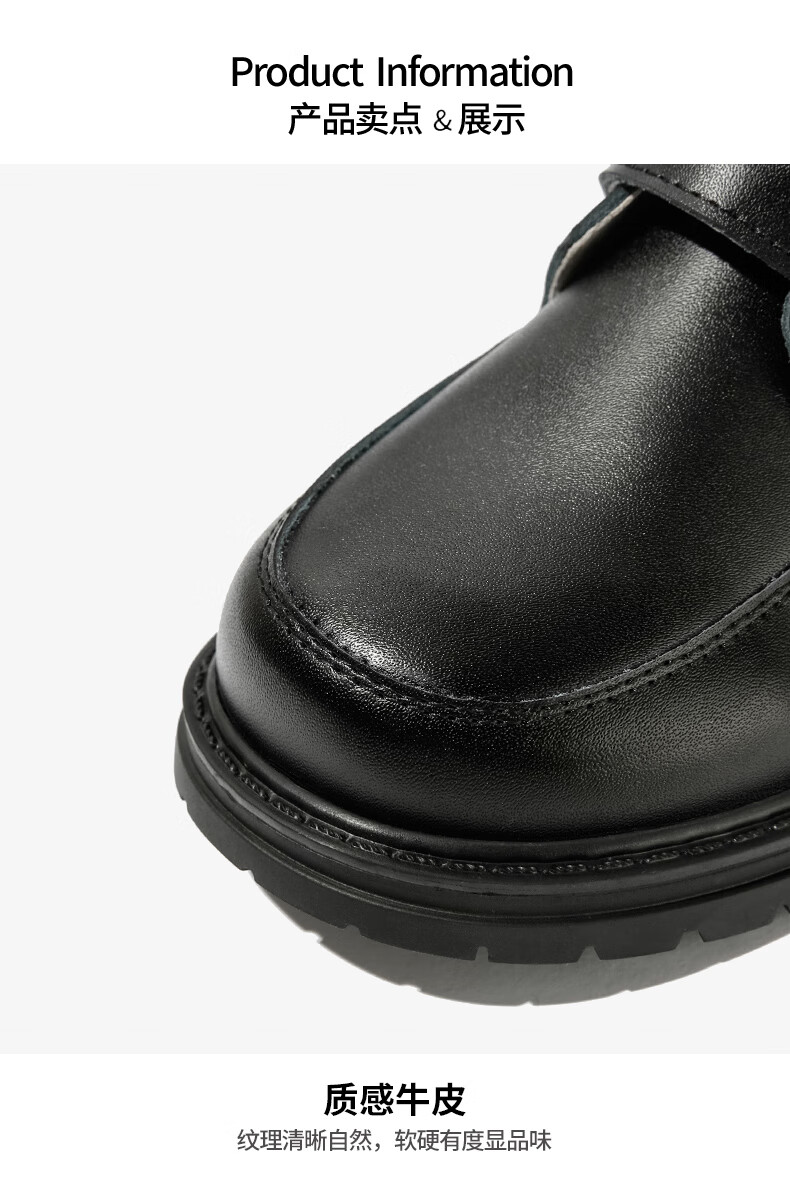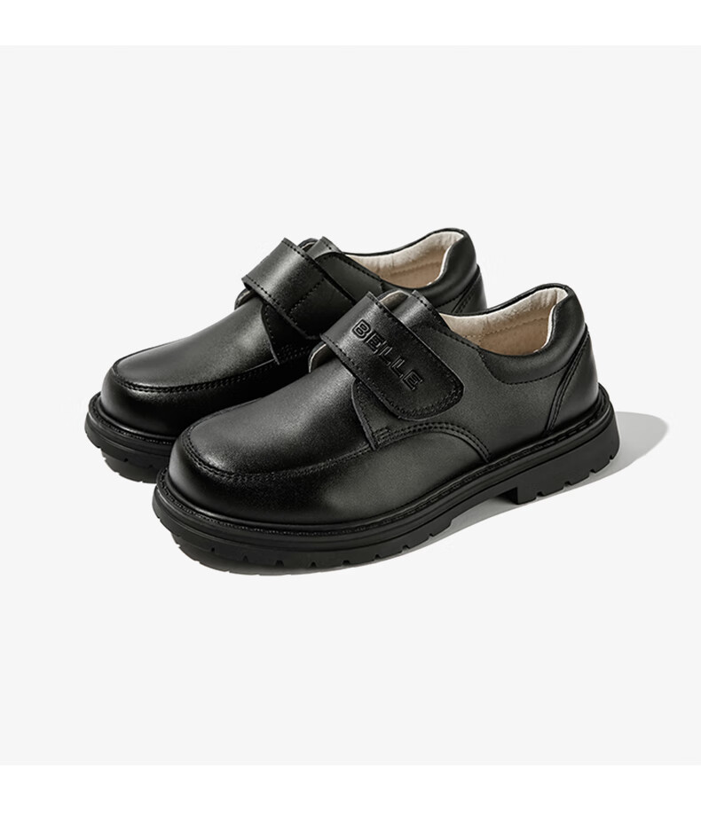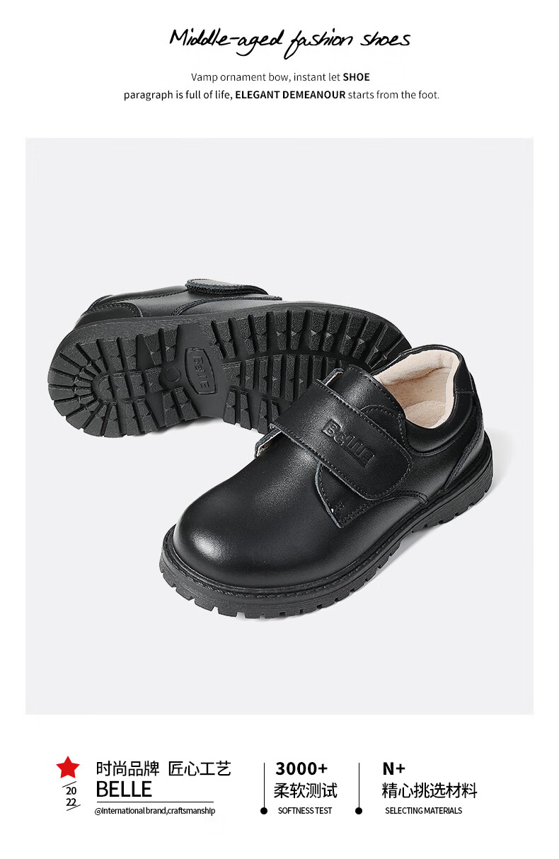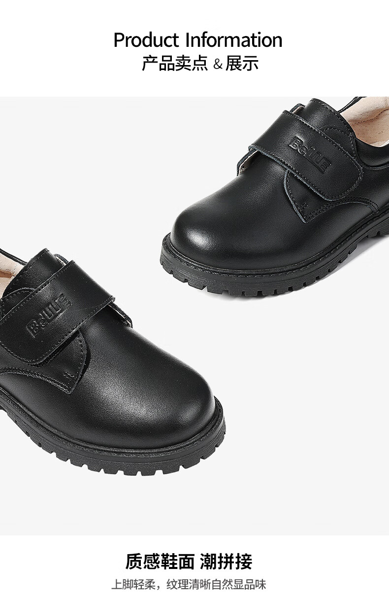 Belle children's shoes boys leather shoes cowhide student performance shoes boys performance shoes spring and autumn single shoes for middle and large children black 32