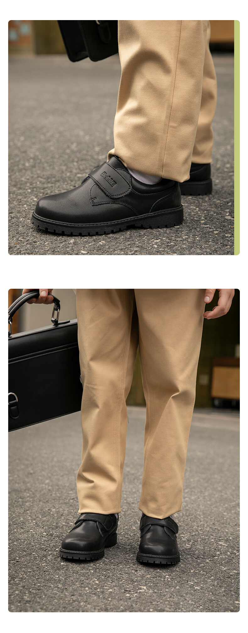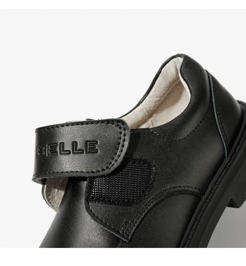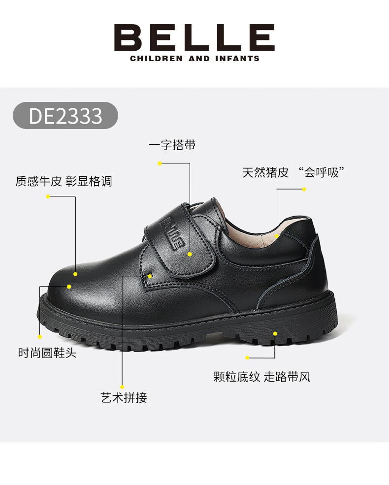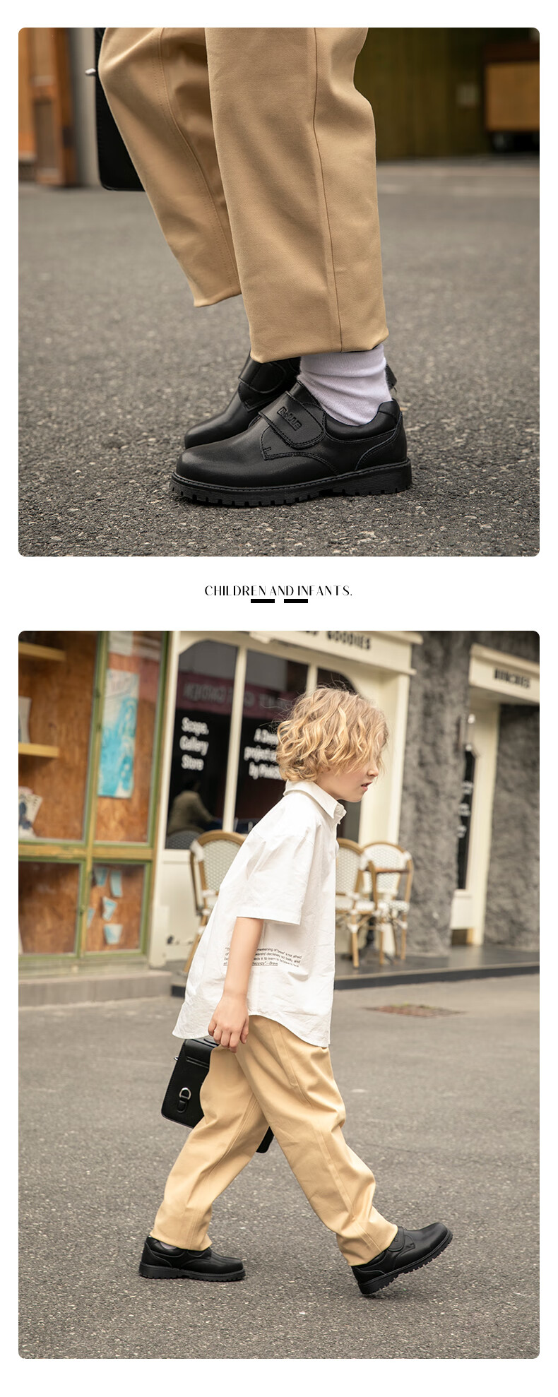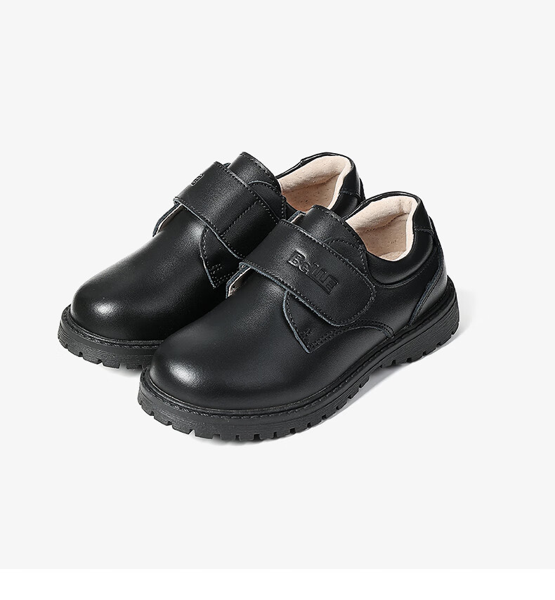 Belle children's shoes boys leather shoes cowhide student performance shoes boys performance shoes spring and autumn single shoes for middle and large children black 32