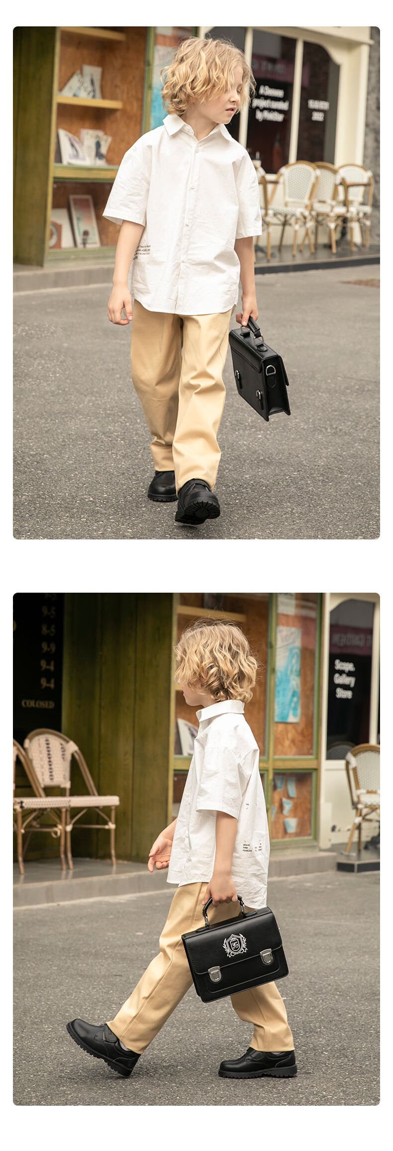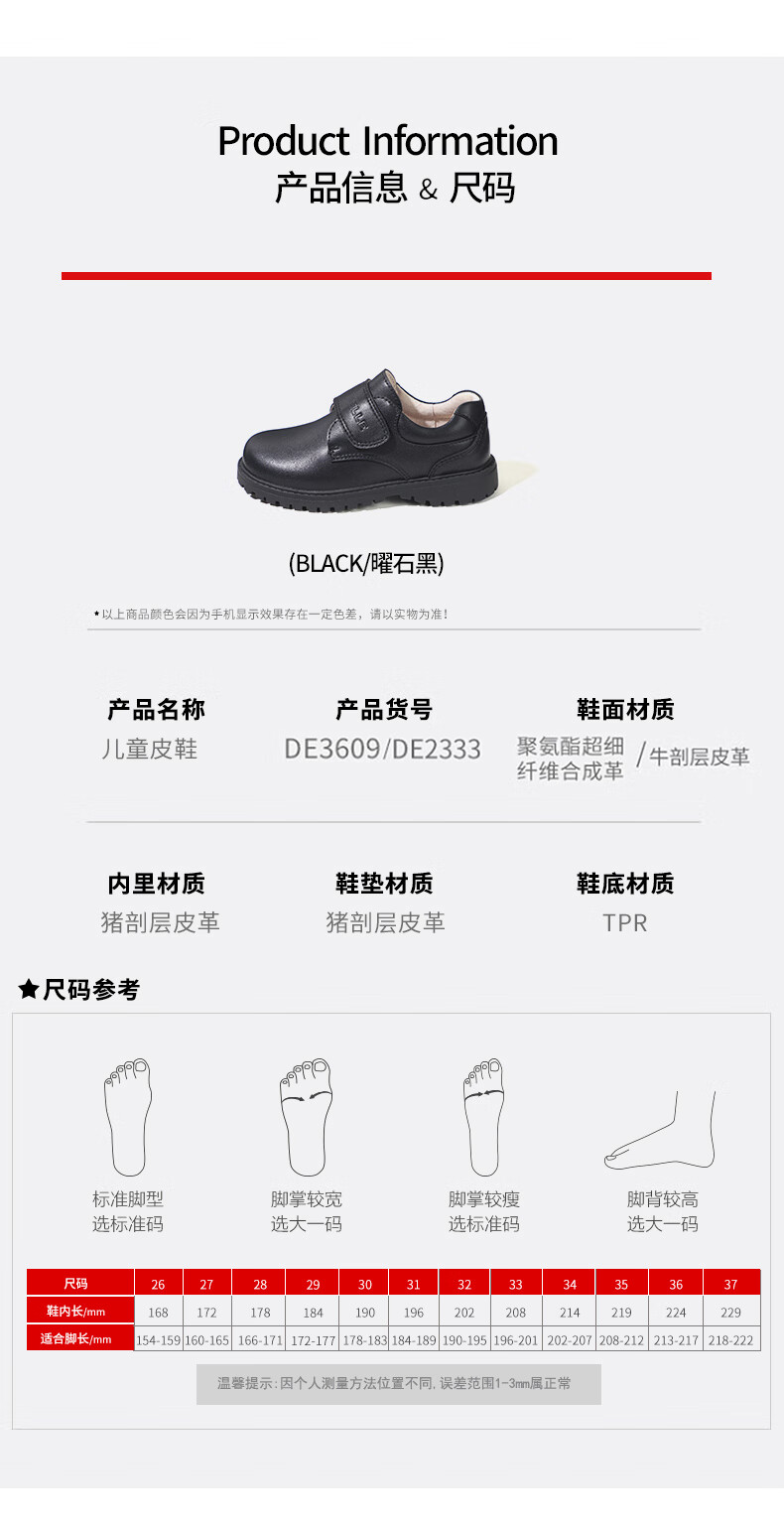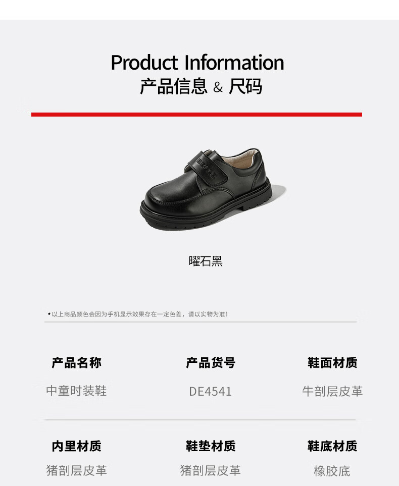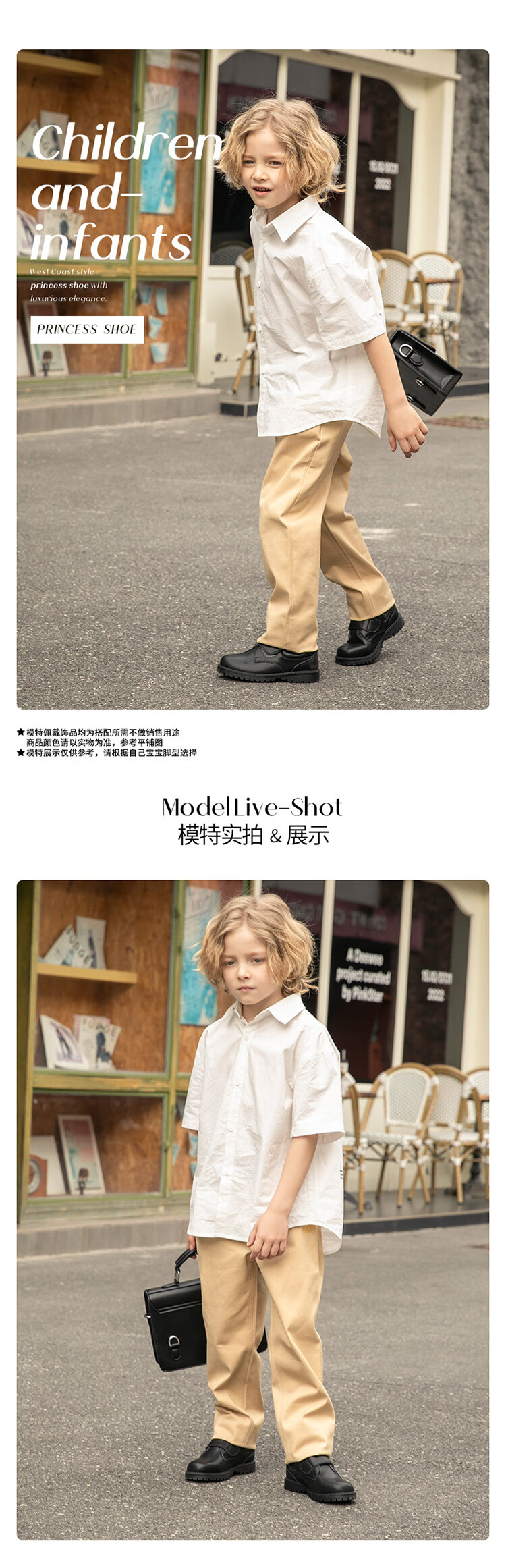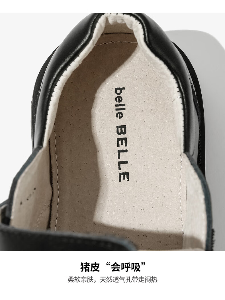 Belle children's shoes boys leather shoes cowhide student performance shoes boys performance shoes spring and autumn single shoes for middle and large children black 32