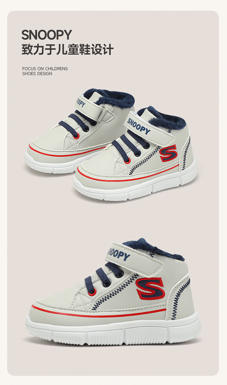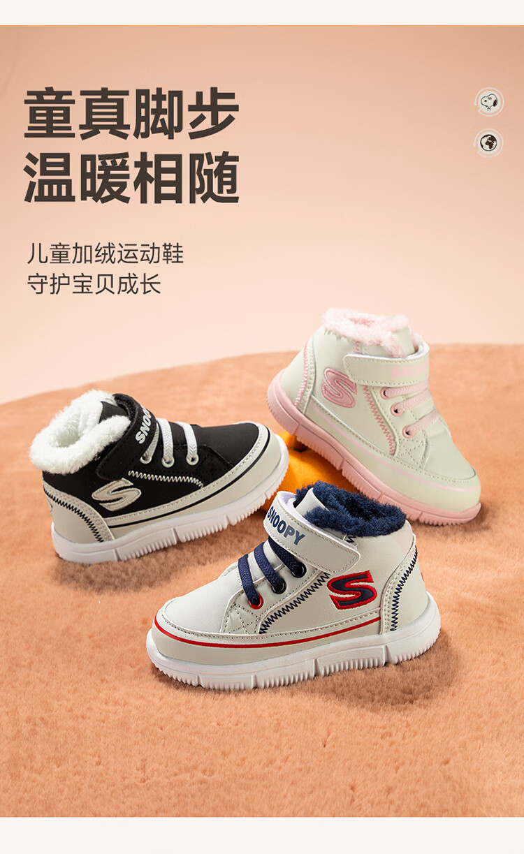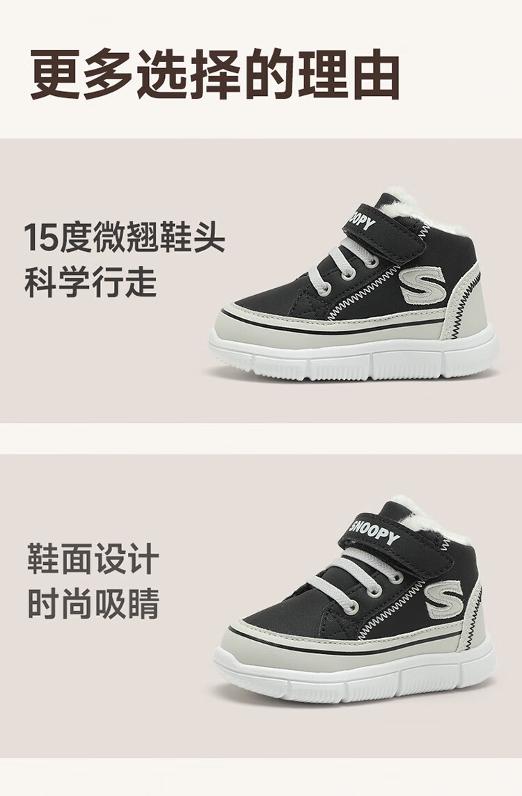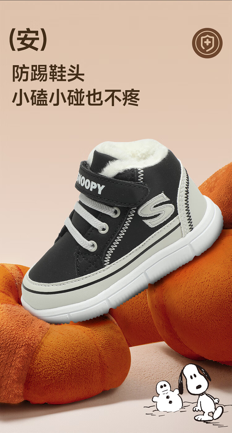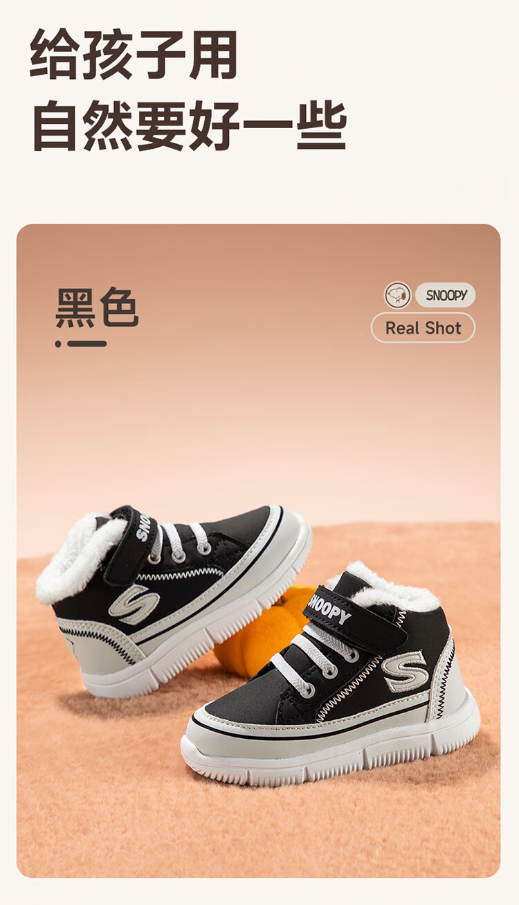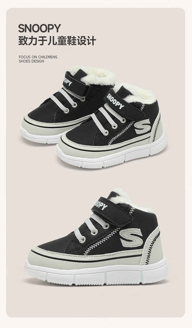 SNOOPY Snoopy children's shoes children's cotton shoes boys and girls winter plus velvet large cotton outdoor high-top sports shoes 7940 black 28