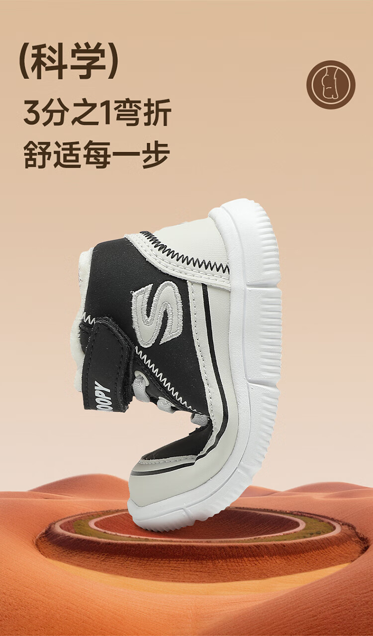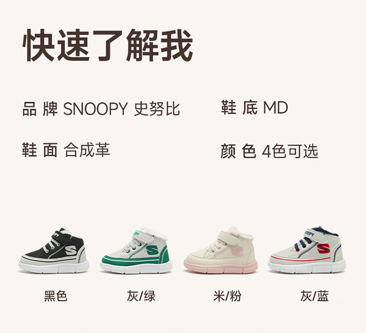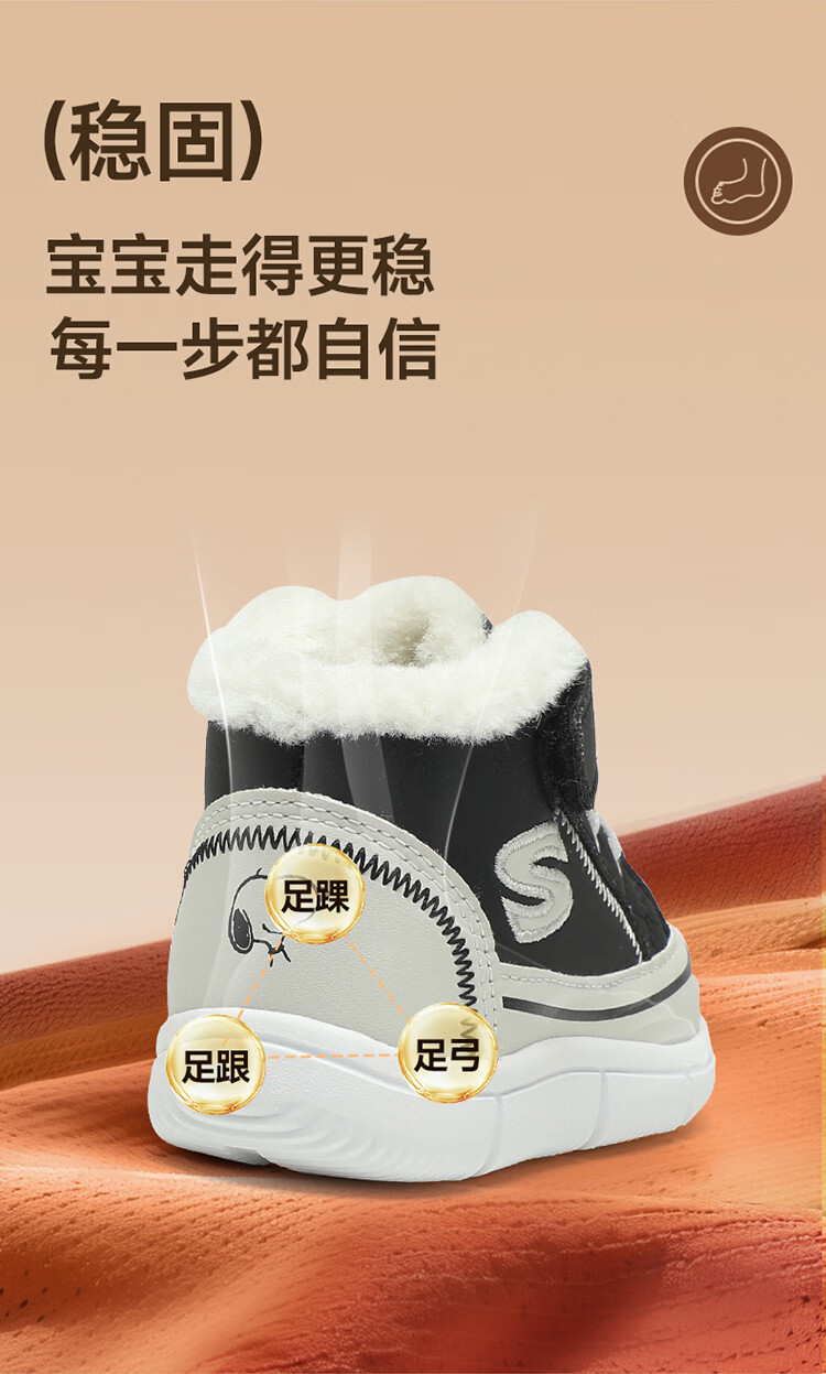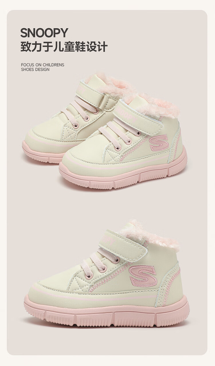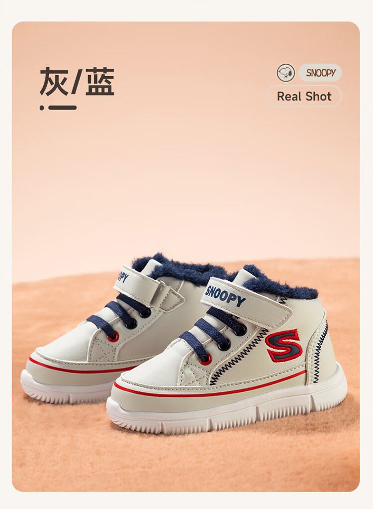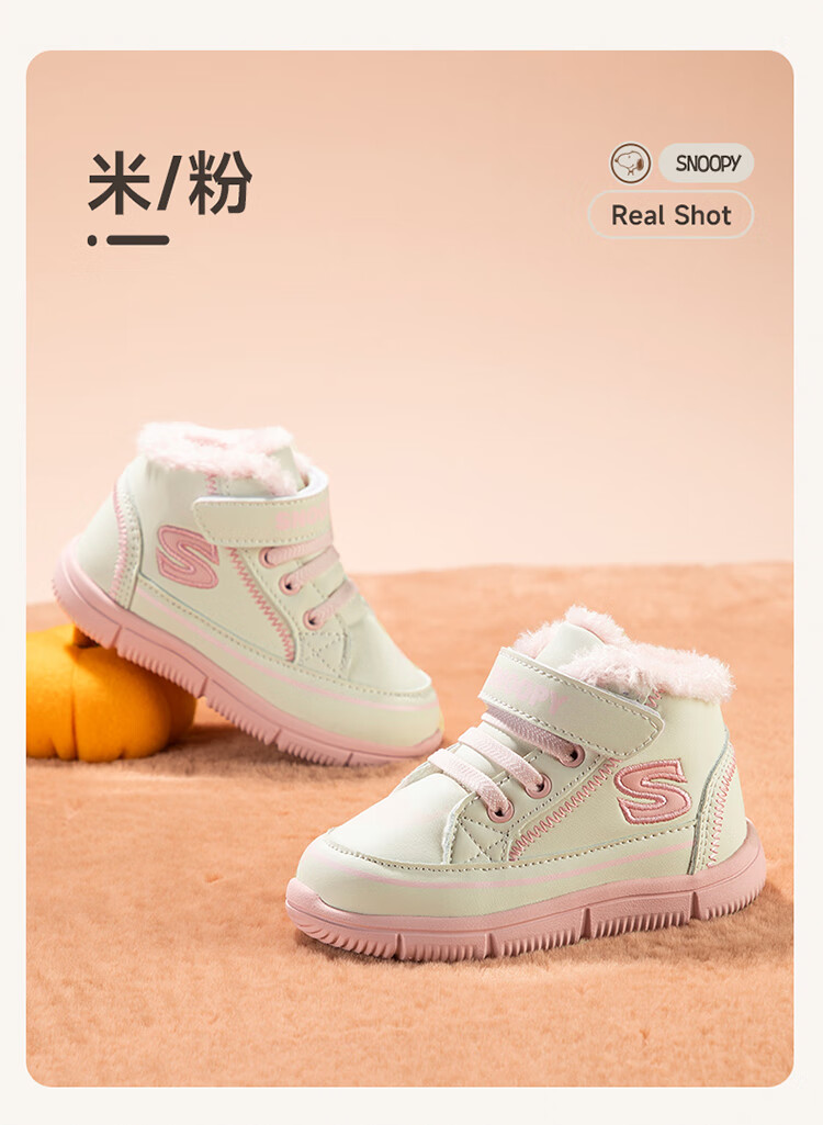 SNOOPY Snoopy children's shoes children's cotton shoes boys and girls winter plus velvet large cotton outdoor high-top sports shoes 7940 black 28