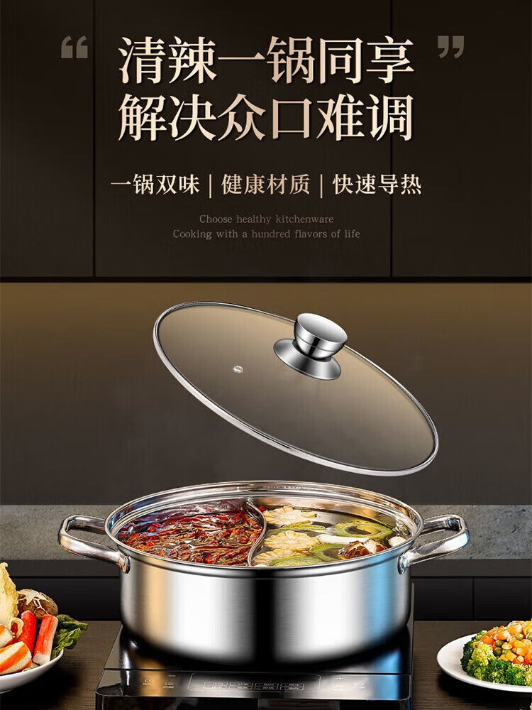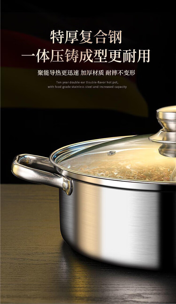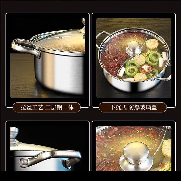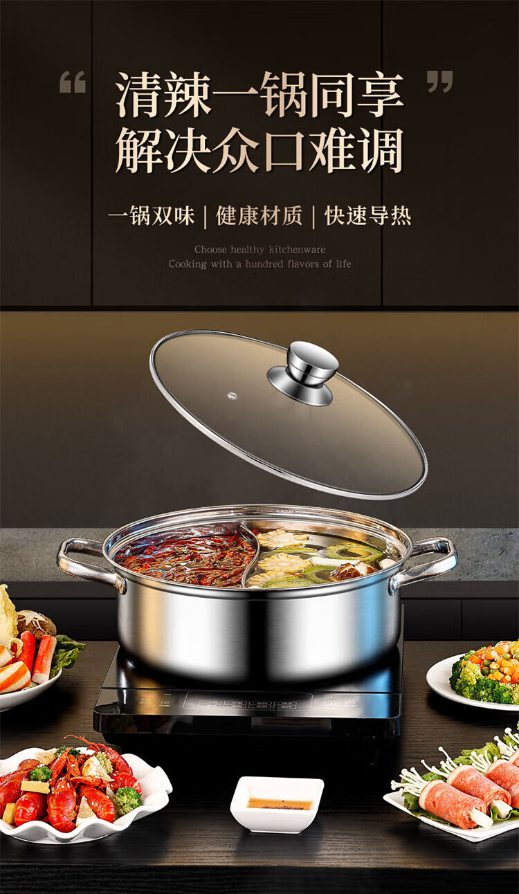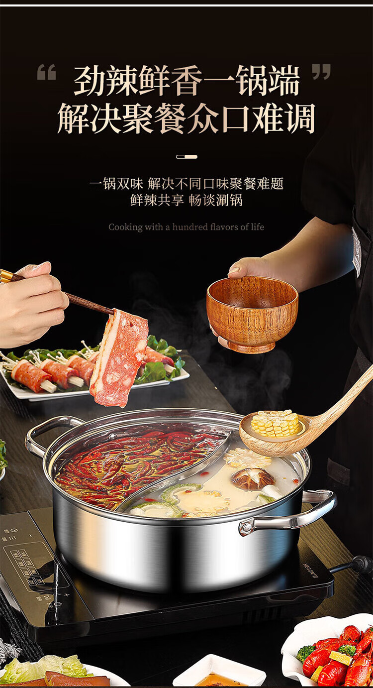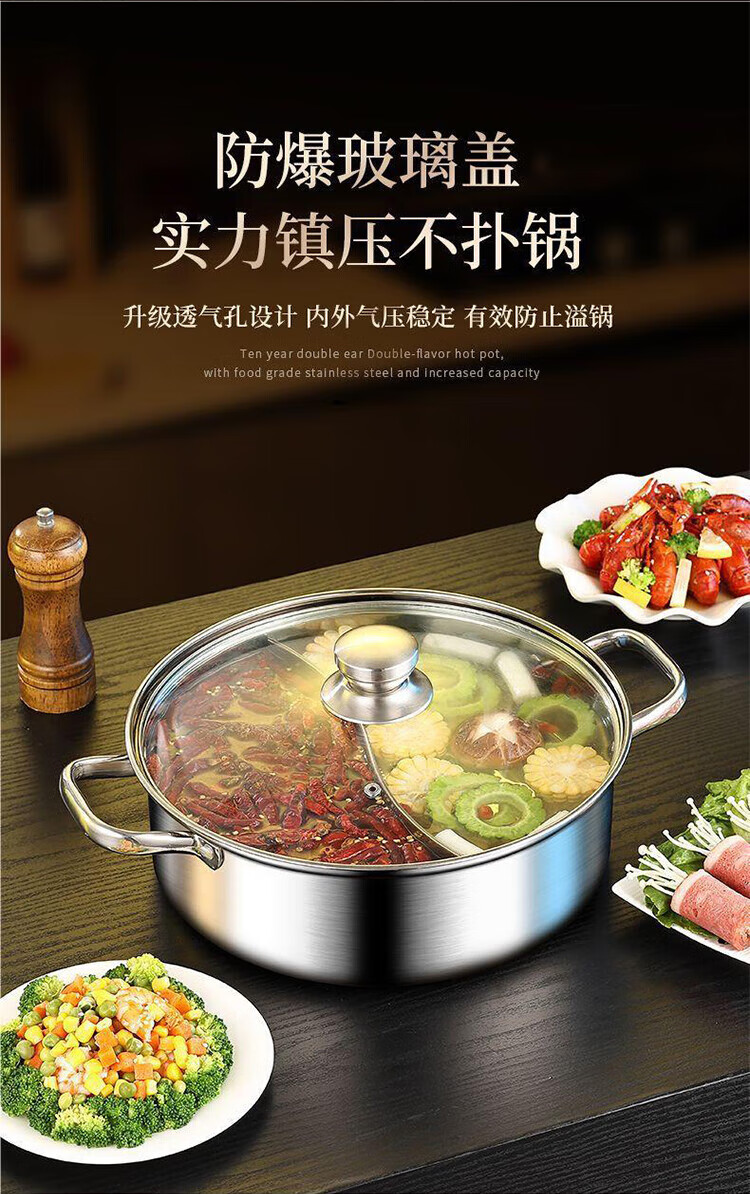 Kitchen plan thickened bottom 304 stainless steel mandarin duck pot large capacity soup pot induction cooker gas universal hot pot special pot