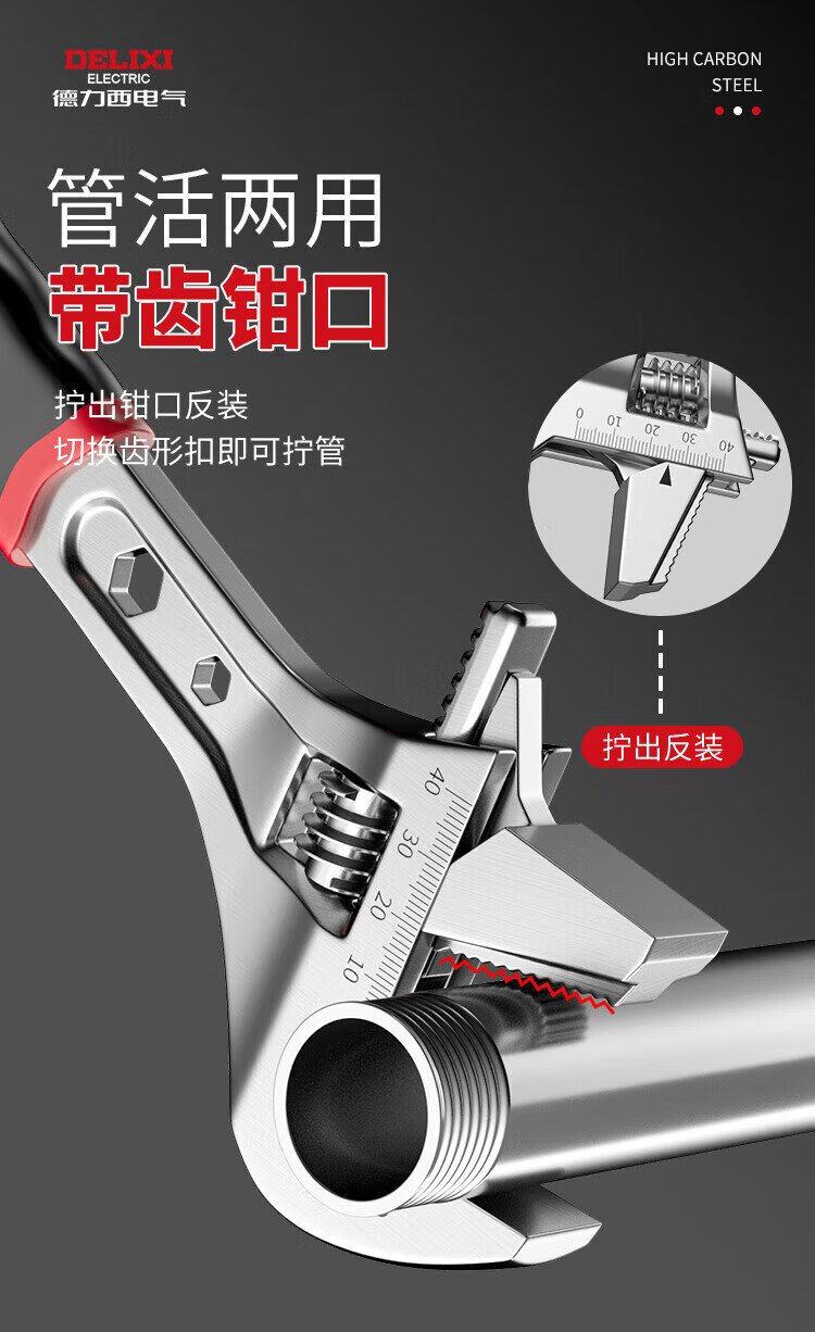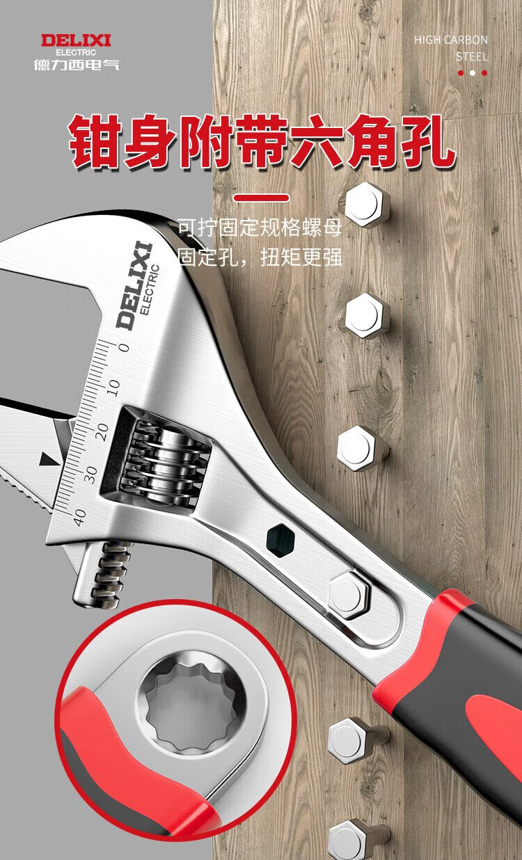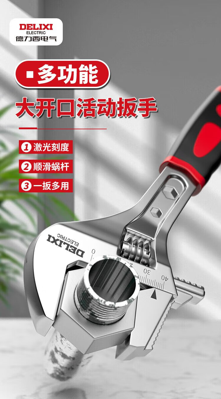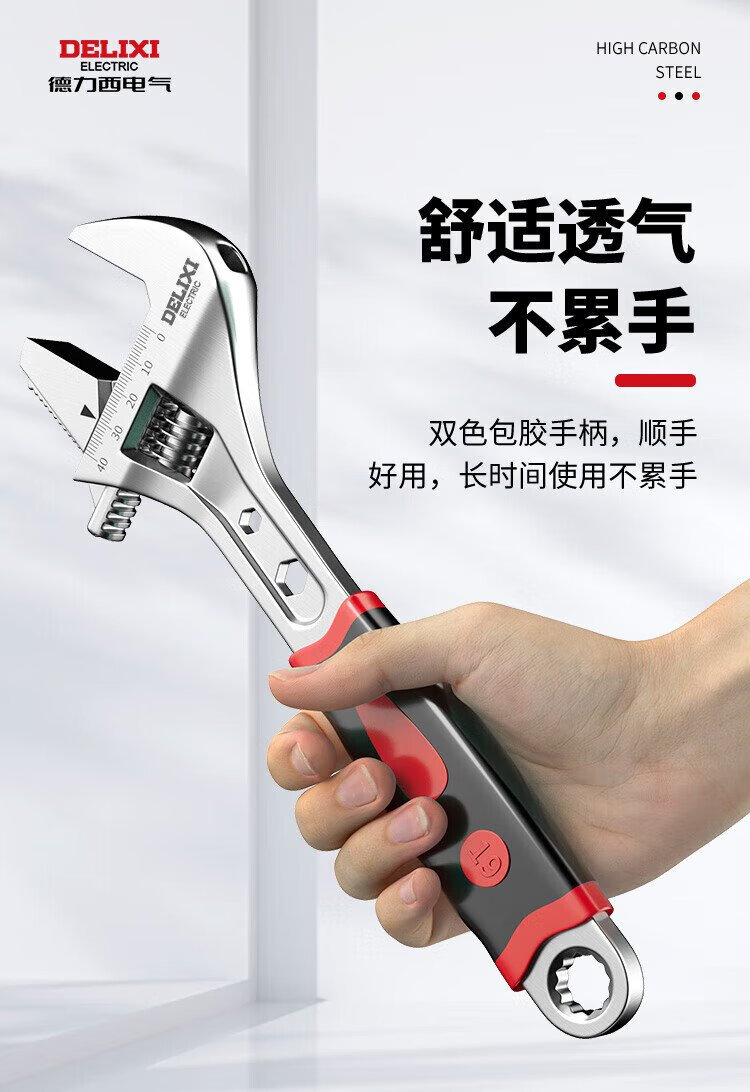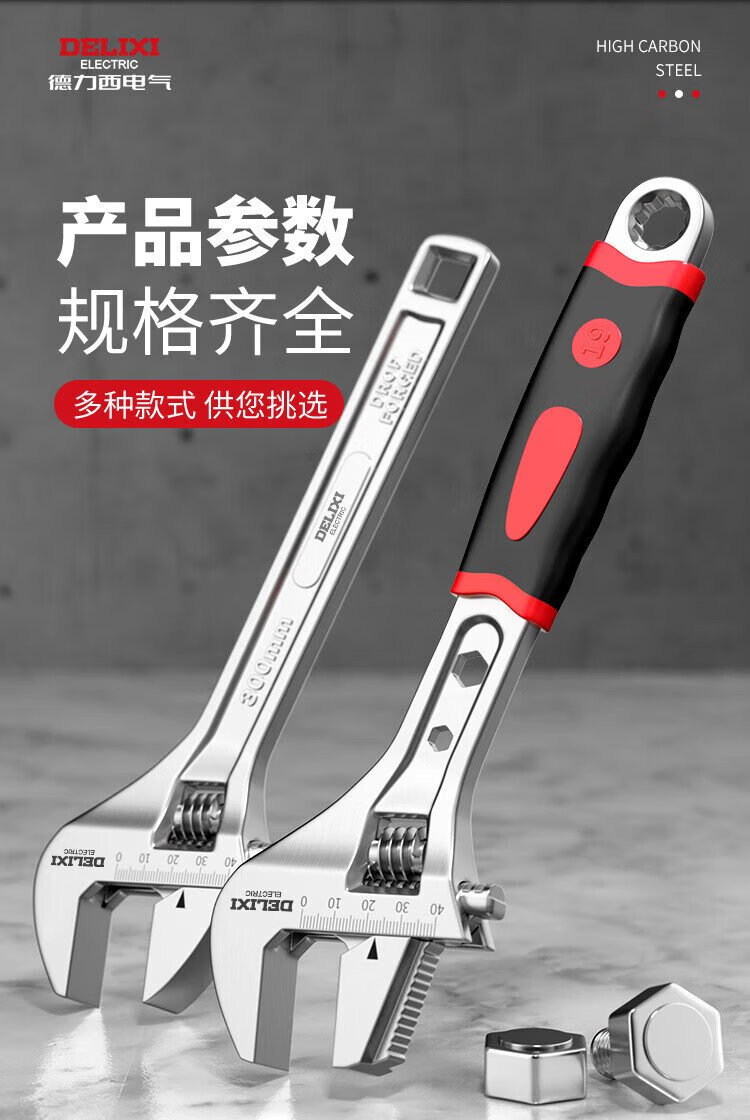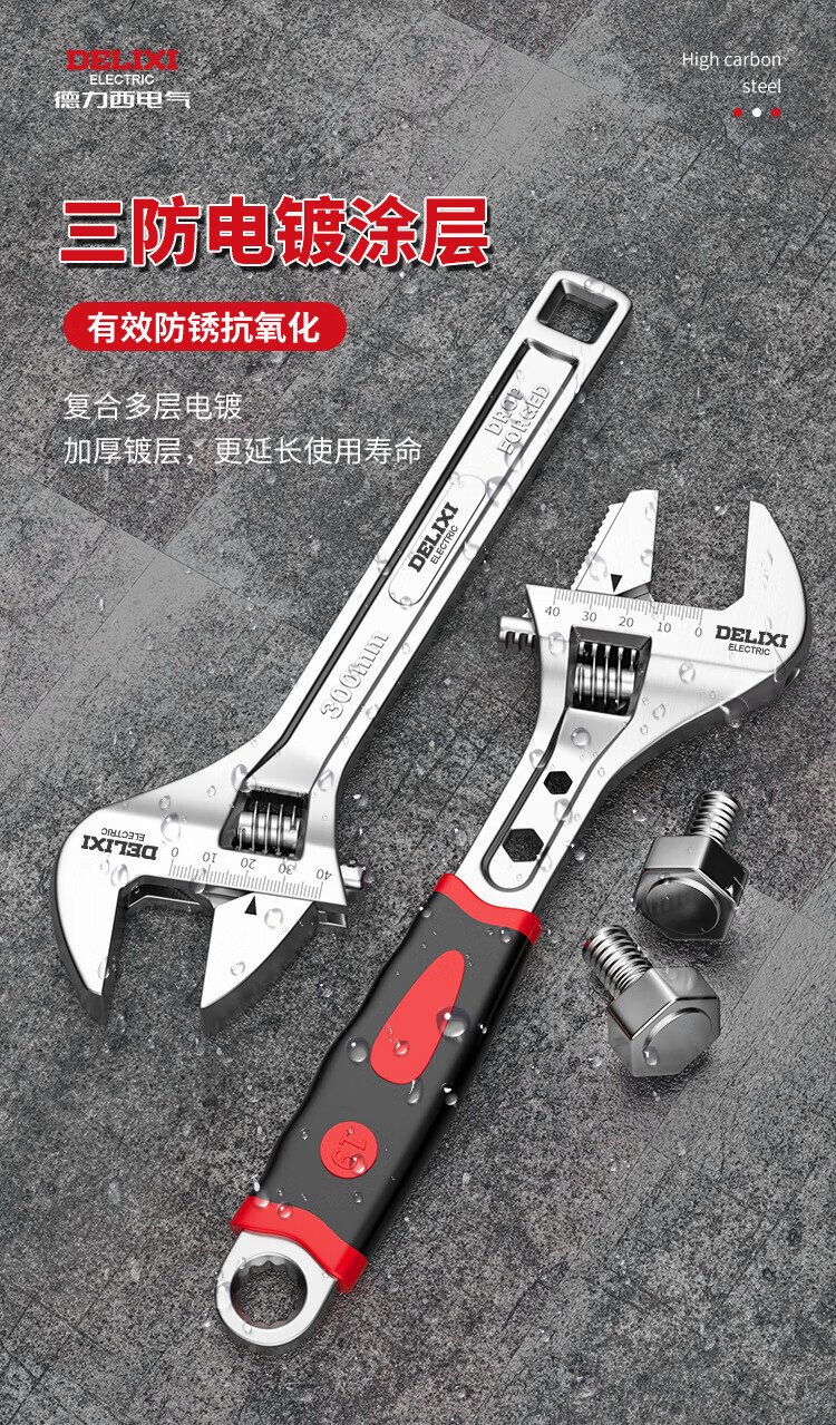 DELIXI ELECTRIC adjustable wrench multi-functional large open wrench household tools live mouth adjustable wrench 18 inches