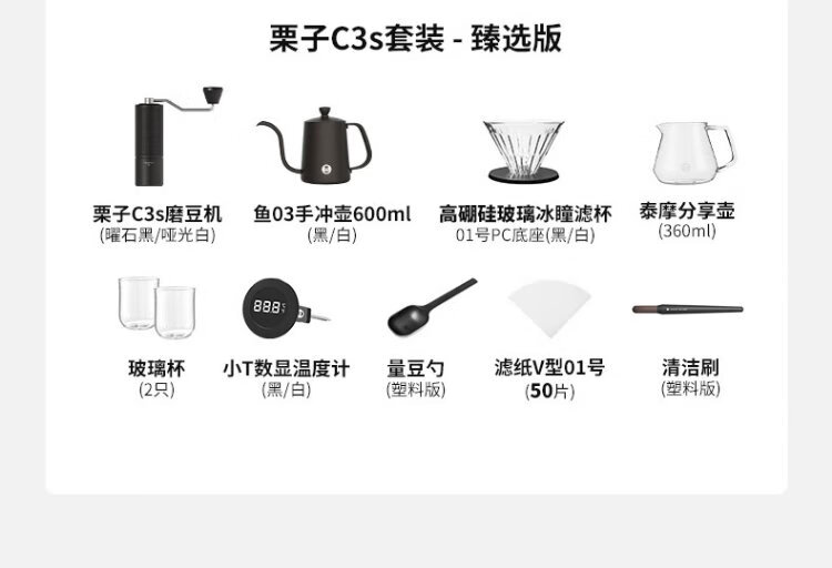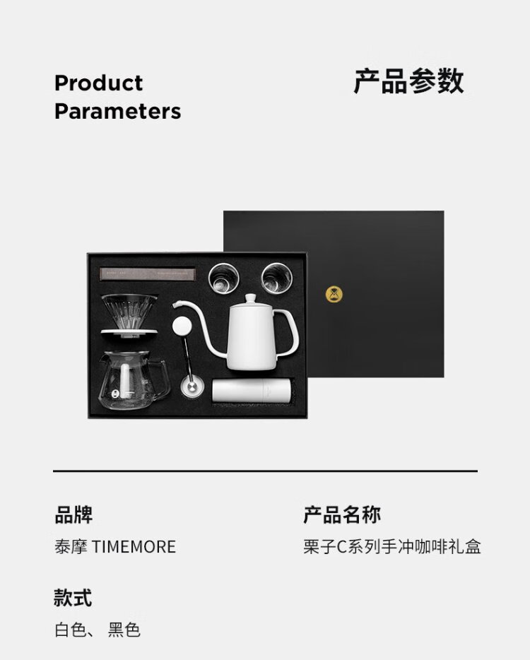 Taimo Chestnut C3S hand-brewed coffee pot set, coffee grinder, gift box, Mid-Autumn Festival gift, wedding gift