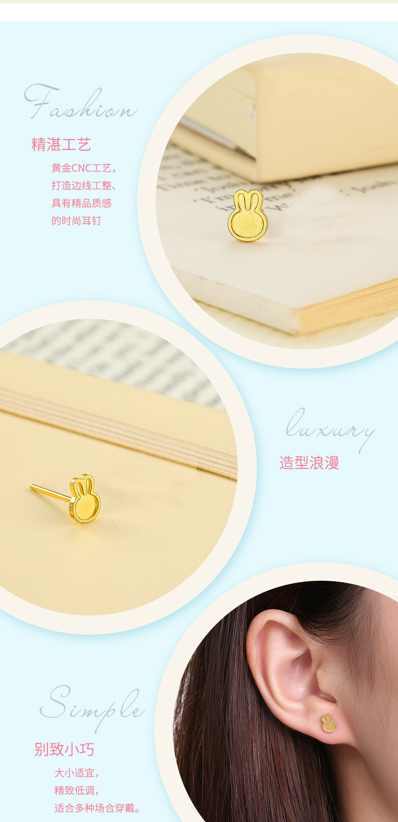 Trendy Acer Fun Bunny Bow Pure Gold Gold Earrings Women's Earrings for Girlfriend Birthday Gift Price Approximately 1.25g
