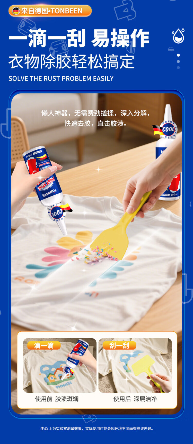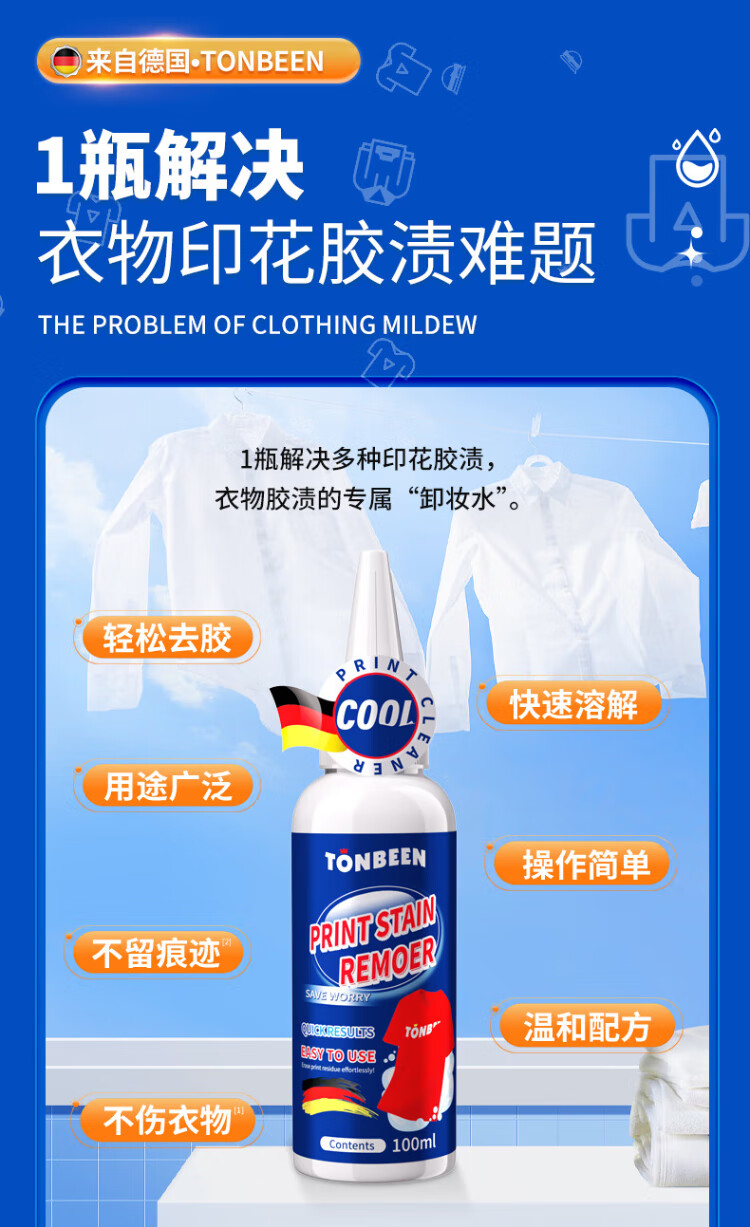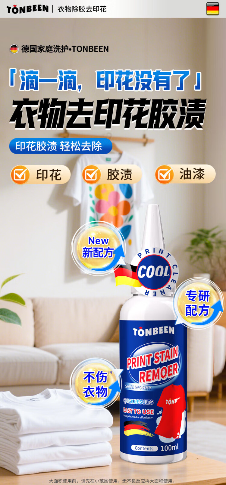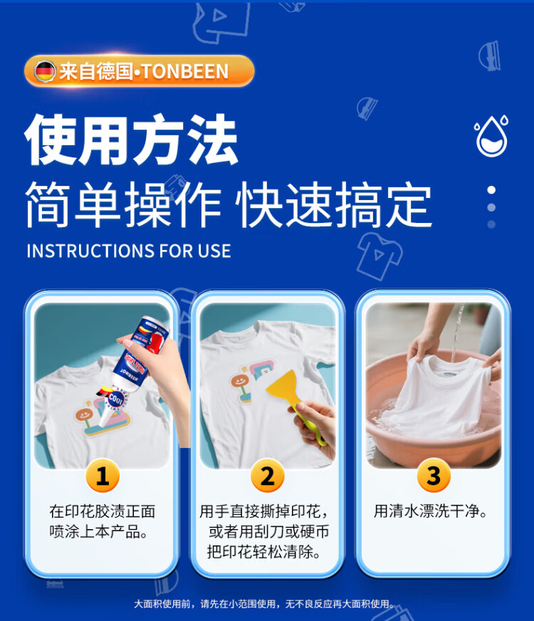 TONBEEN clothing printing remover logo letter down jacket glue remover removes clothing offset printing word trademark heat transfer 100mL