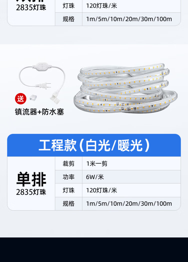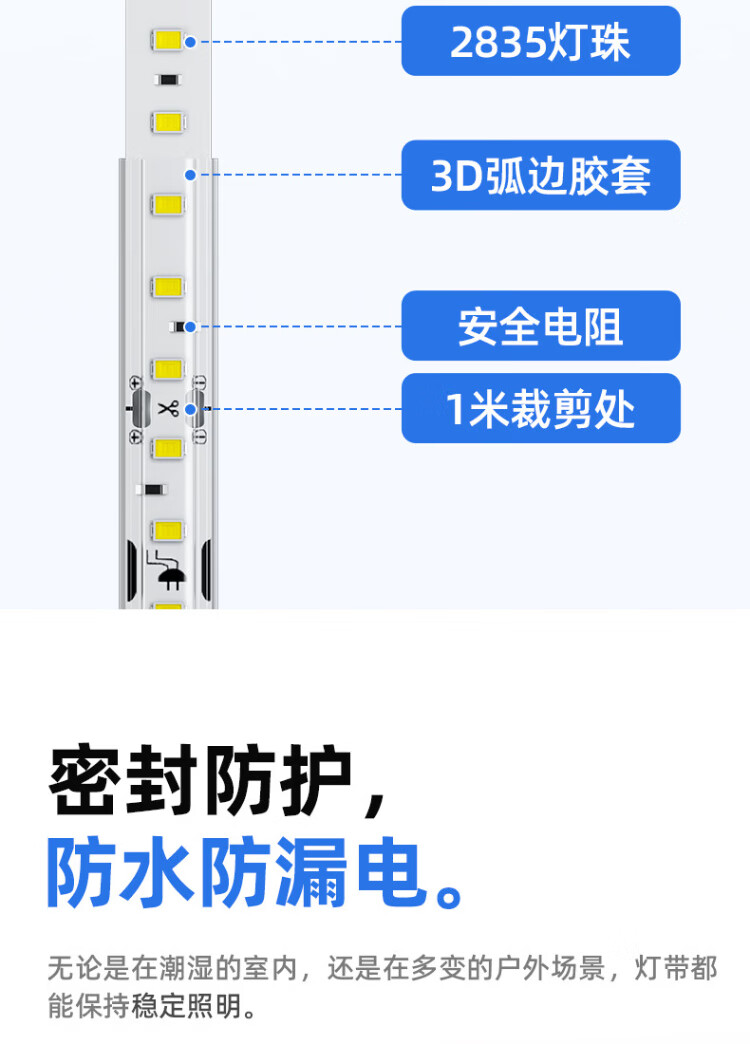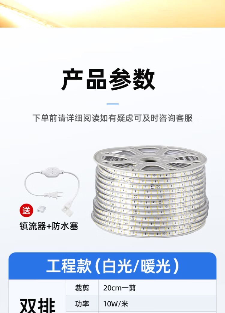Deyan led light strip 220v high voltage outdoor waterproof light hotel villa project ultra-bright strip decorative linear light outdoor lighting 5 meters package-white light 10W-120 beads/meter