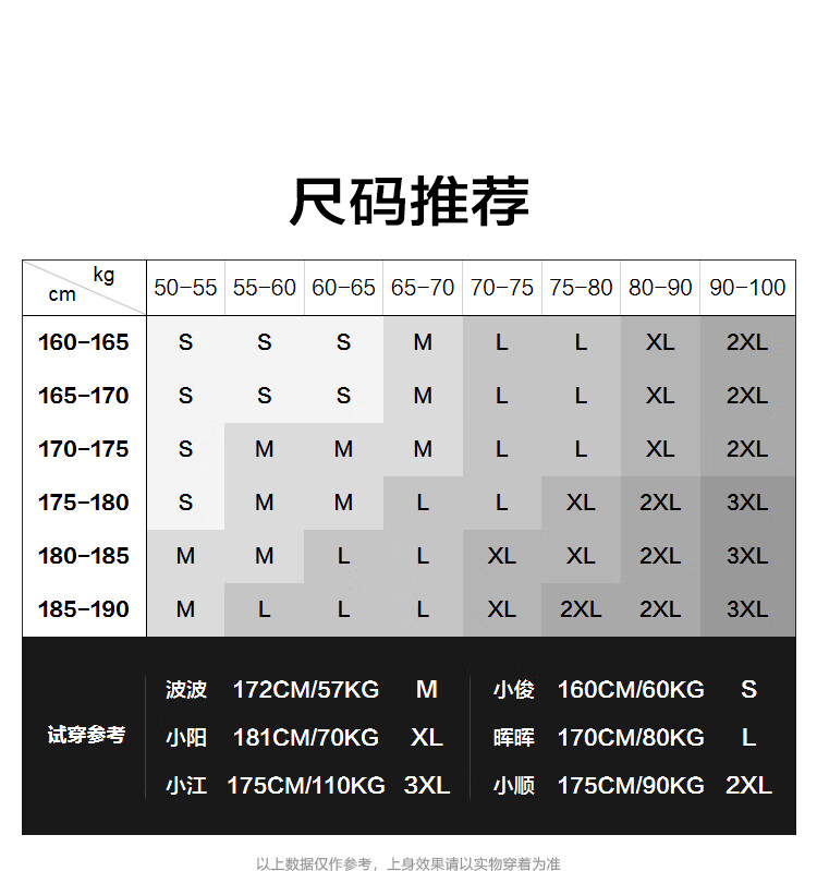 China (cm) 165 / 88-90 170 / 96-98 175 / 108-110 180 / 118-122 185 / 126-130