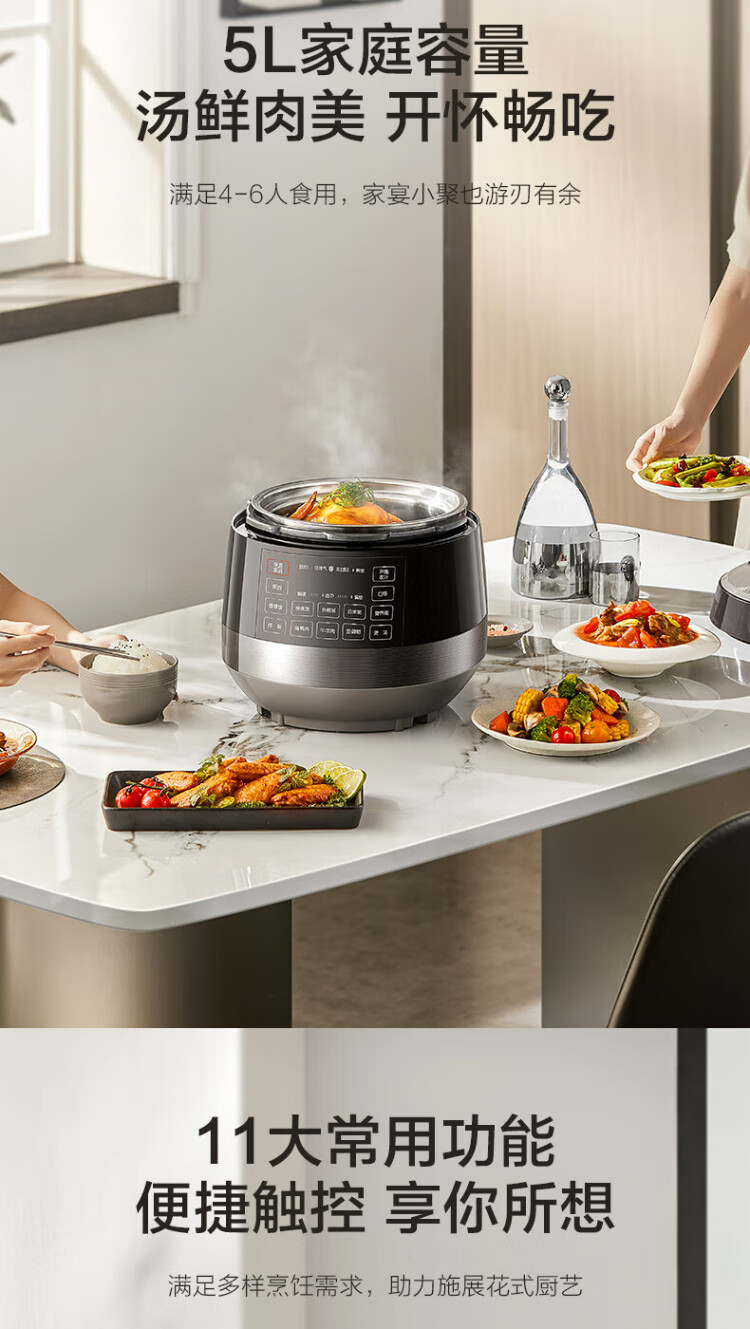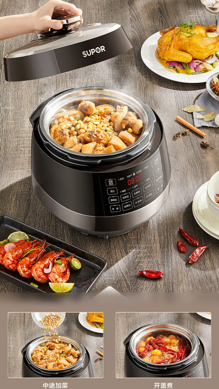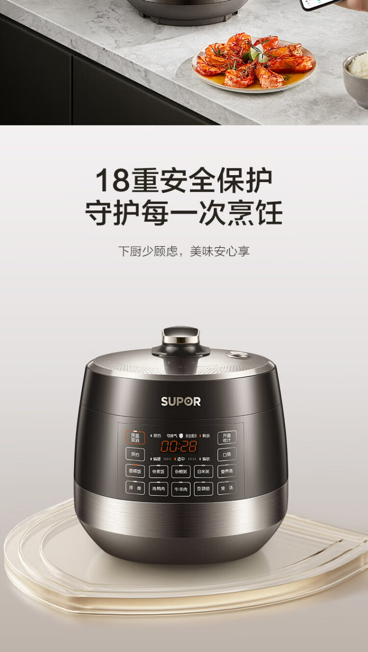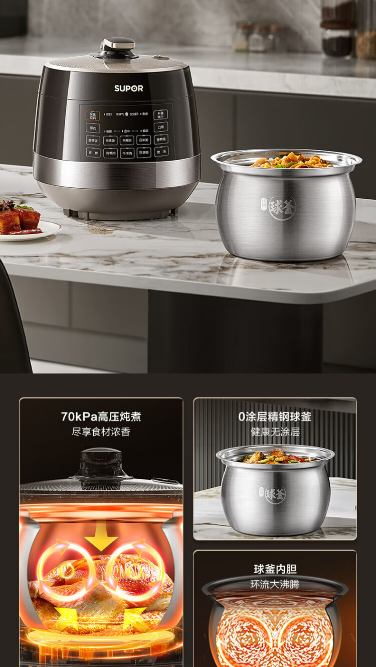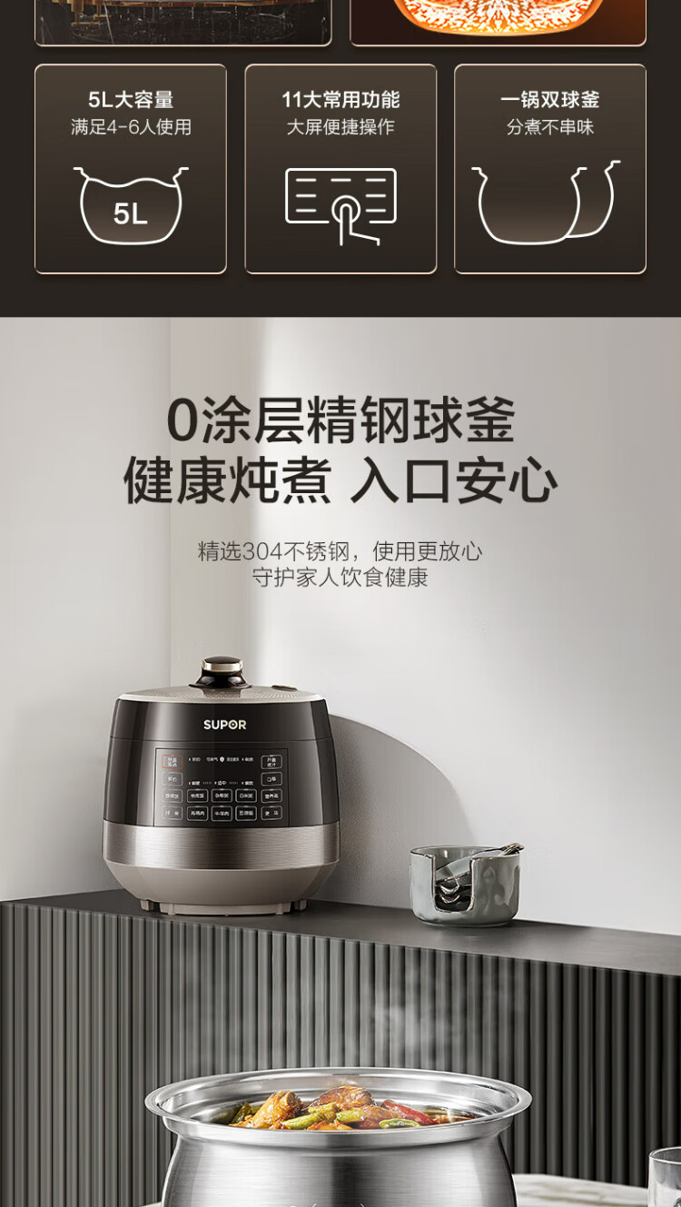 SUPOR national subsidy 0-coated spherical kettle electric pressure cooker 5L double tank fully automatic intelligent reservation touch control SY-50YC5011Q rice cooker pressure cooker for 4-6 people