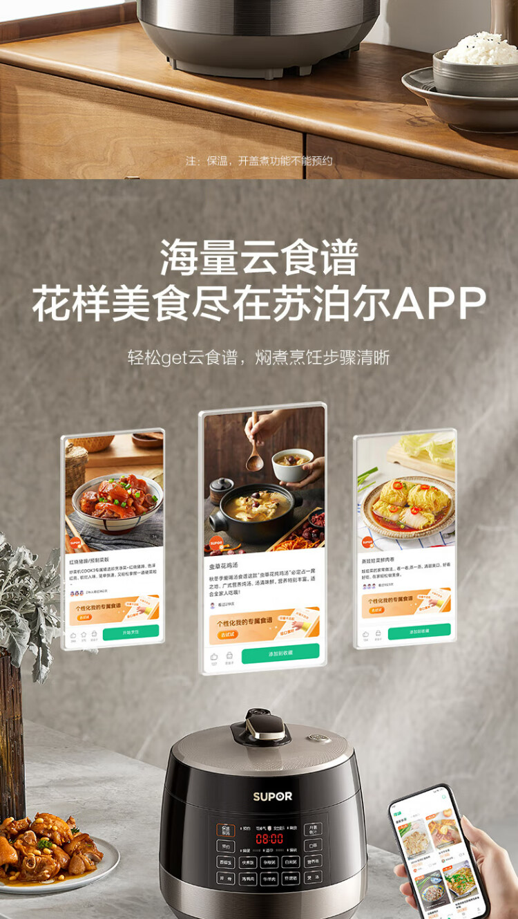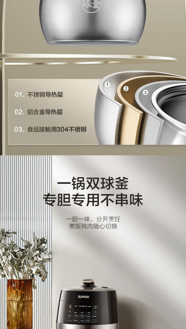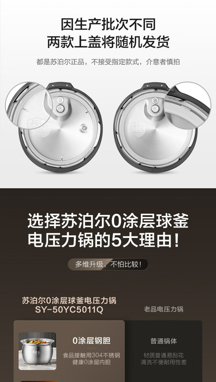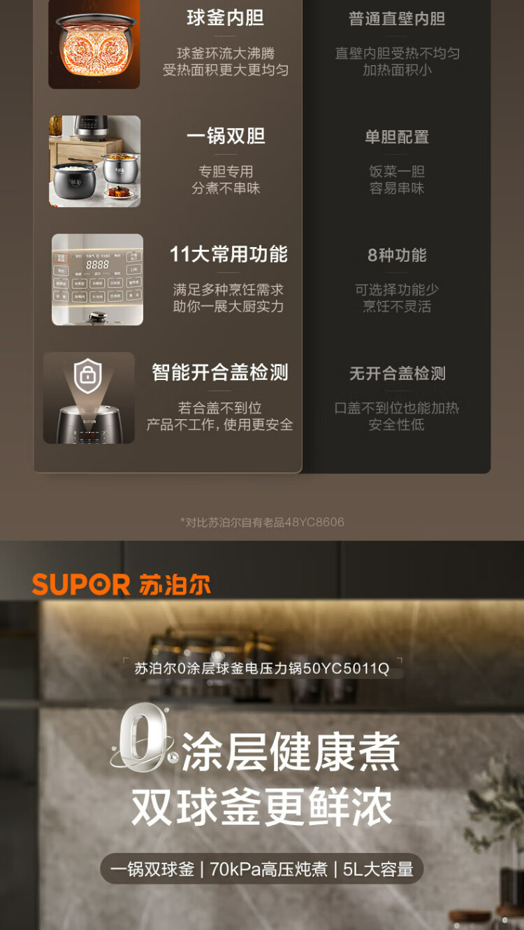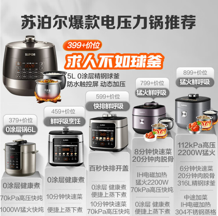 SUPOR national subsidy 0-coated spherical kettle electric pressure cooker 5L double tank fully automatic intelligent reservation touch control SY-50YC5011Q rice cooker pressure cooker for 4-6 people