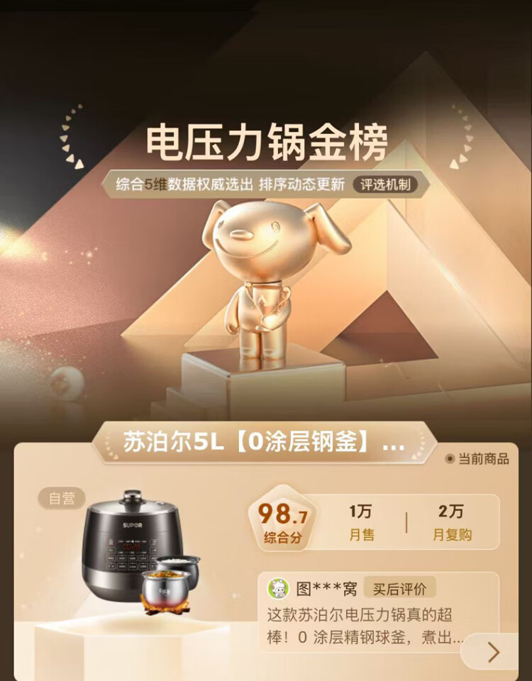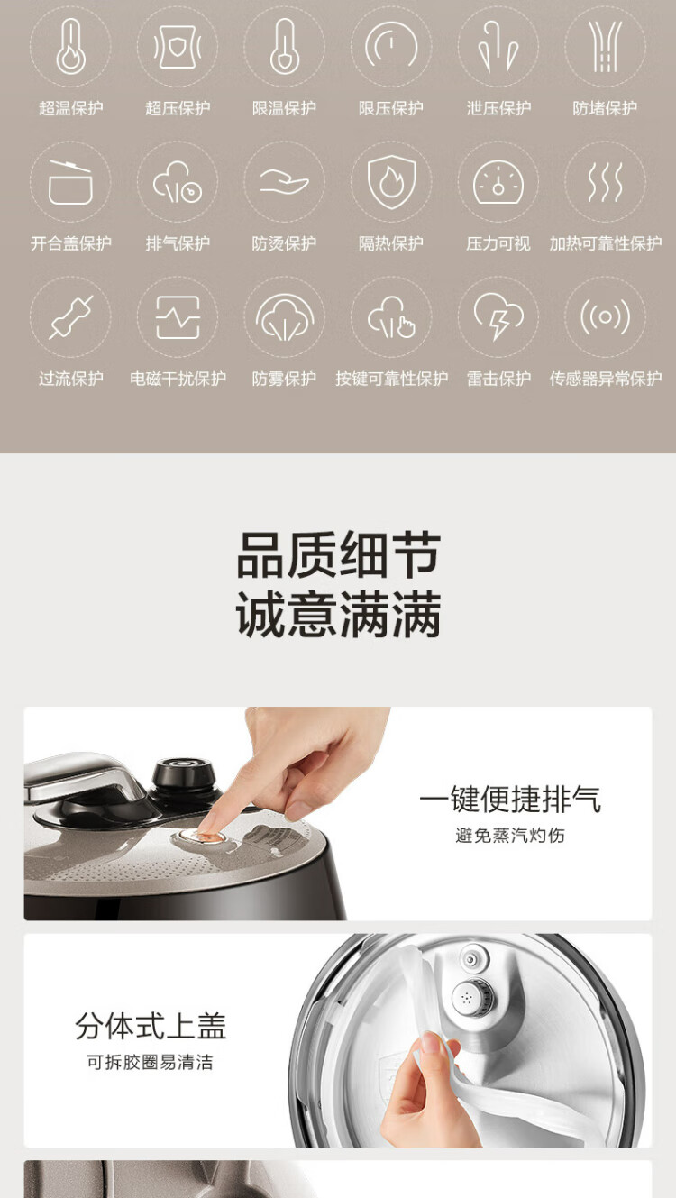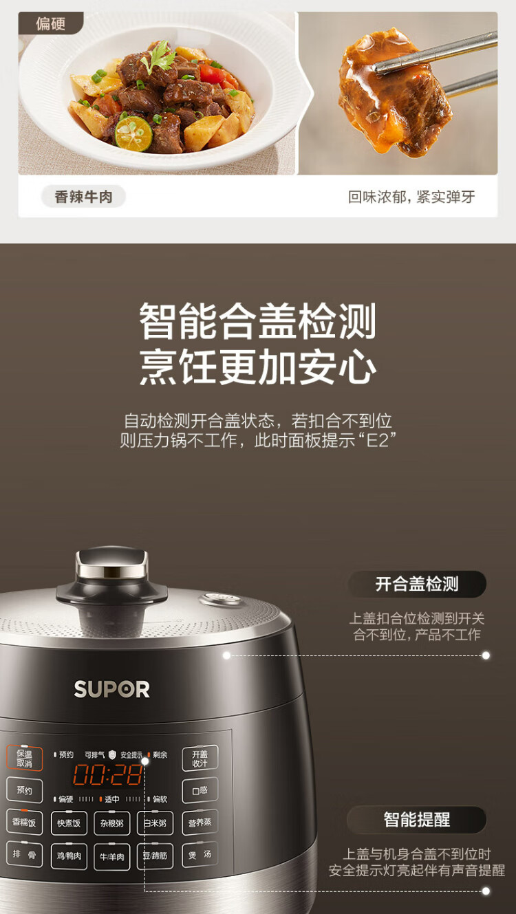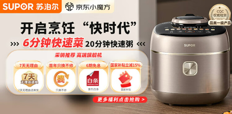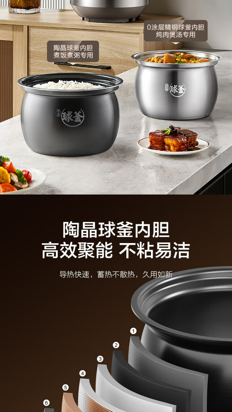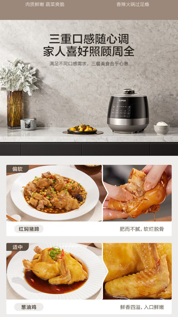 SUPOR national subsidy 0-coated spherical kettle electric pressure cooker 5L double tank fully automatic intelligent reservation touch control SY-50YC5011Q rice cooker pressure cooker for 4-6 people