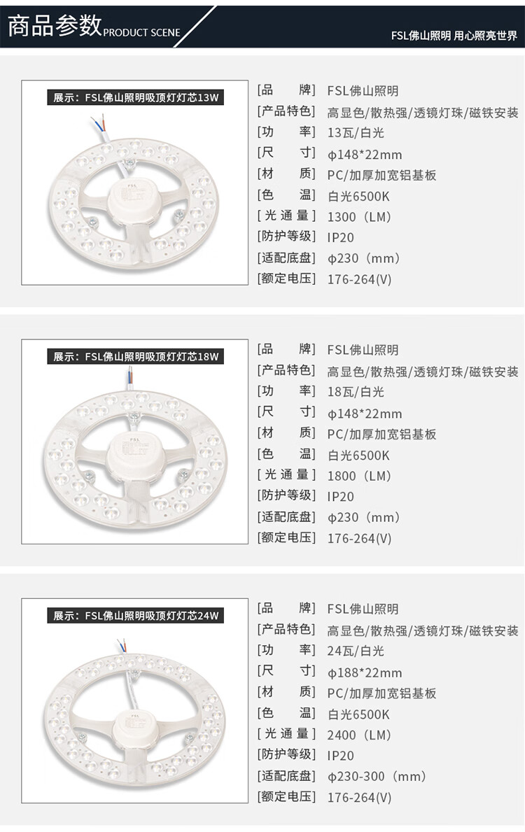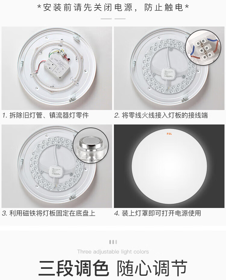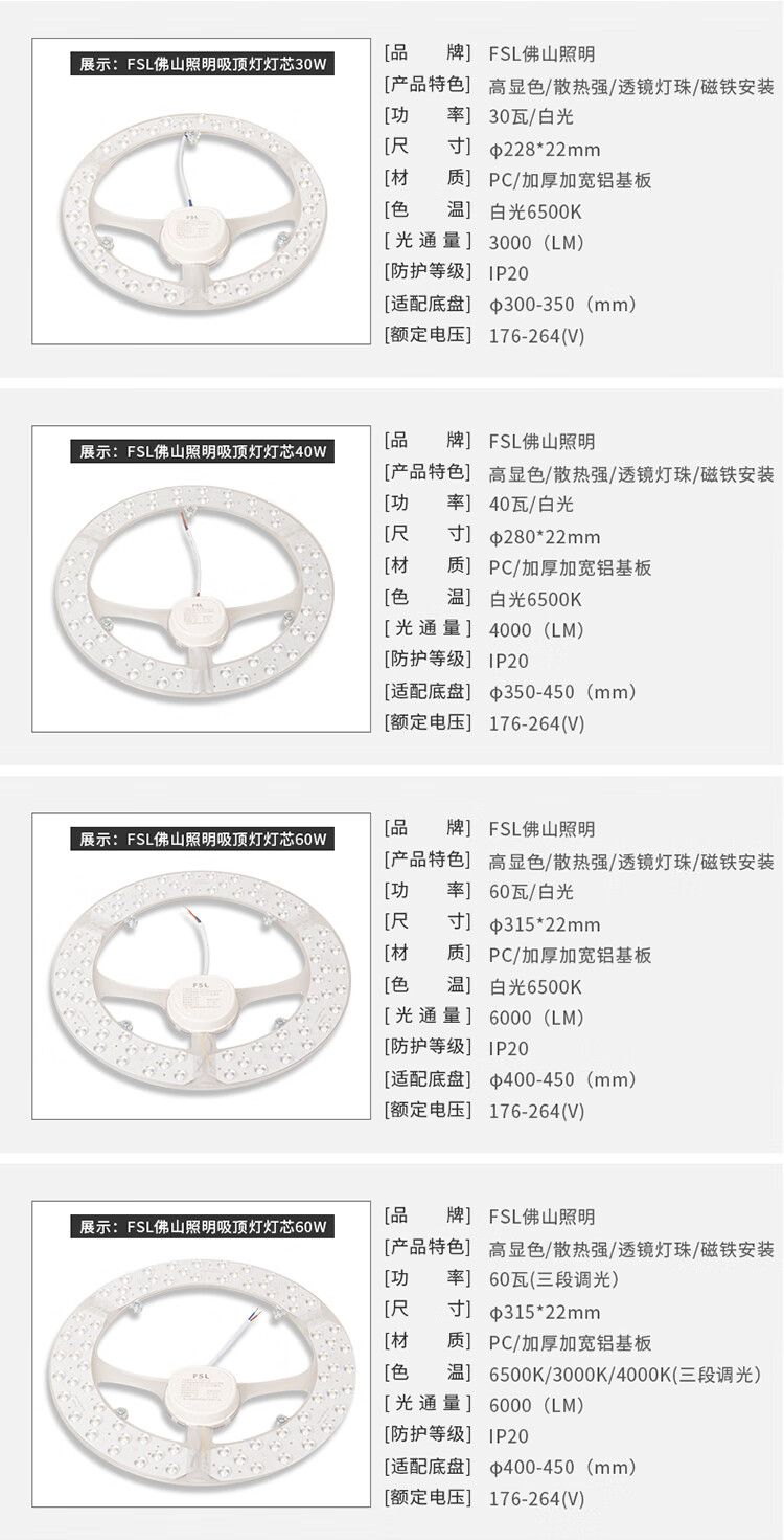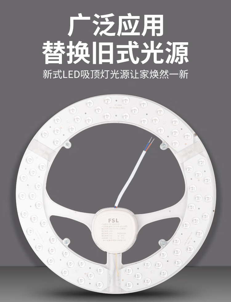 Foshan Lighting (FSL) LED lamp panel ceiling lamp wick round modified lamp panel modified light source ring replacement LED light bar module 60W/positive white light/upgraded model