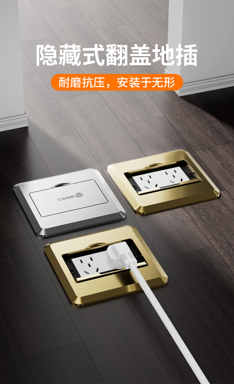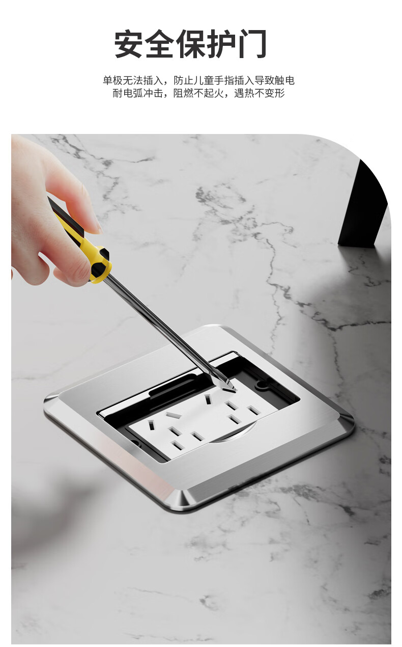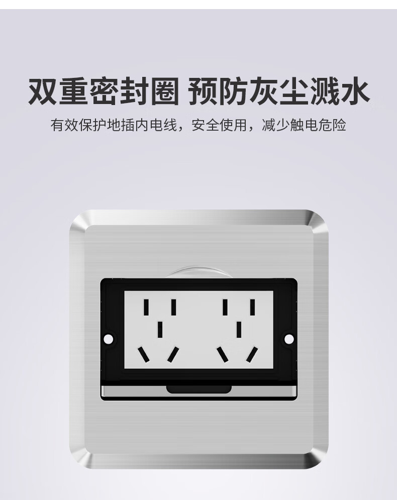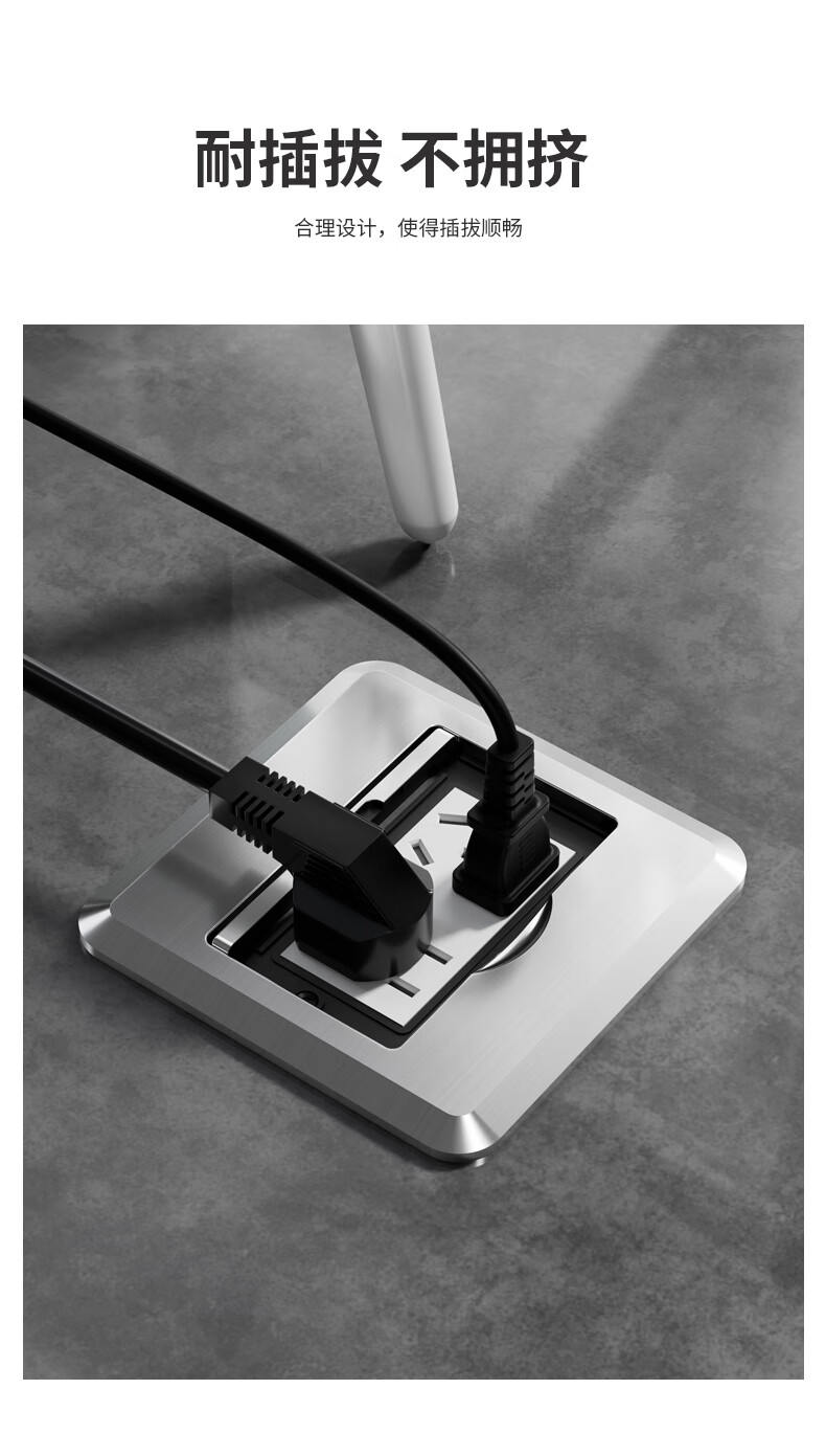International Electrician Socket Ground Plug Clamshell Floor Plug Anti-Splash Water Hidden Ground Plug Silver-Five-hole Ground Plug