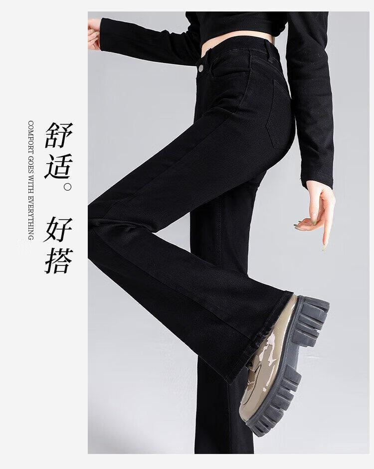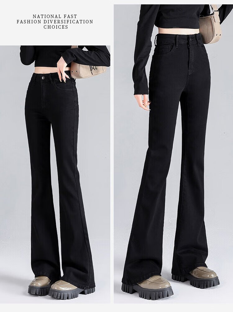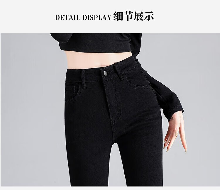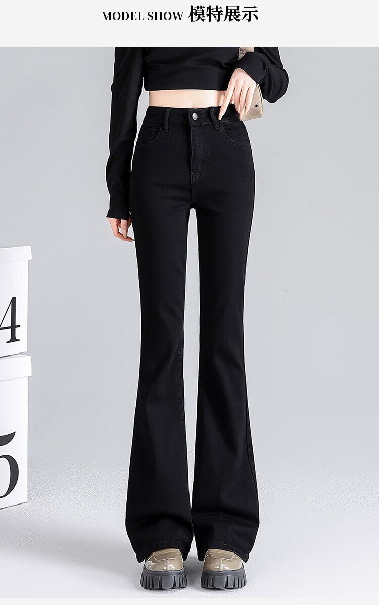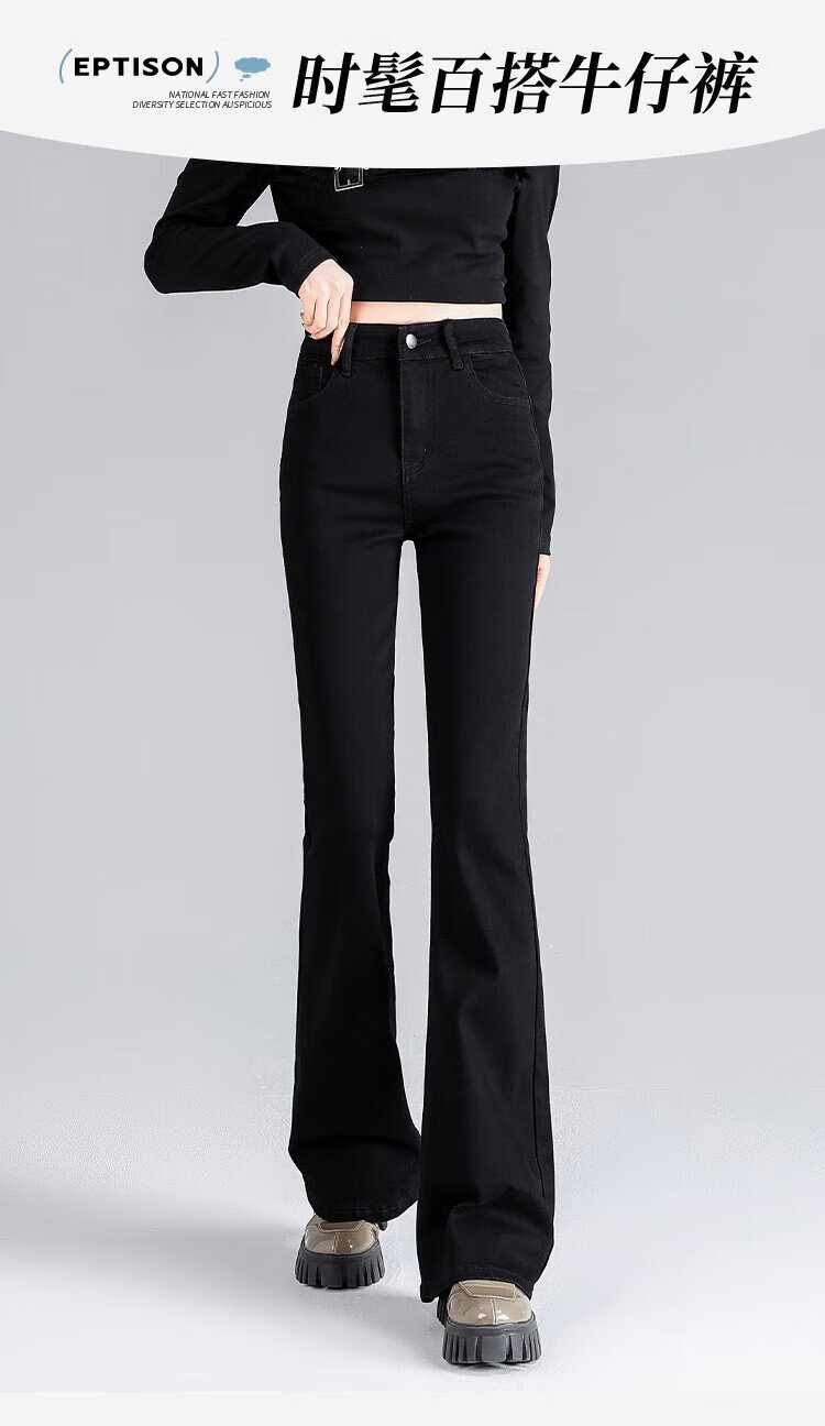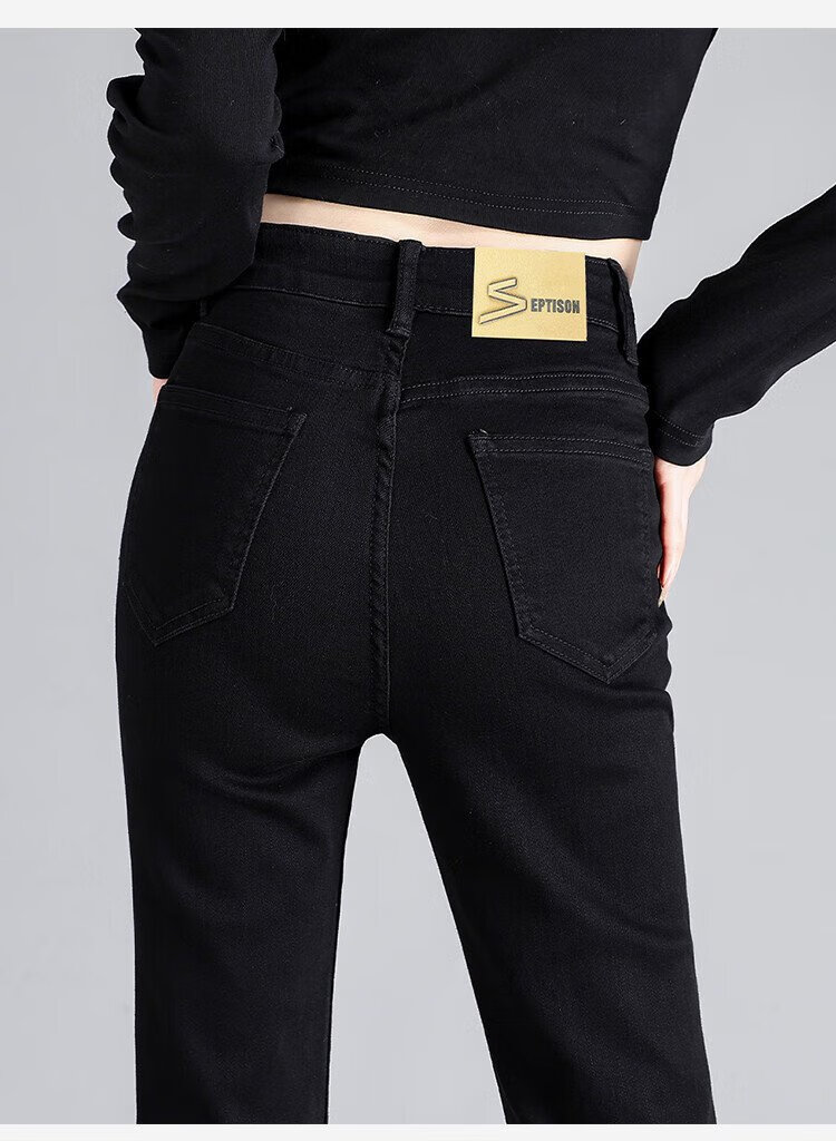 Clothes Tiancheng, velvet and thickened, high-waisted slim jeans for women, autumn and winter stretch, slim, warm and flared pants for women