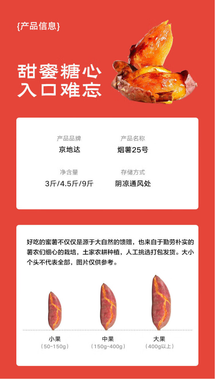 Jingdida Hebei Authentic Yanshu No. 25 sweet potato net weight 9Jin Jin is equal to 0.5kg single fruit 100g + sugar heart flow oil straight from the source