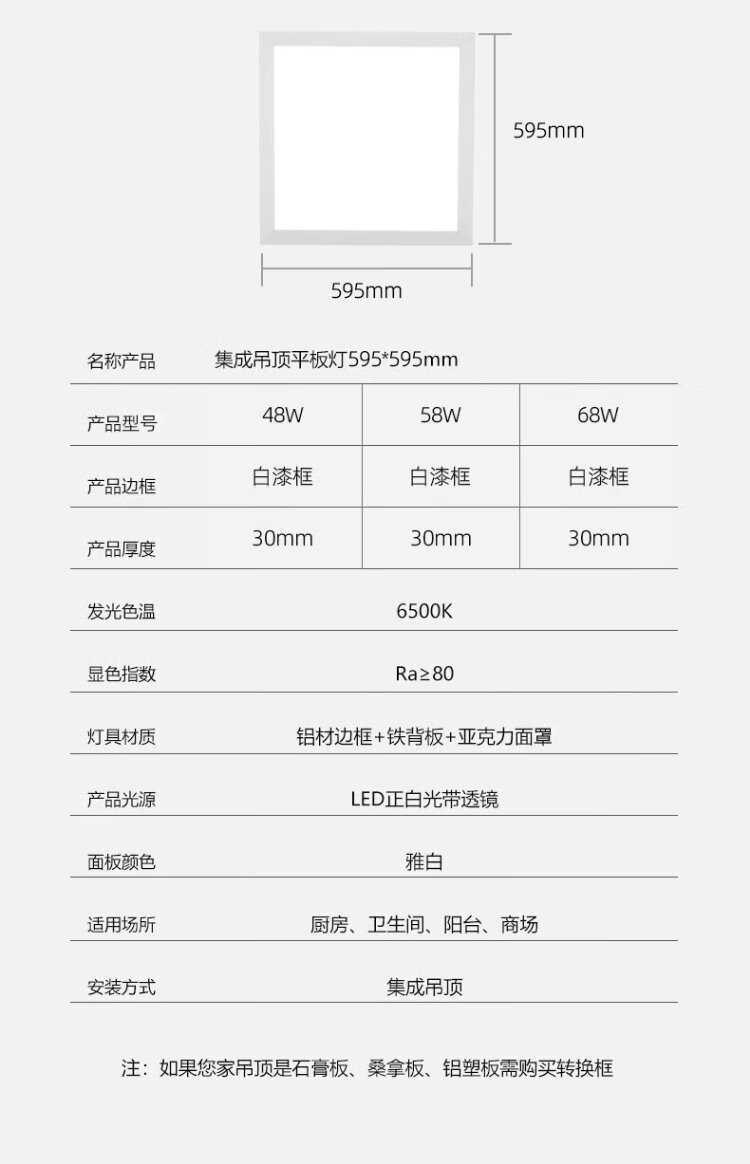 Deyan flat panel light 595*595 integrated ceiling light gusset light grille ceiling panel light engineering office lighting white light 68-W 595*595