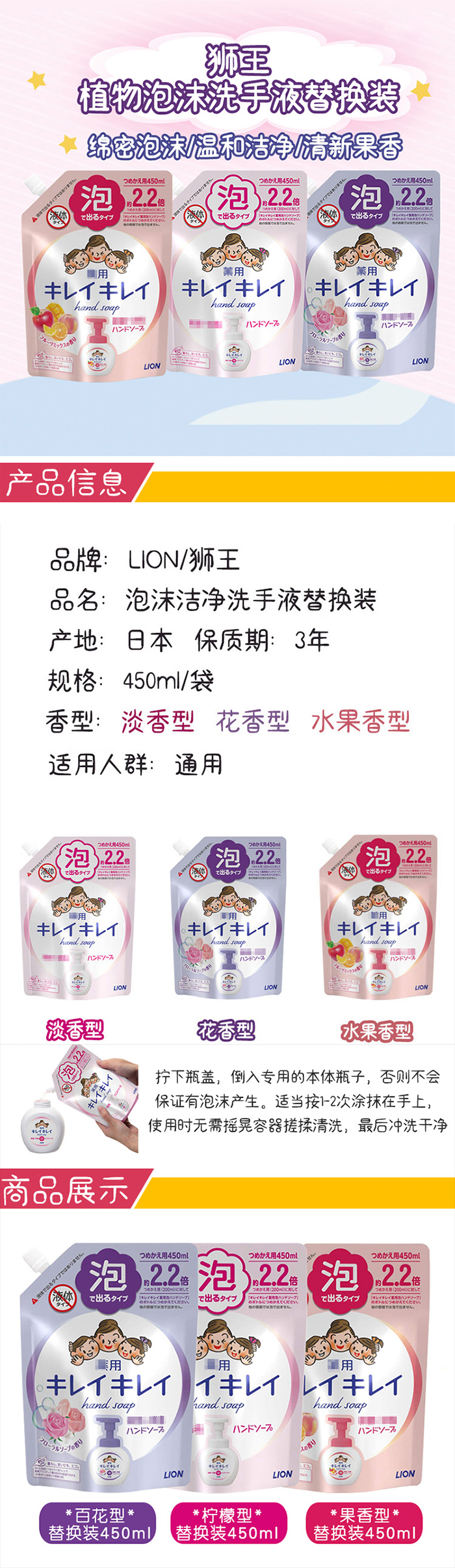 Lion Hand Sanitizer Refill 3 Bags 450ml Floral Scent