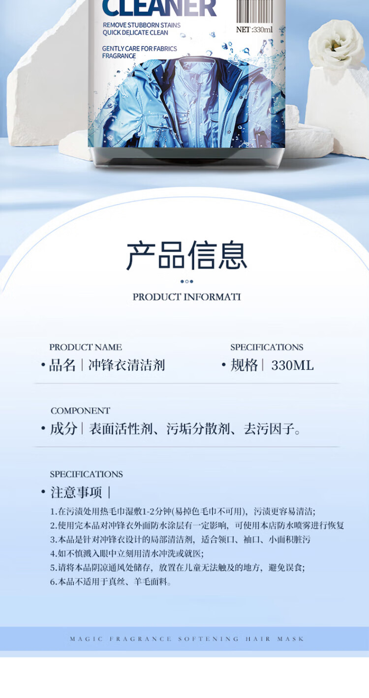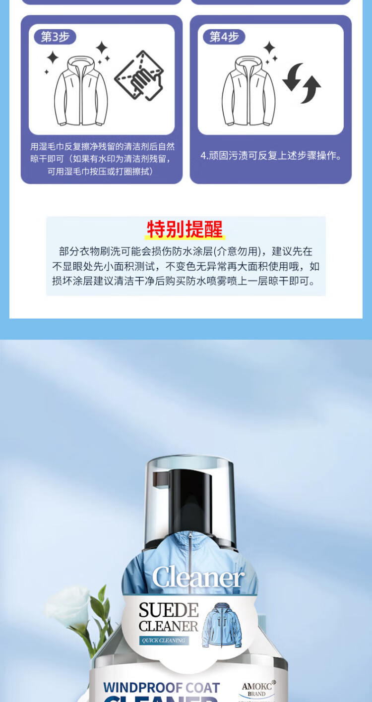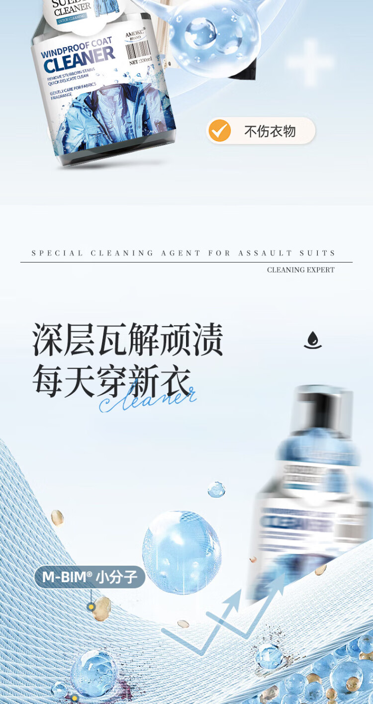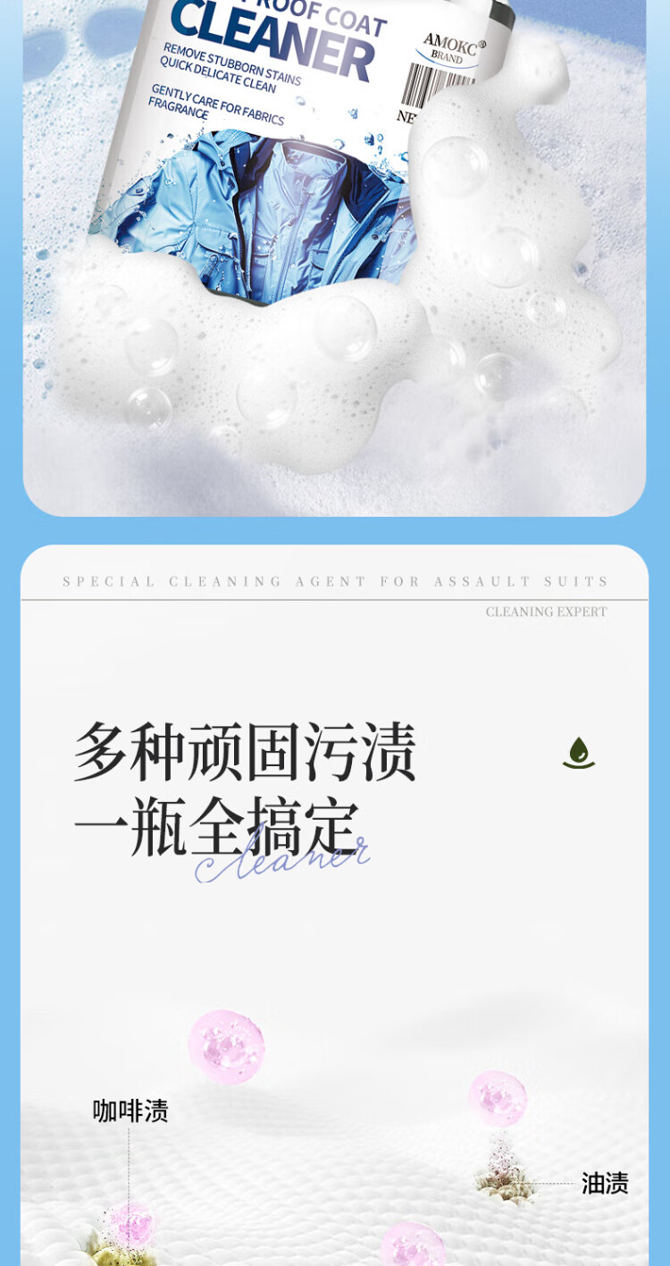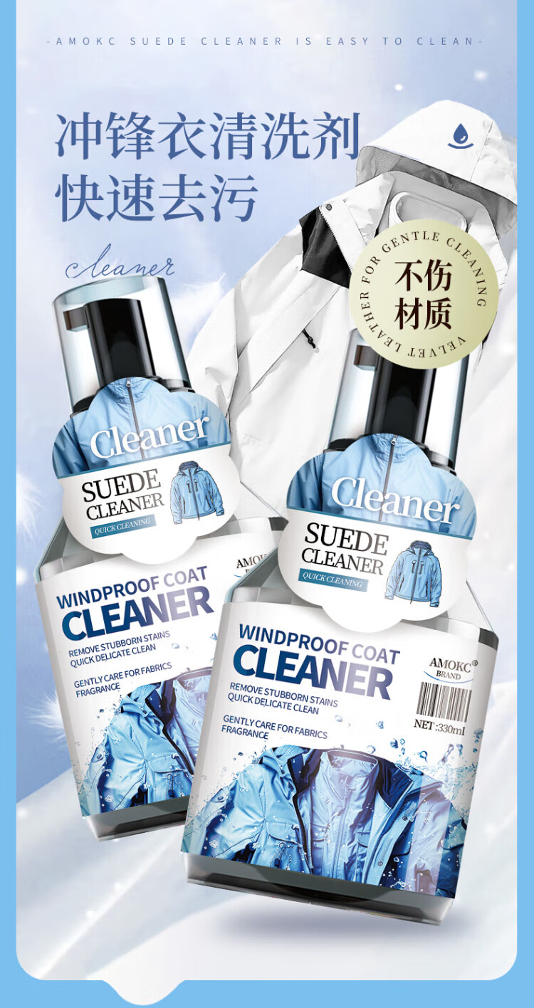 AMOKC European Jacket Cleaning Agent Water-free Hard Shell Mountaineering Suit Neutral Detergent Special Cleaner 330ml