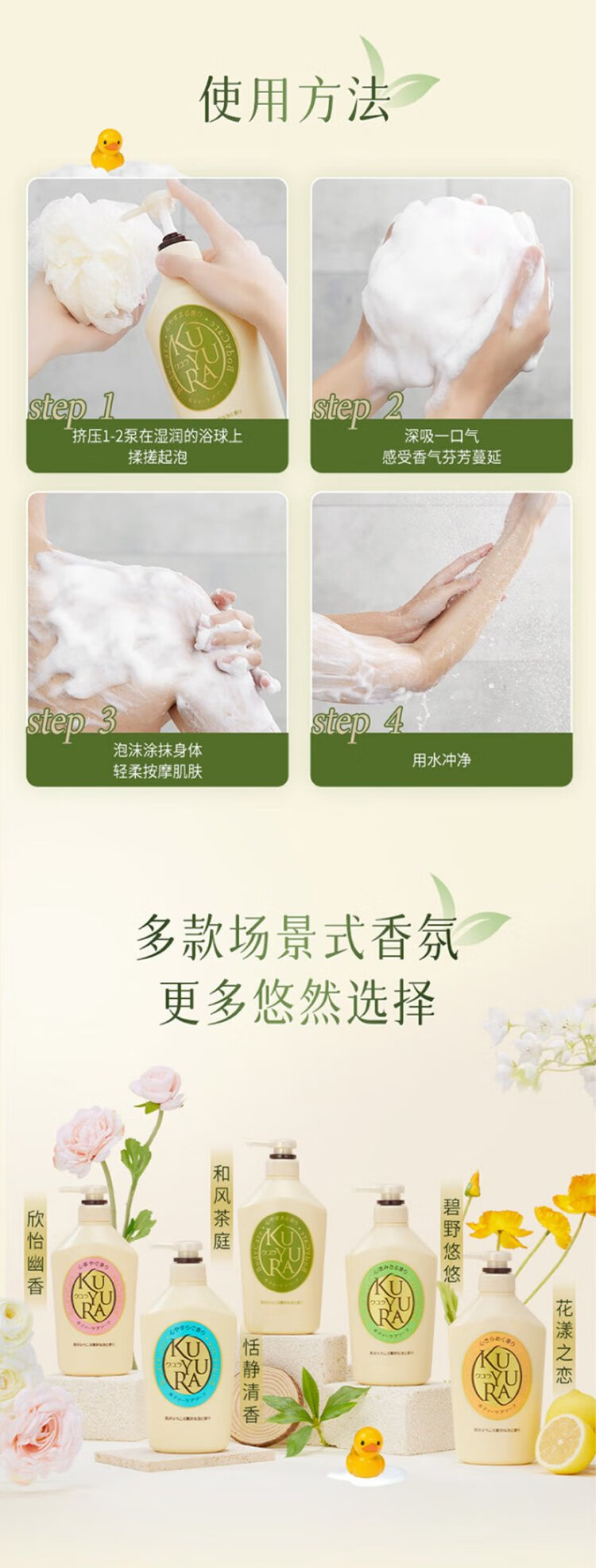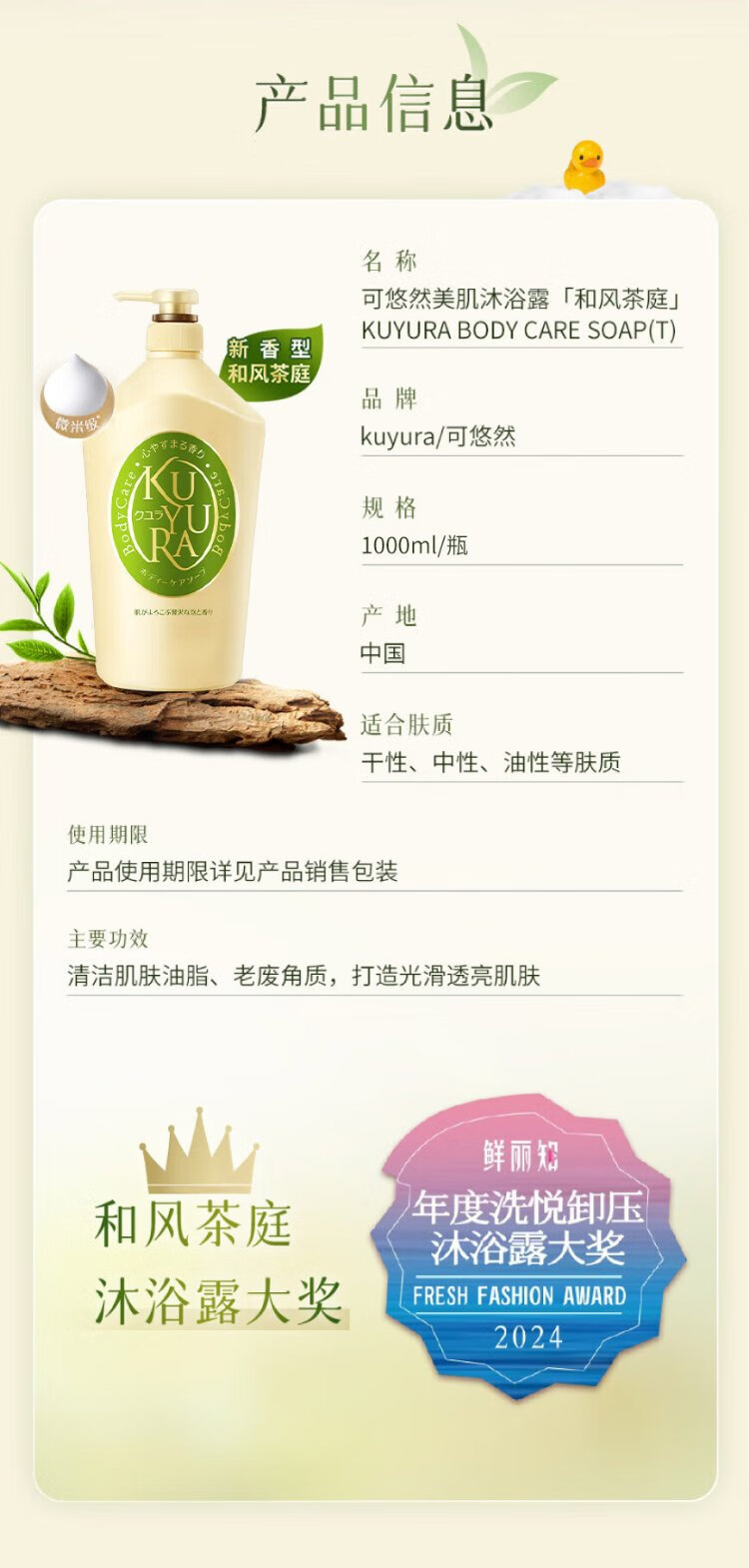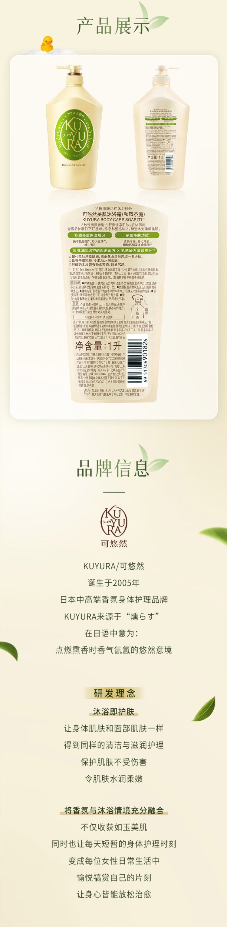 Keyouran Japanese Tea Garden Shower Gel Rhubarb Bottle 1000ml Beauty Fragrance Long-lasting Fragrance Cleansing and Moisturizing