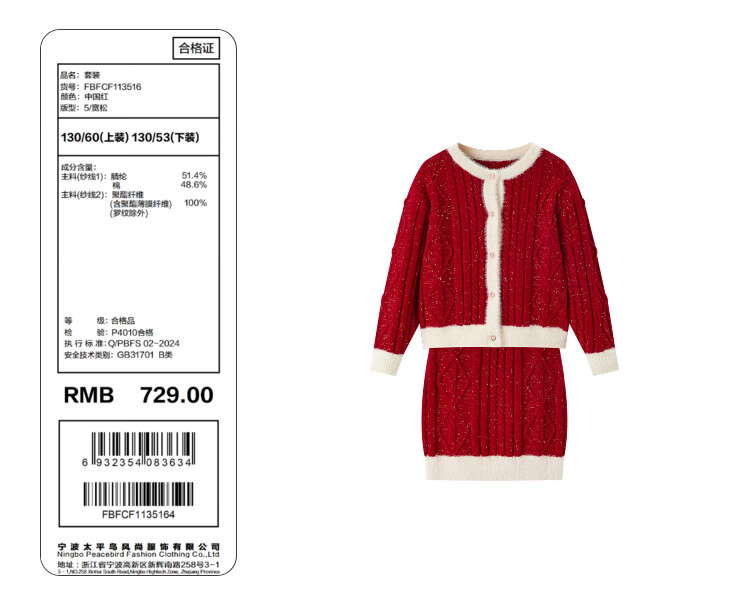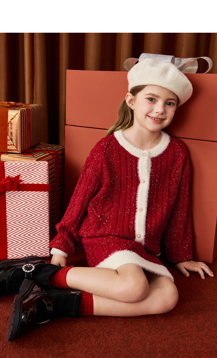 MiniPeace Children's Clothing Spring New Girls Suit F2FCE1A02FBFCF1135 Red 130cm