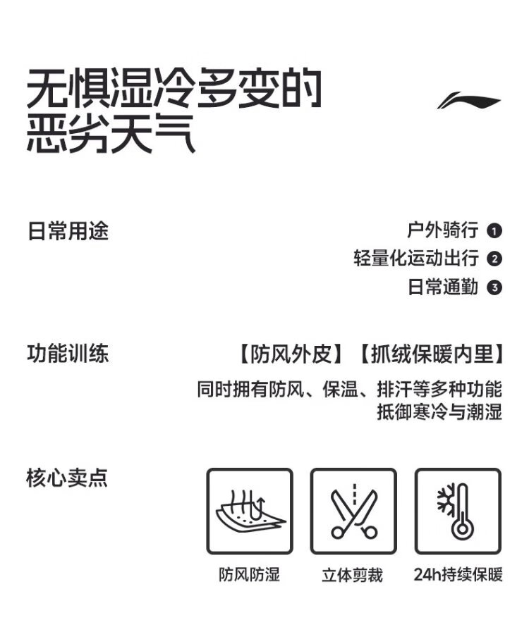 Li Ning Cycling Clothing Winter Fleece Jacket Fleece Warm Long Sleeve Road Bike Mountain Bike Windproof Jacket Equipment