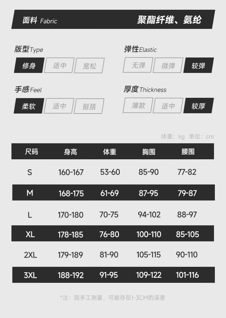 China (cm) 165 / 88-90 170 / 96-98 175 / 108-110 180 / 118-122 185 / 126-130