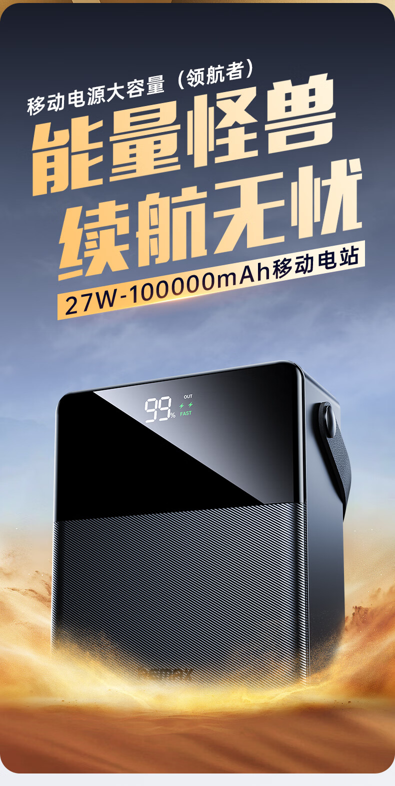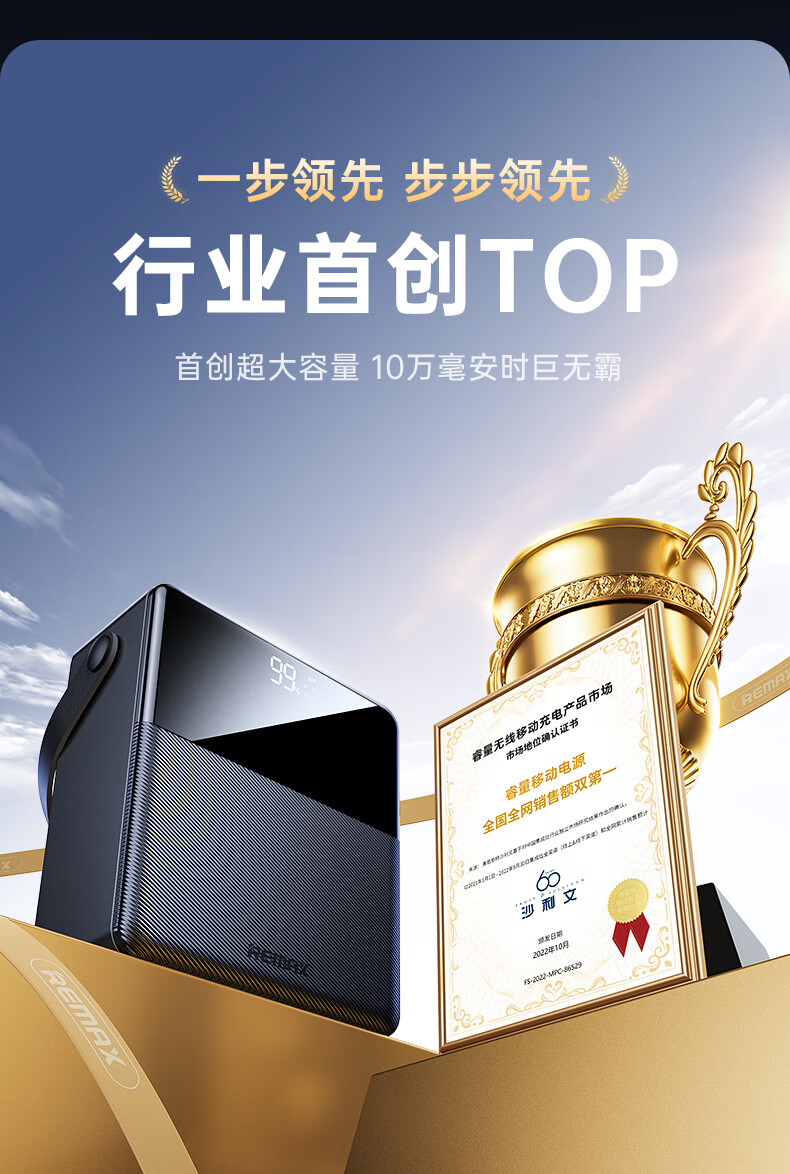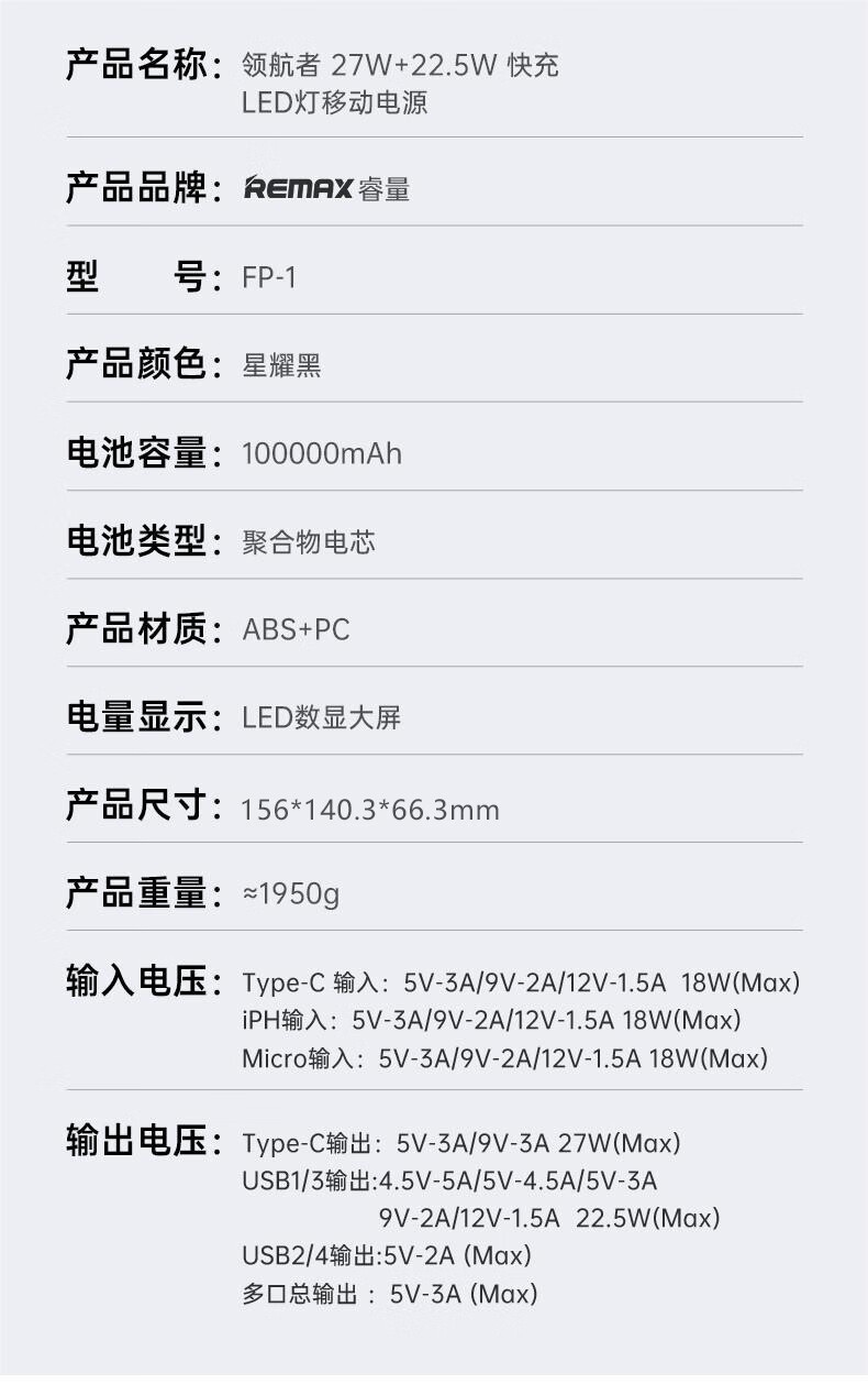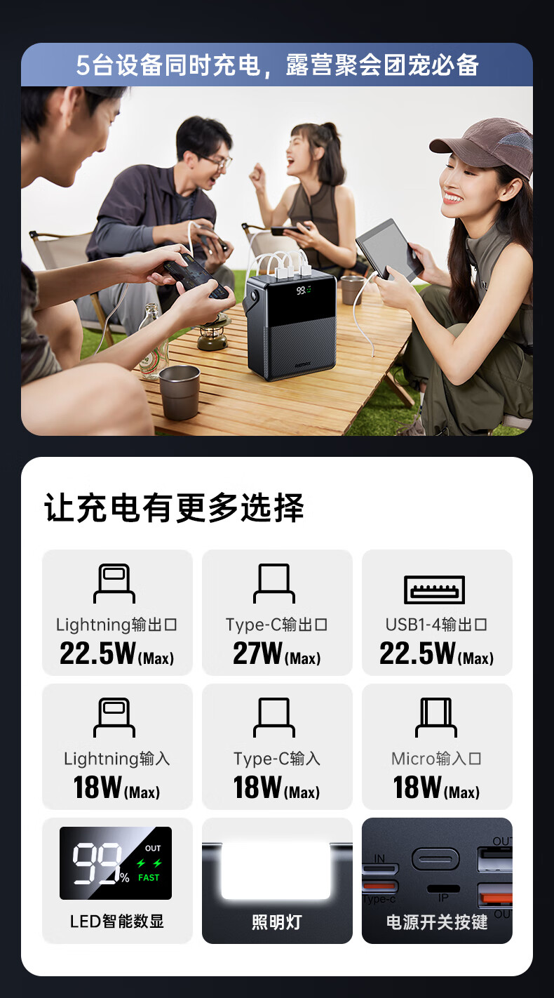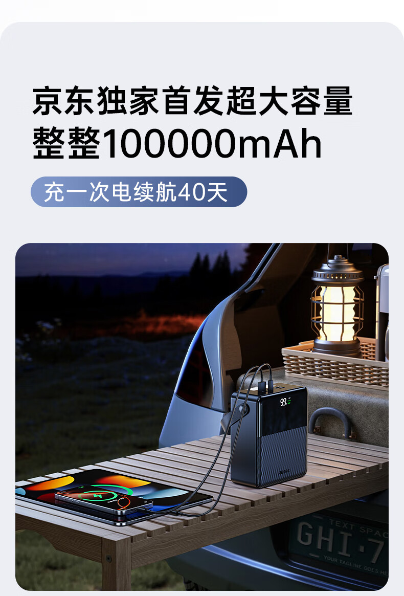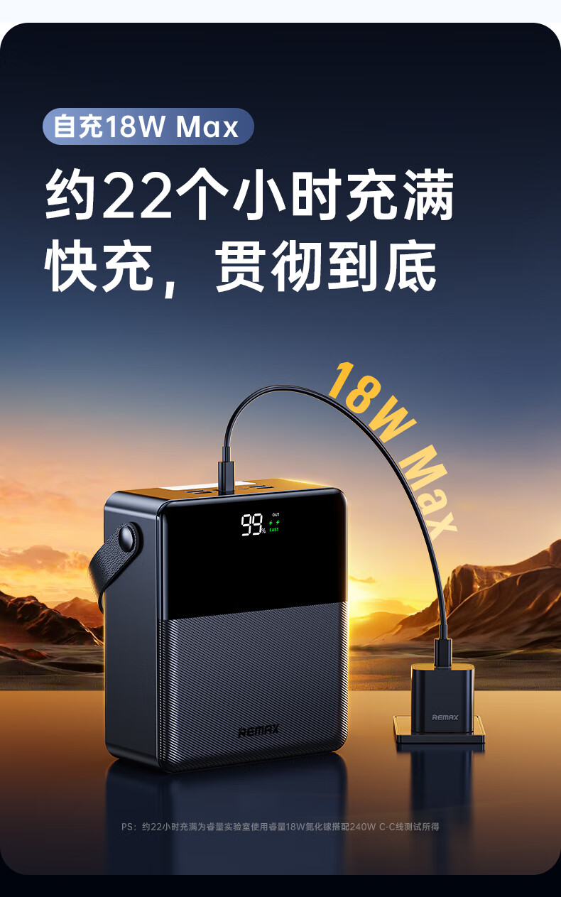 Remax is the industry's first 100,000 mAh 3C certified ultra-large capacity power bank PD27W super fast charging outdoor camping live broadcast high-power laptop power bank